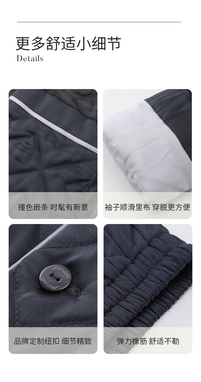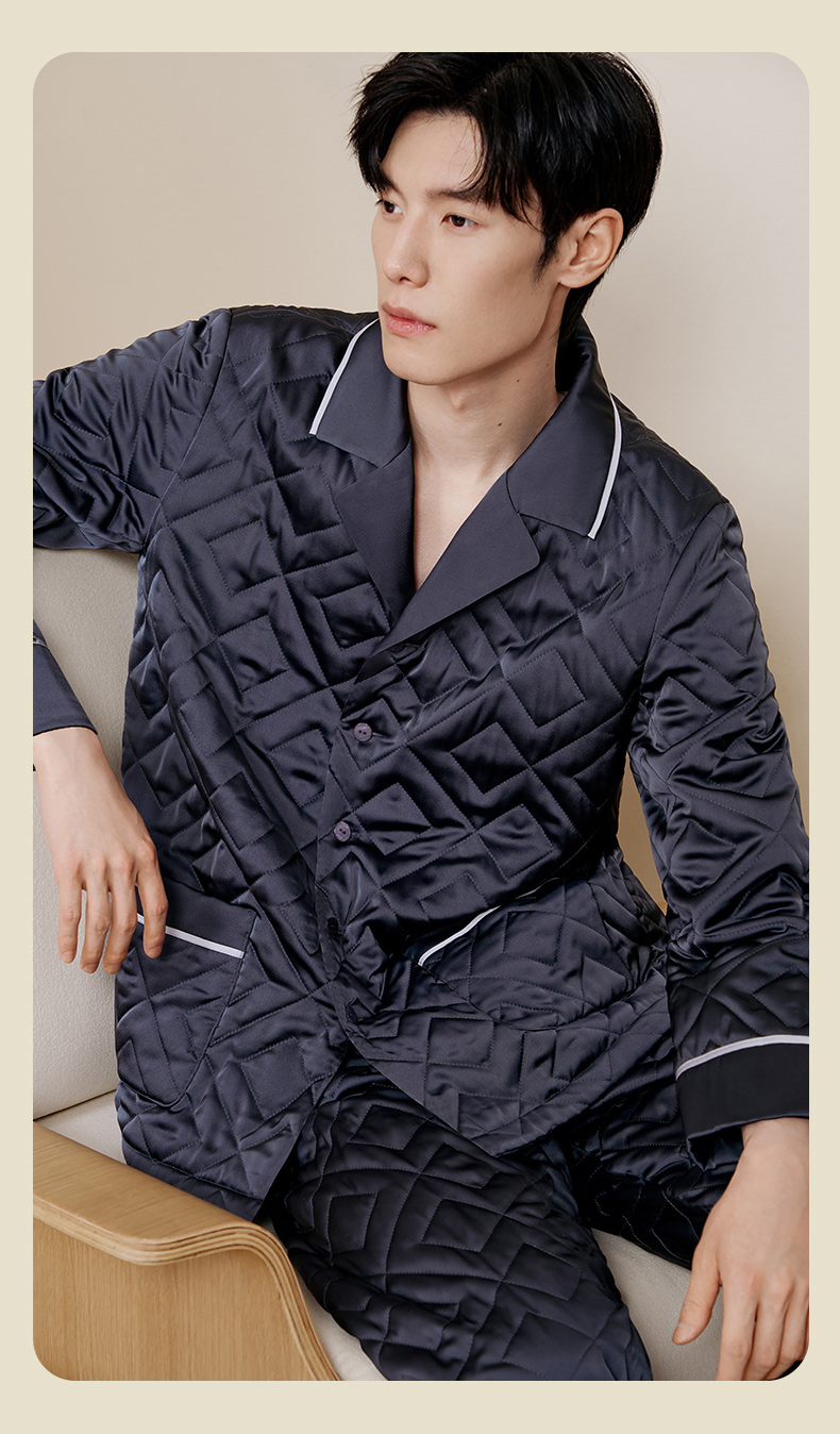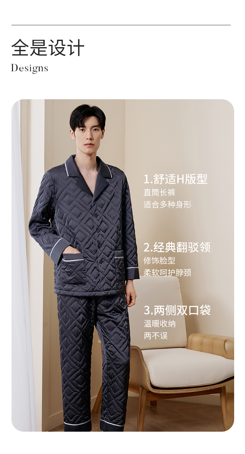 金三塔桑蚕丝简约菱形格纹丝绵睡衣男舒适保暖贴肤衣裤套家居服 YSMFD202