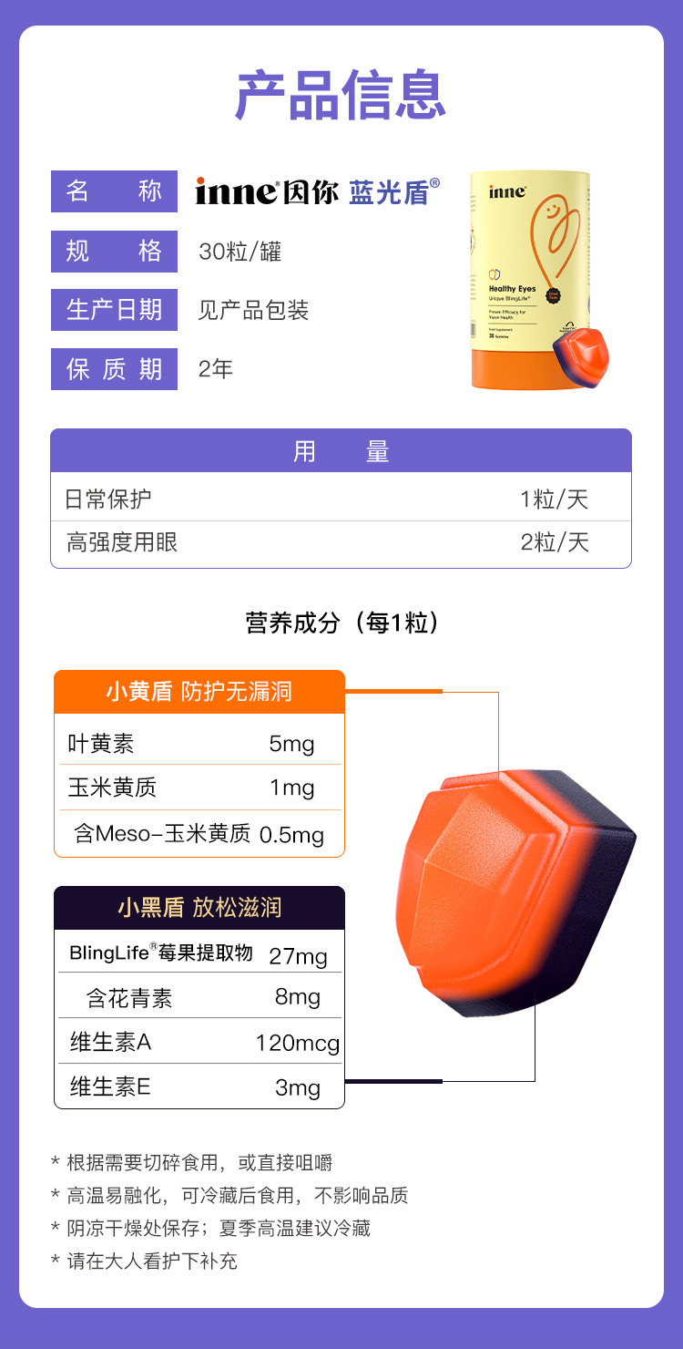 【💥年终秒杀】inne蓝光盾儿童叶黄素5mg加量版26/8到期