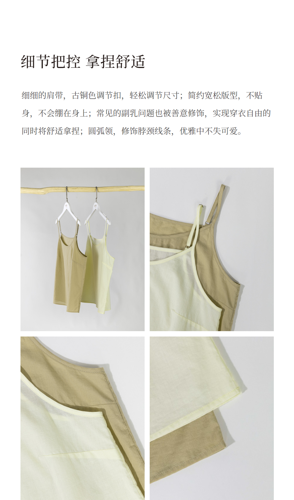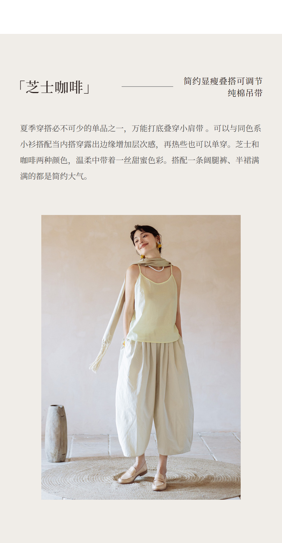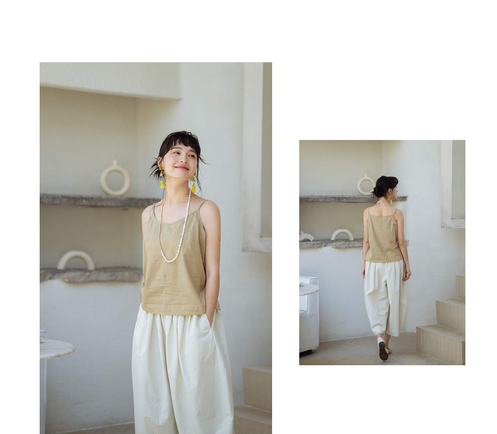 绽放385朵【甜茶系列·芝士咖啡】简约显瘦叠搭可调节纯棉吊带