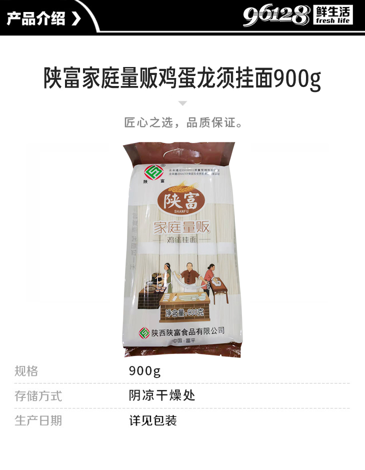陕富量贩鸡蛋挂面(龙须挂面)900g