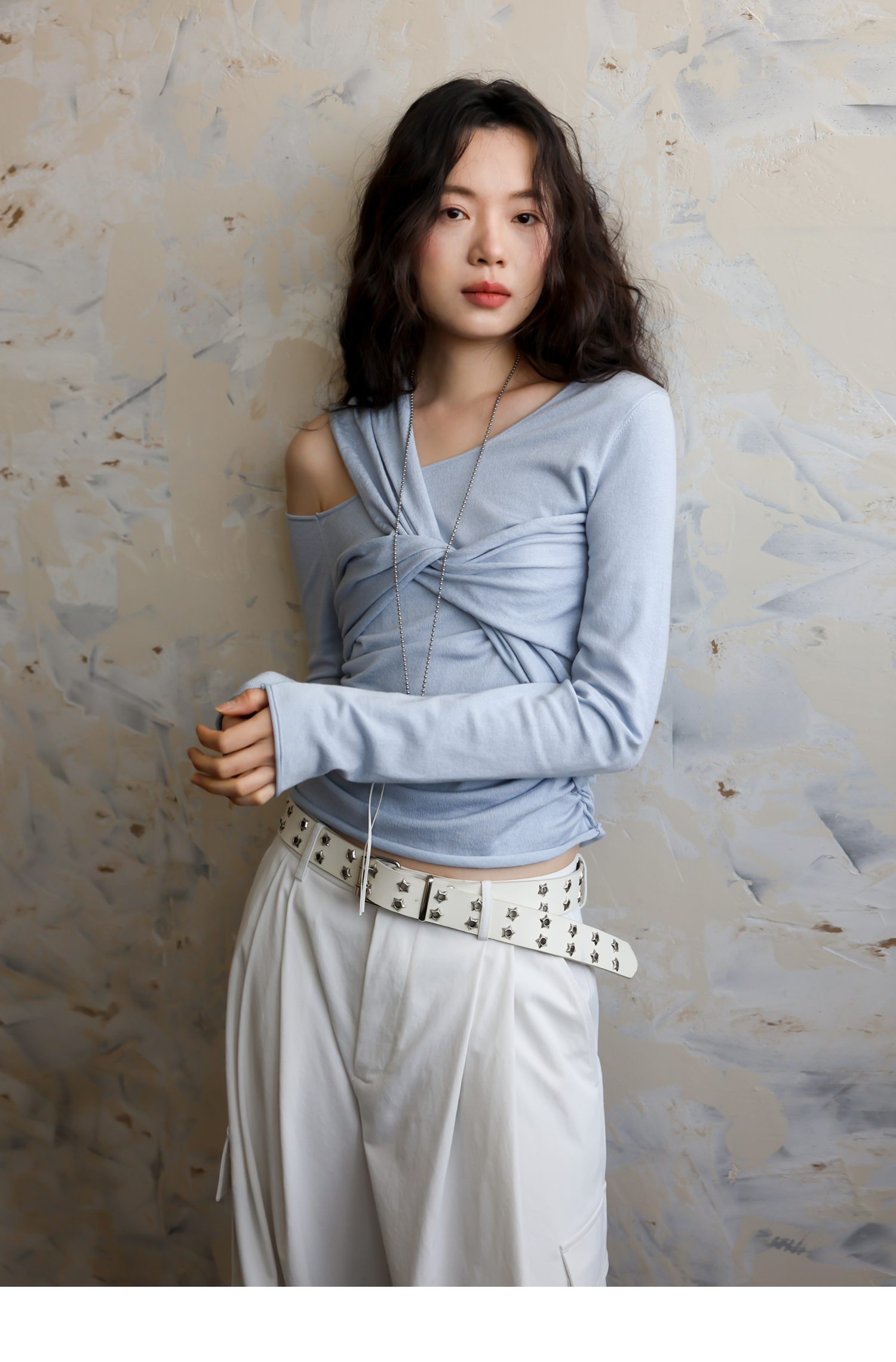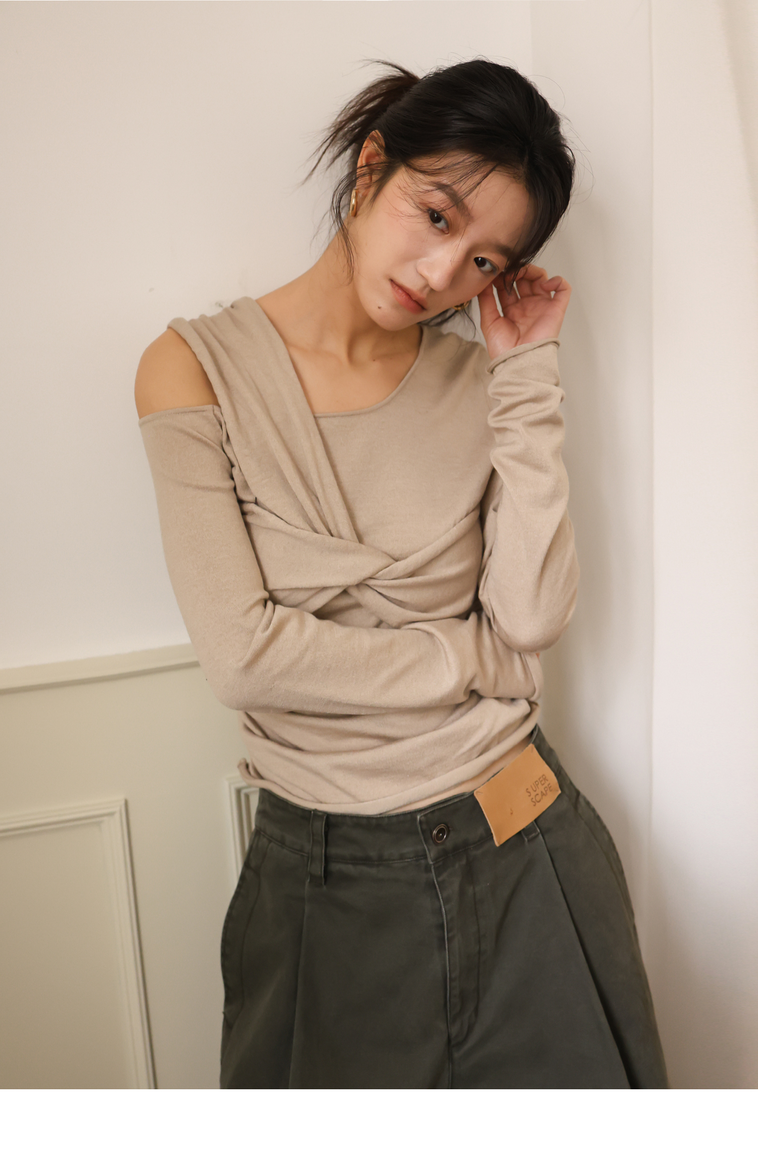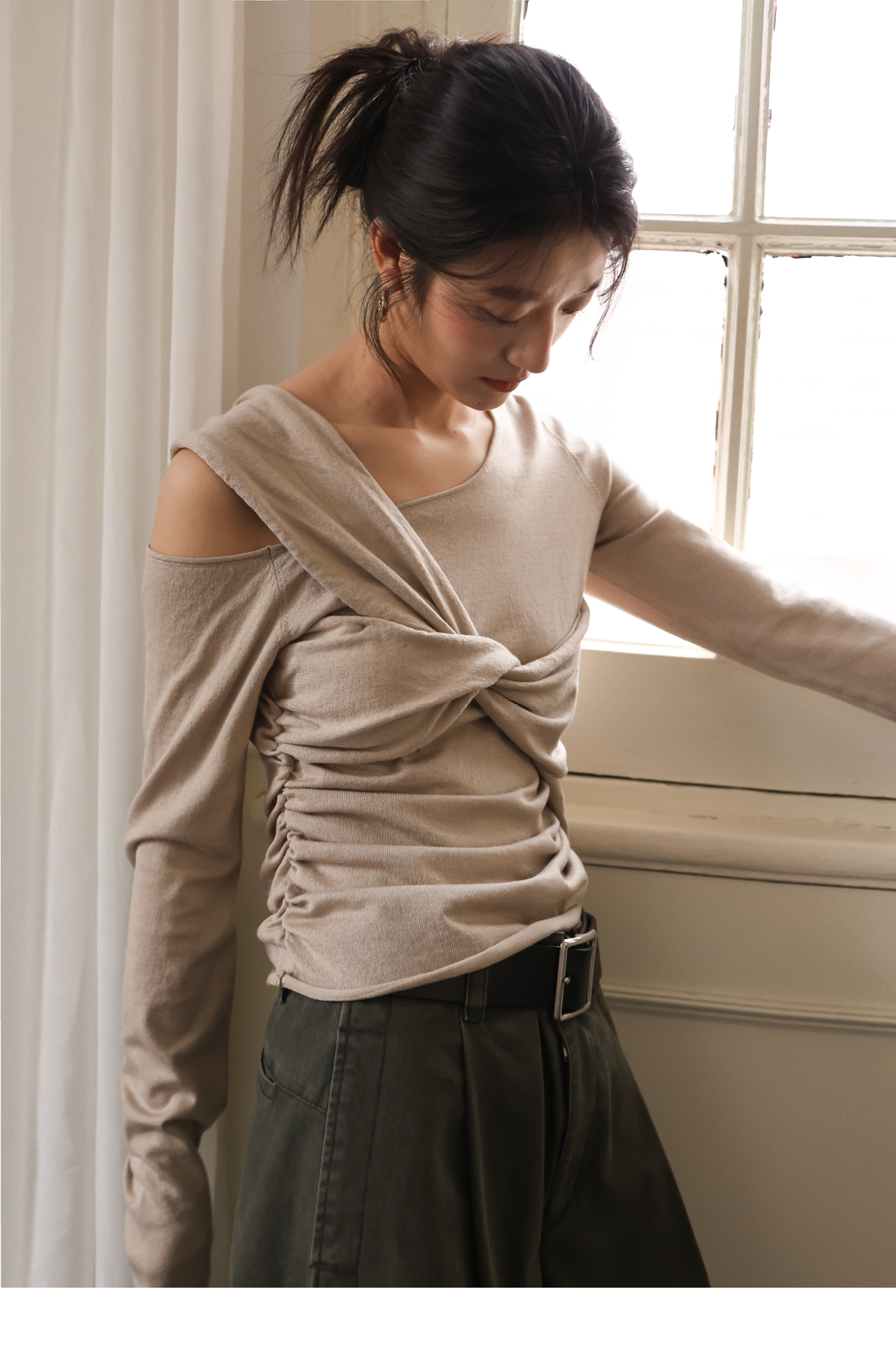 素舶 莱赛尔桑蚕丝羊毛混纺显瘦纽结长袖针织衫SUPERSCAPE