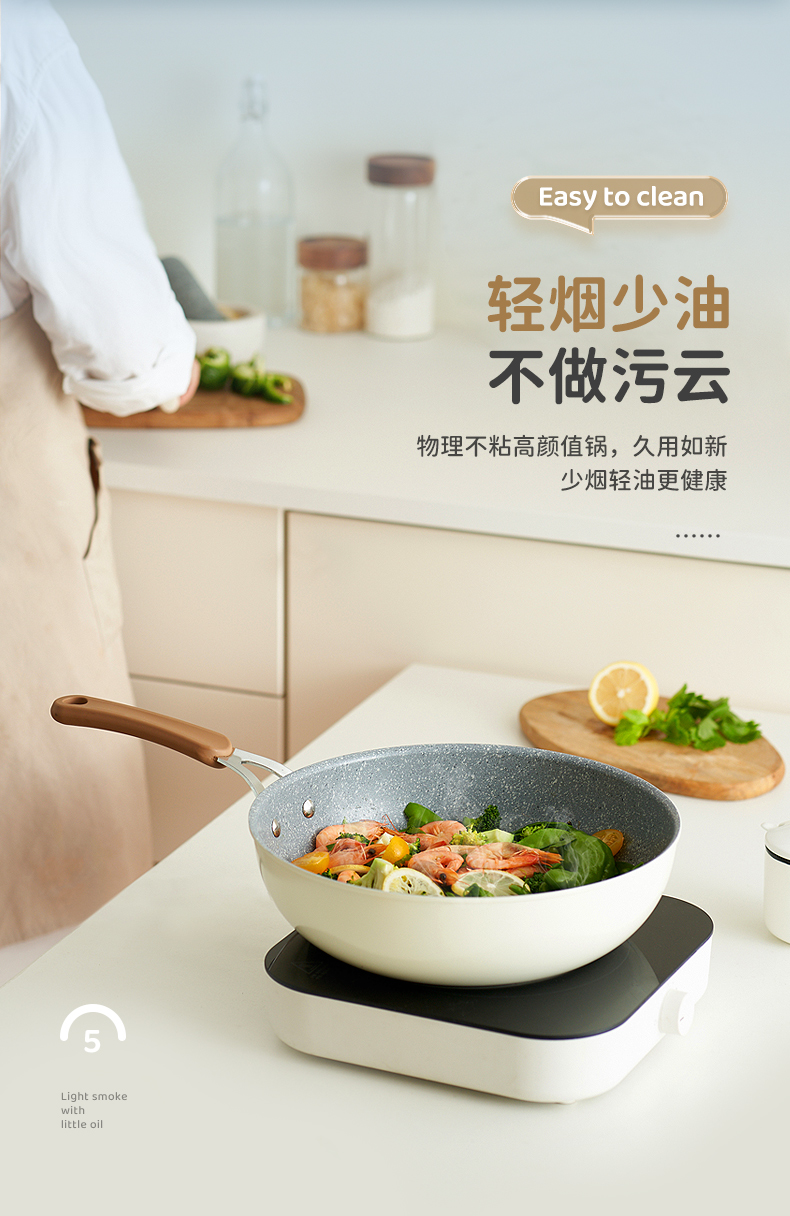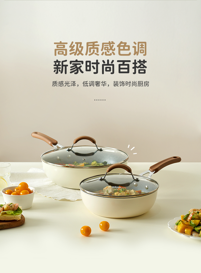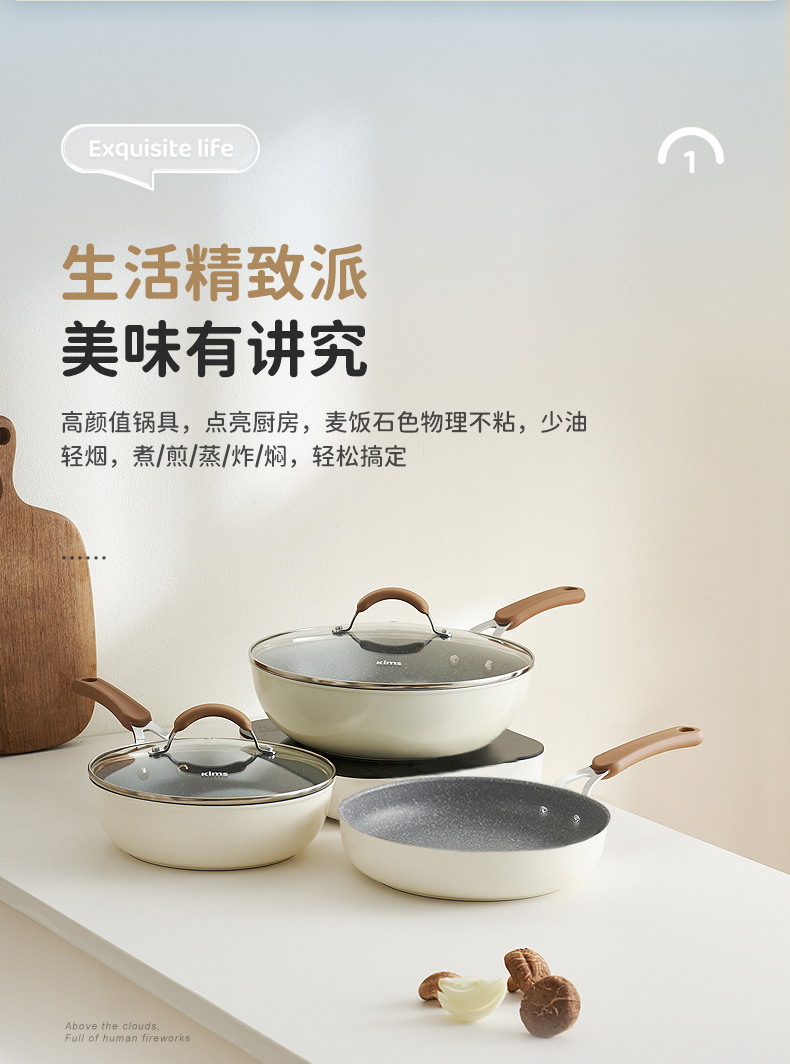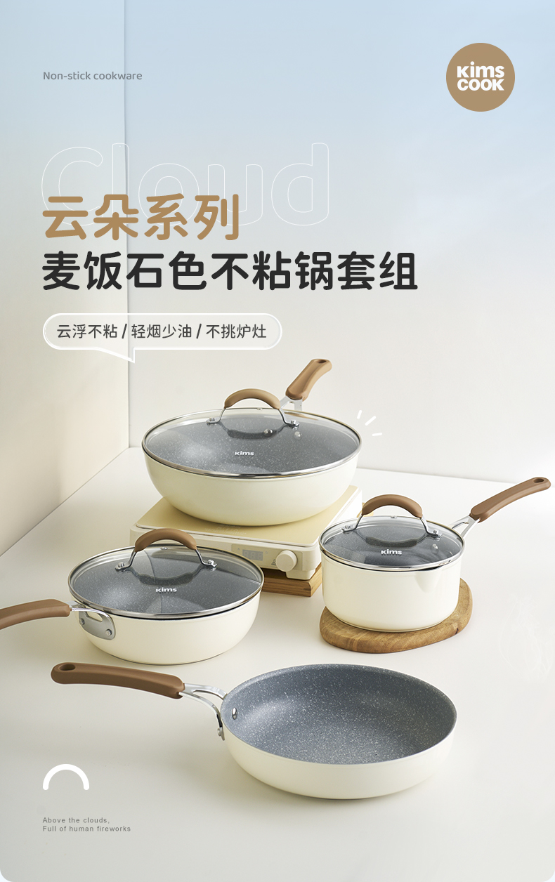 KIMS COOK白色恋人煎锅平底锅不粘锅家用炒锅无油烟炒菜锅电磁炉燃气灶专用