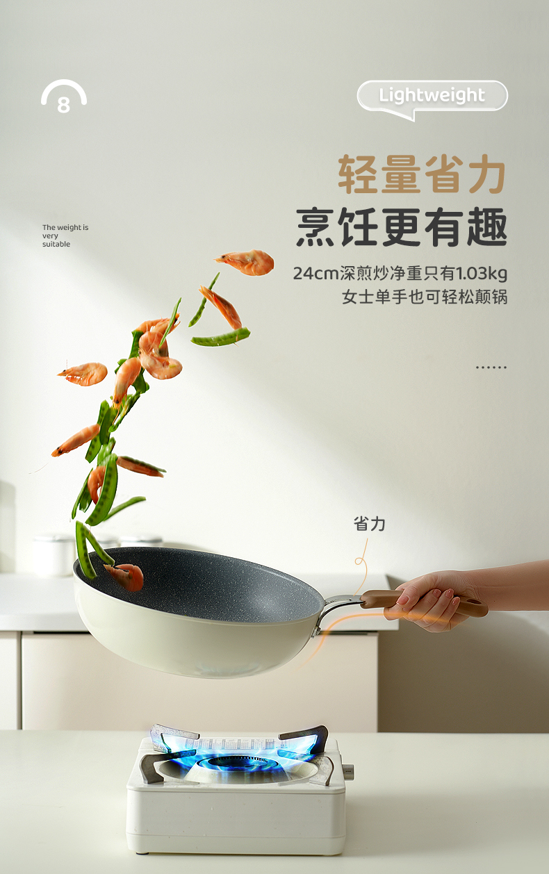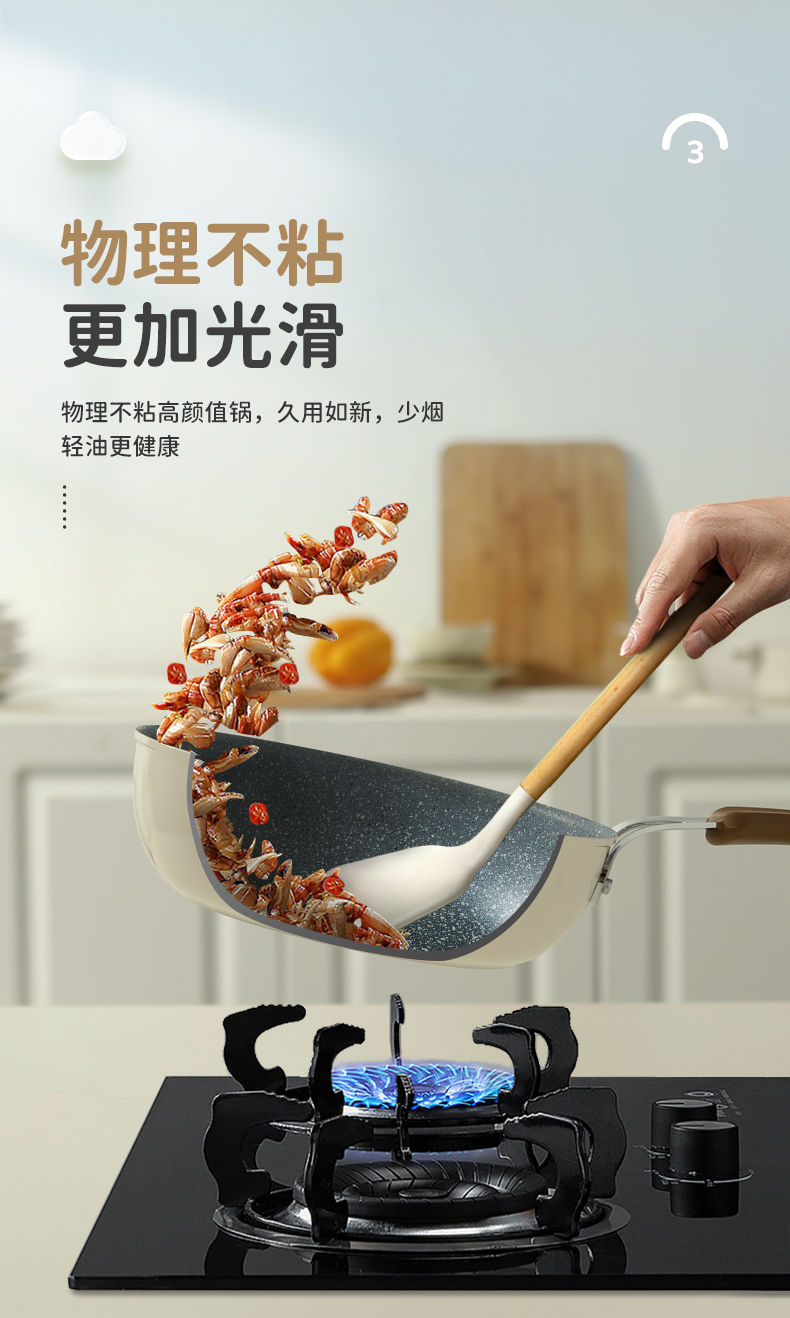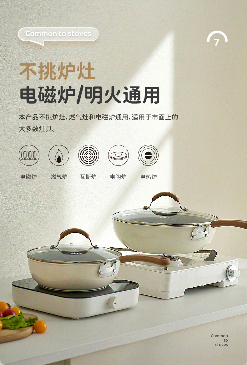 KIMS COOK白色恋人煎锅平底锅不粘锅家用炒锅无油烟炒菜锅电磁炉燃气灶专用