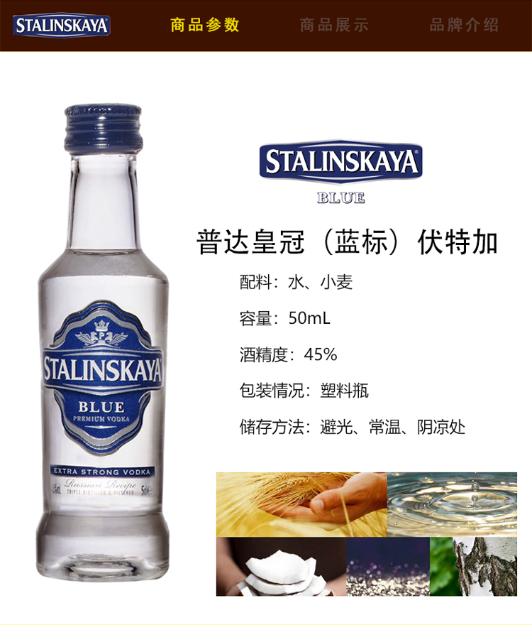 蓝标为 45度伏特加 50ML塑料瓶