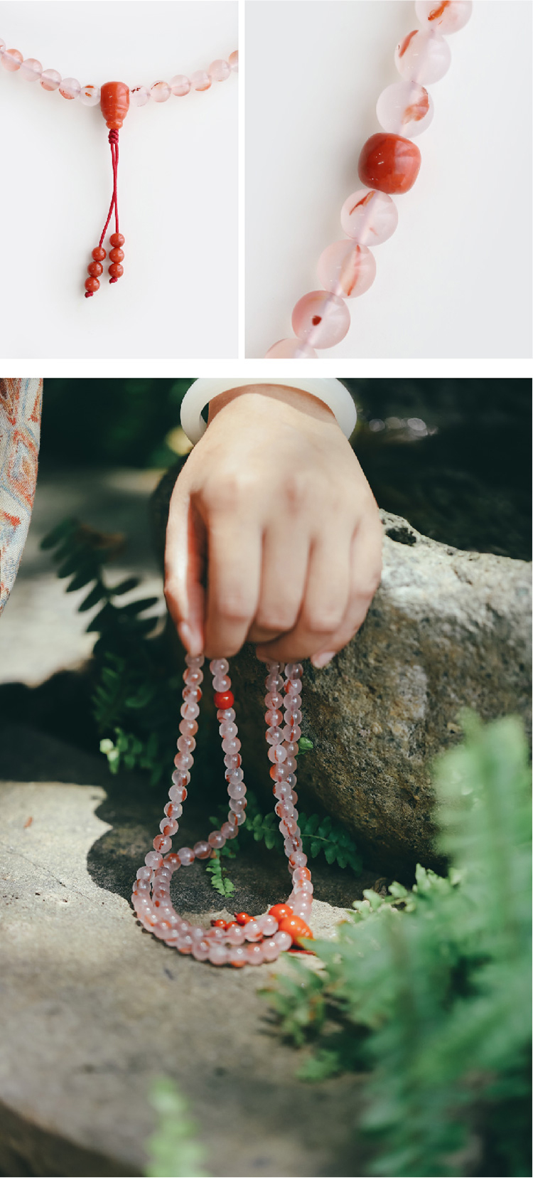 米马设计 凉山九口冰飘南红锦鲤108子念珠手钏 离苦得乐