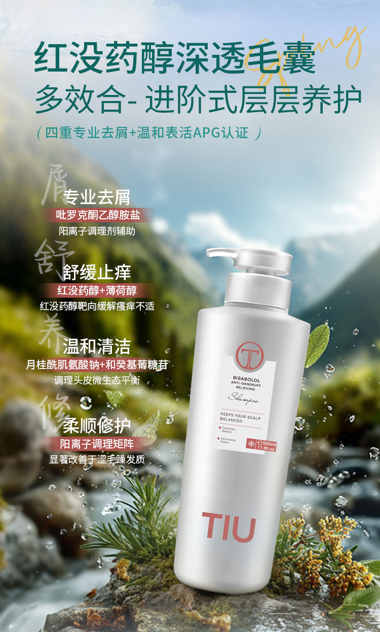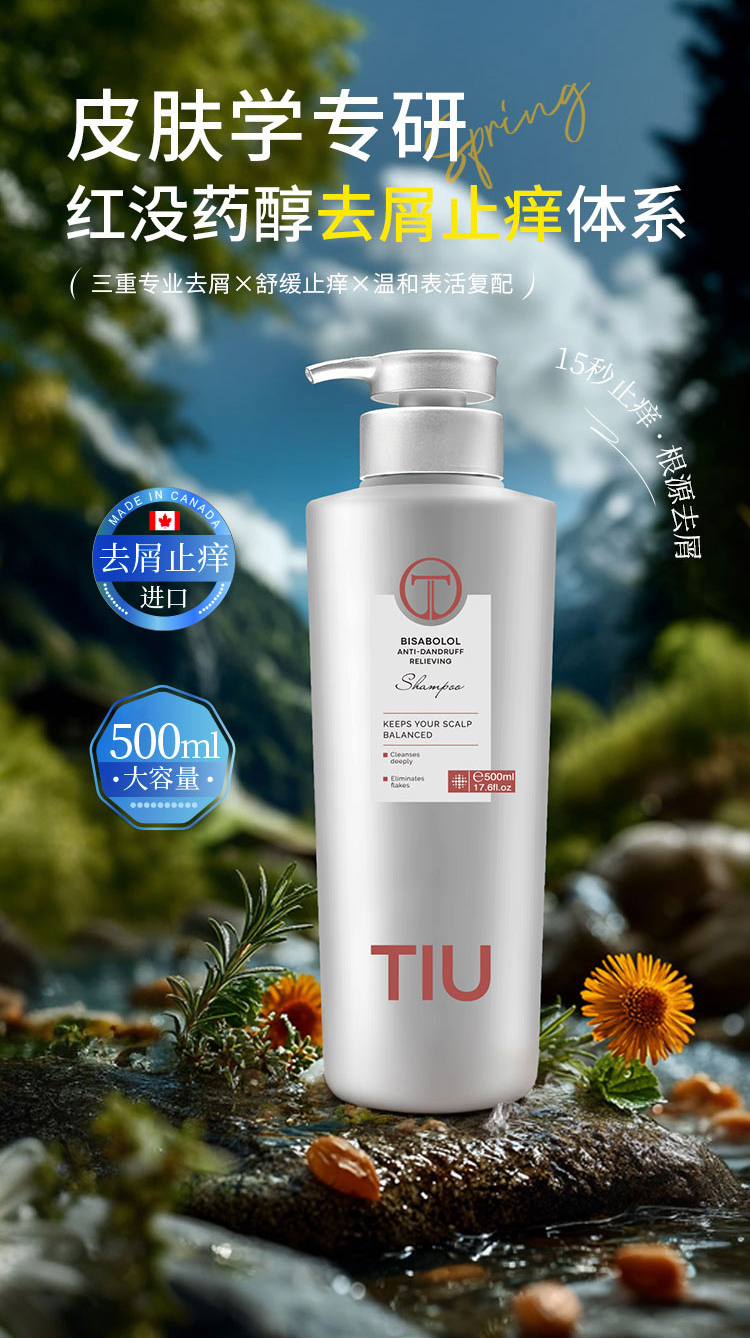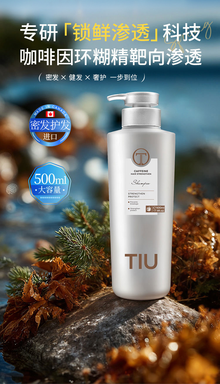 “125年专业护理专家”TIU 红没药醇去屑止痒/咖啡因强根健发洗发水 加拿大原装进口 温和清洁 柔顺修护 500ml/瓶