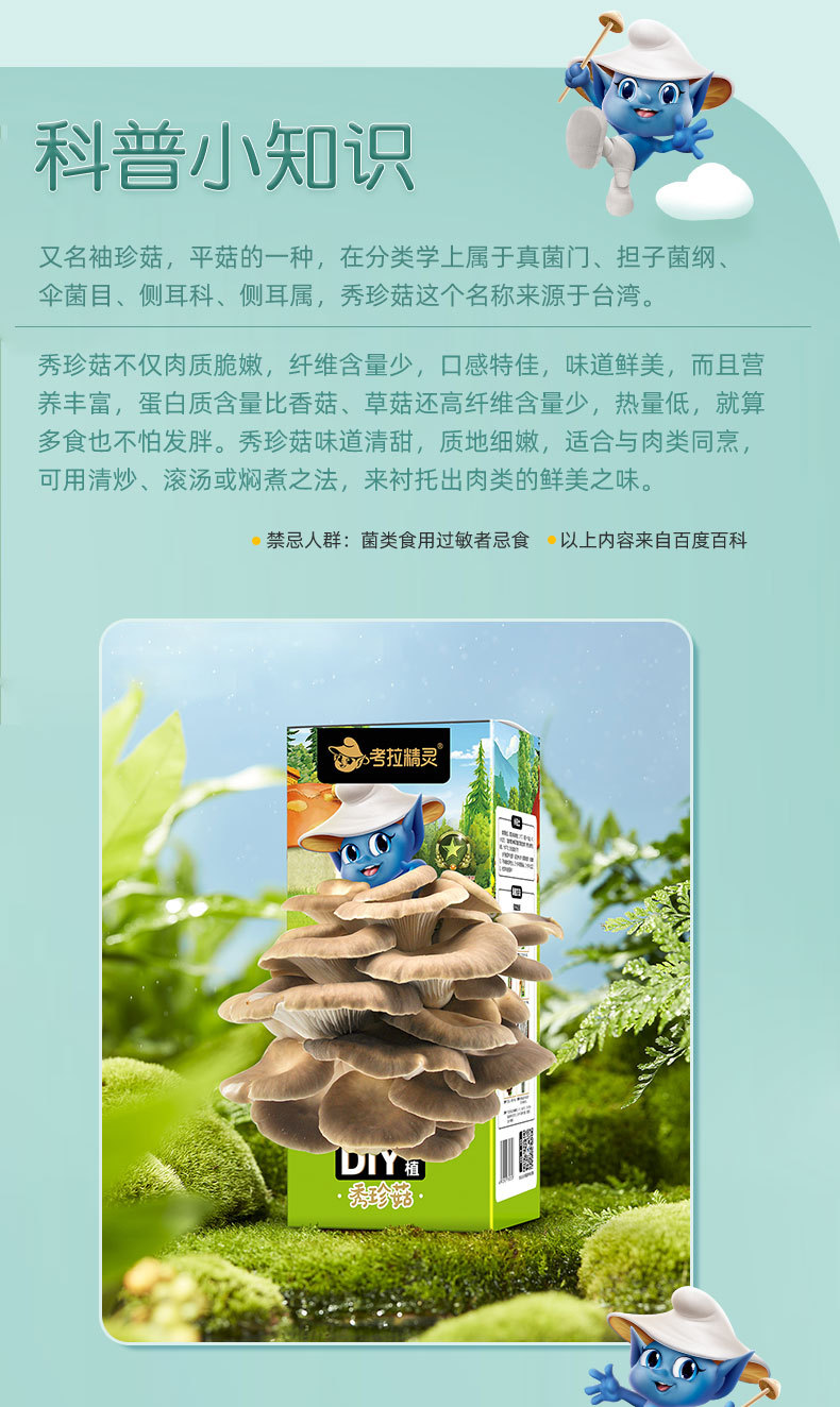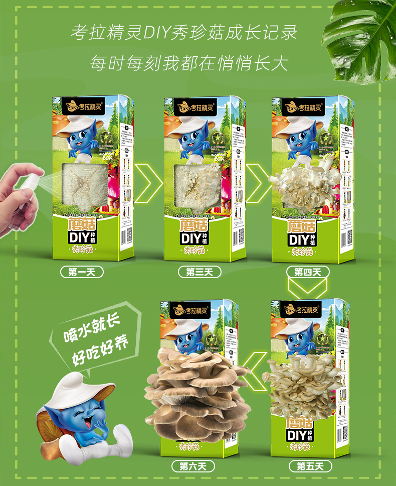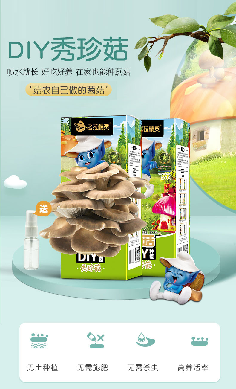 【可食用性蘑菇 收到需尽快种植】考拉精灵平菇蘑菇种植包菌包2盒装 可食用儿童diy菌菇棒菌种子盆栽