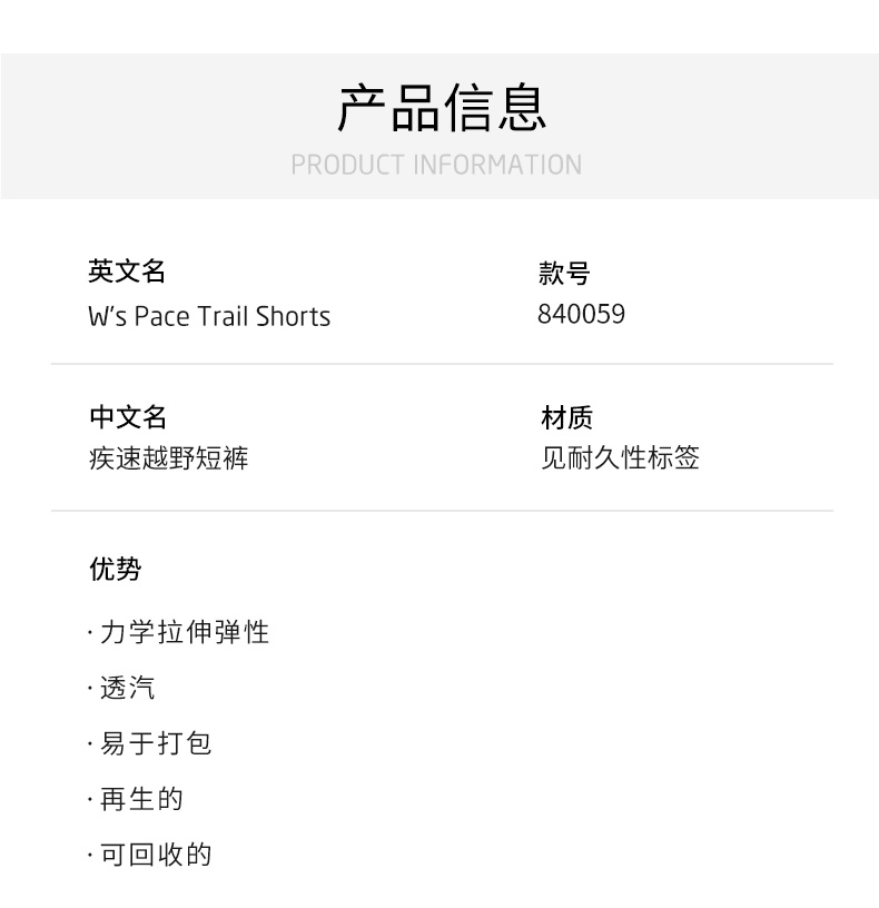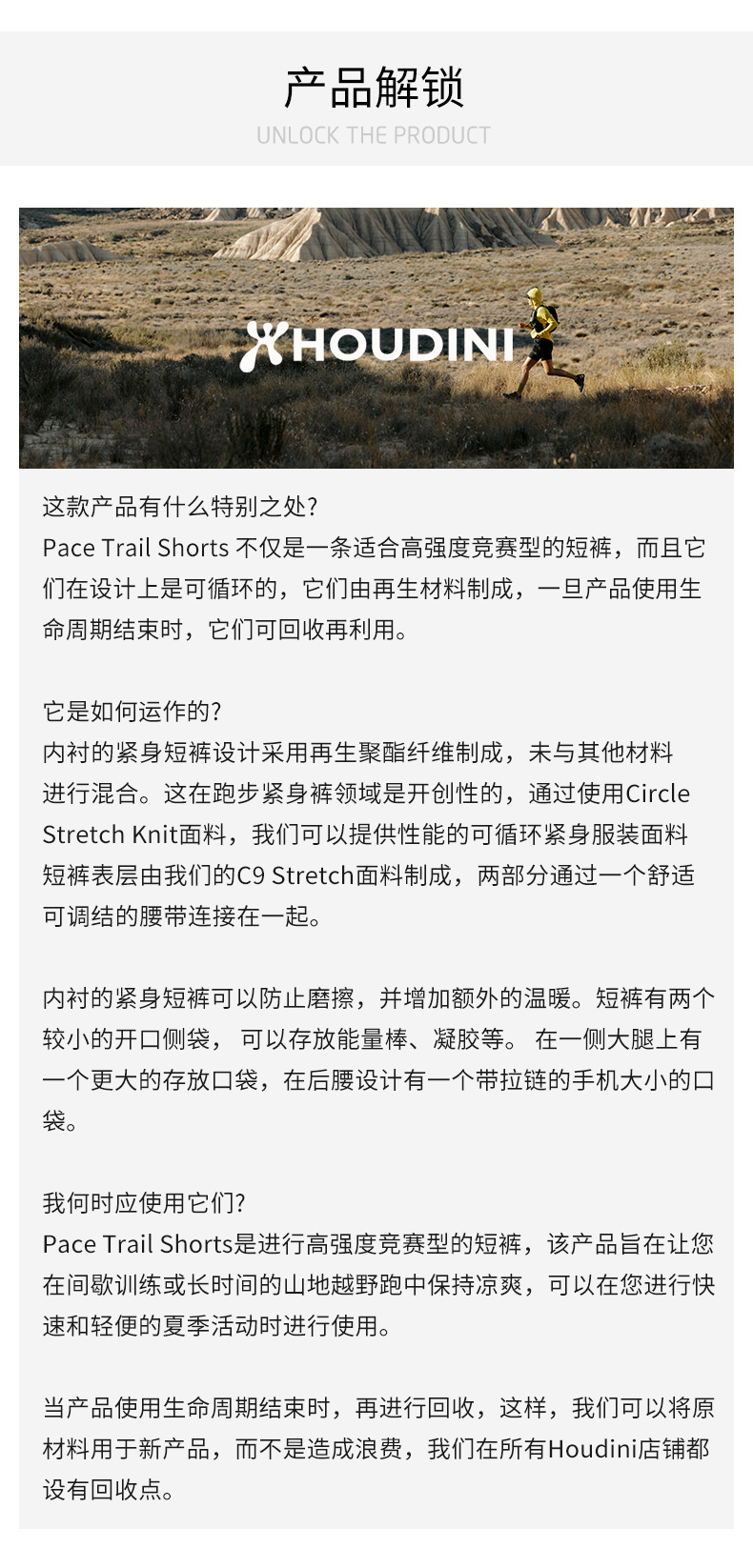 HOUDINI胡丁尼Pace Trail Shorts疾速越野女户外快干跑步健身短裤 840059