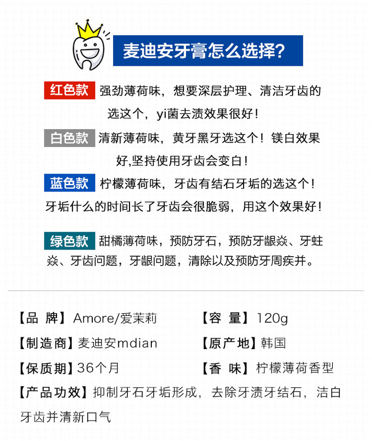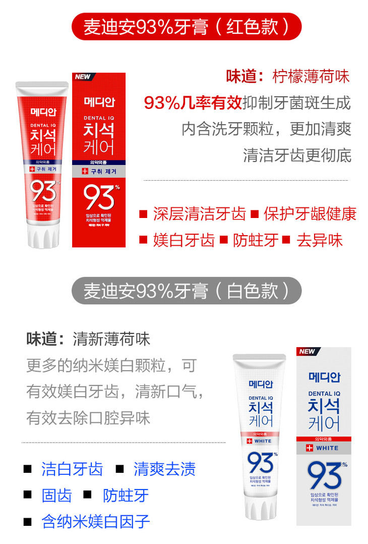 〖4支装〗韩国进口麦迪安93牙膏 去口臭去烟渍牙渍去黄口气清新