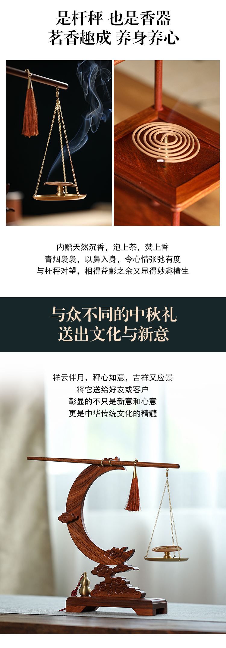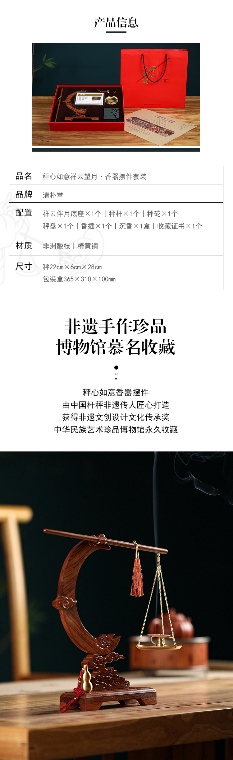 清朴堂 秤心如意祥云望月香器摆件套装