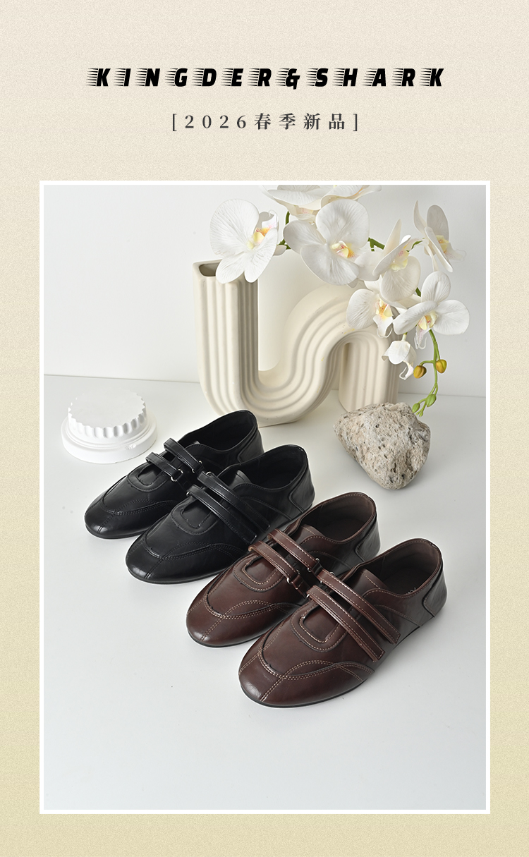 经典鲨2026春季专柜新品法式复古魔术贴软底舒适防滑单鞋女KW507-617011