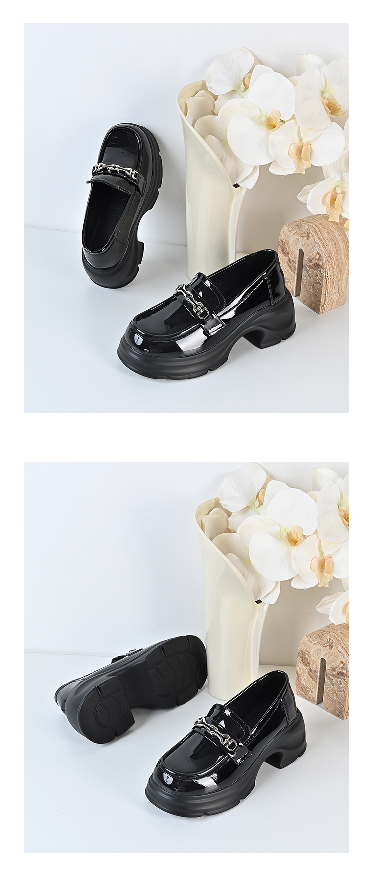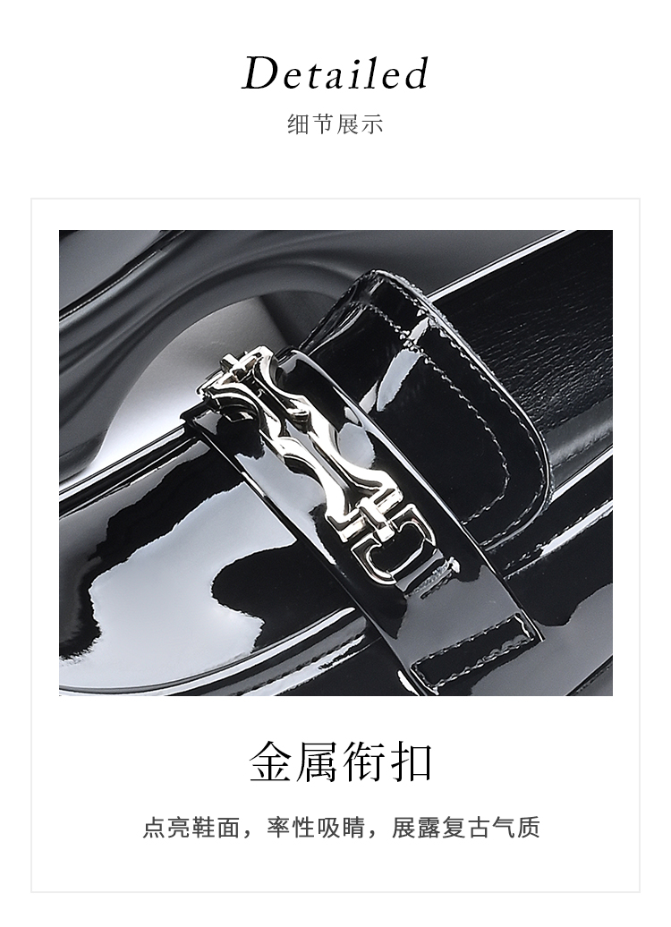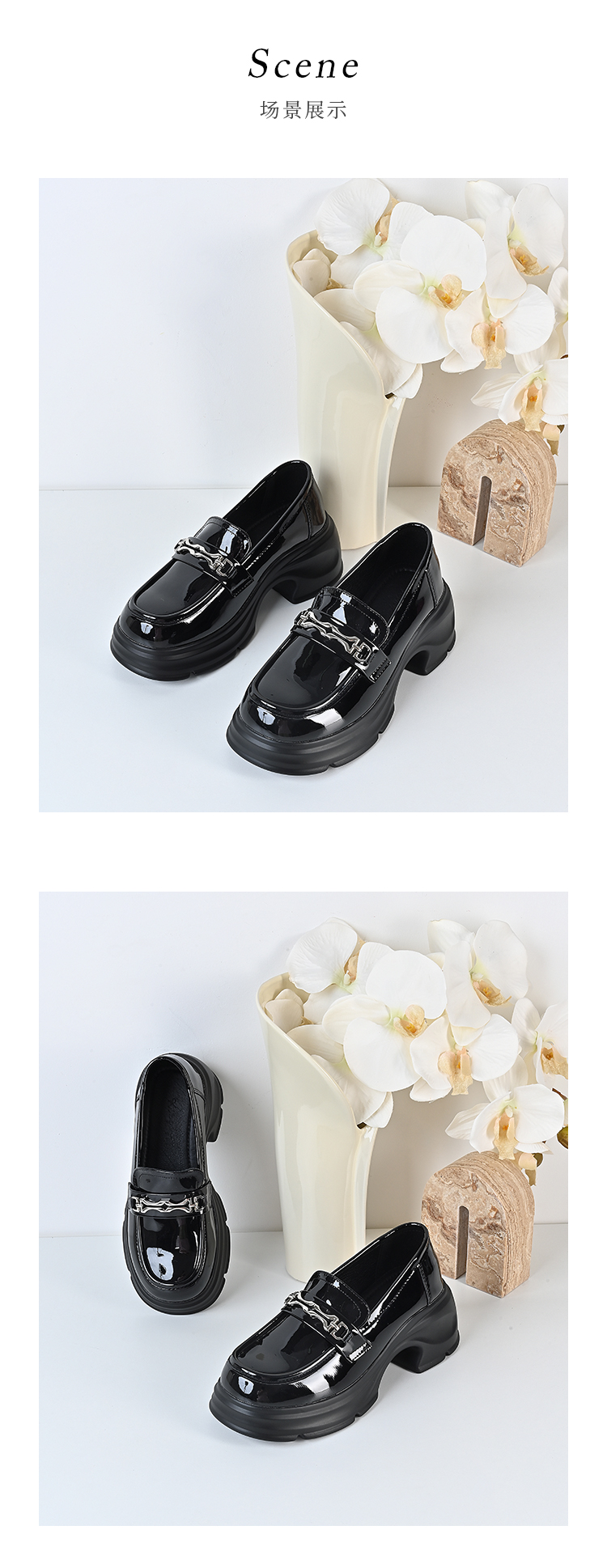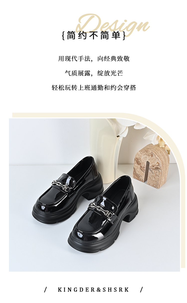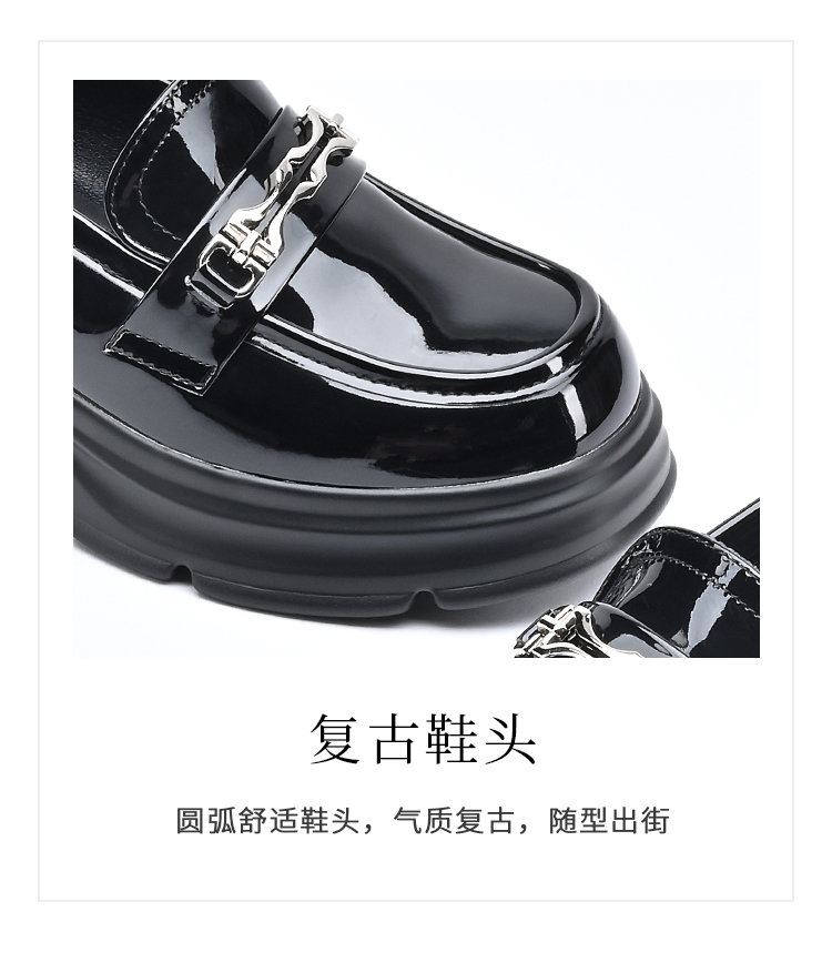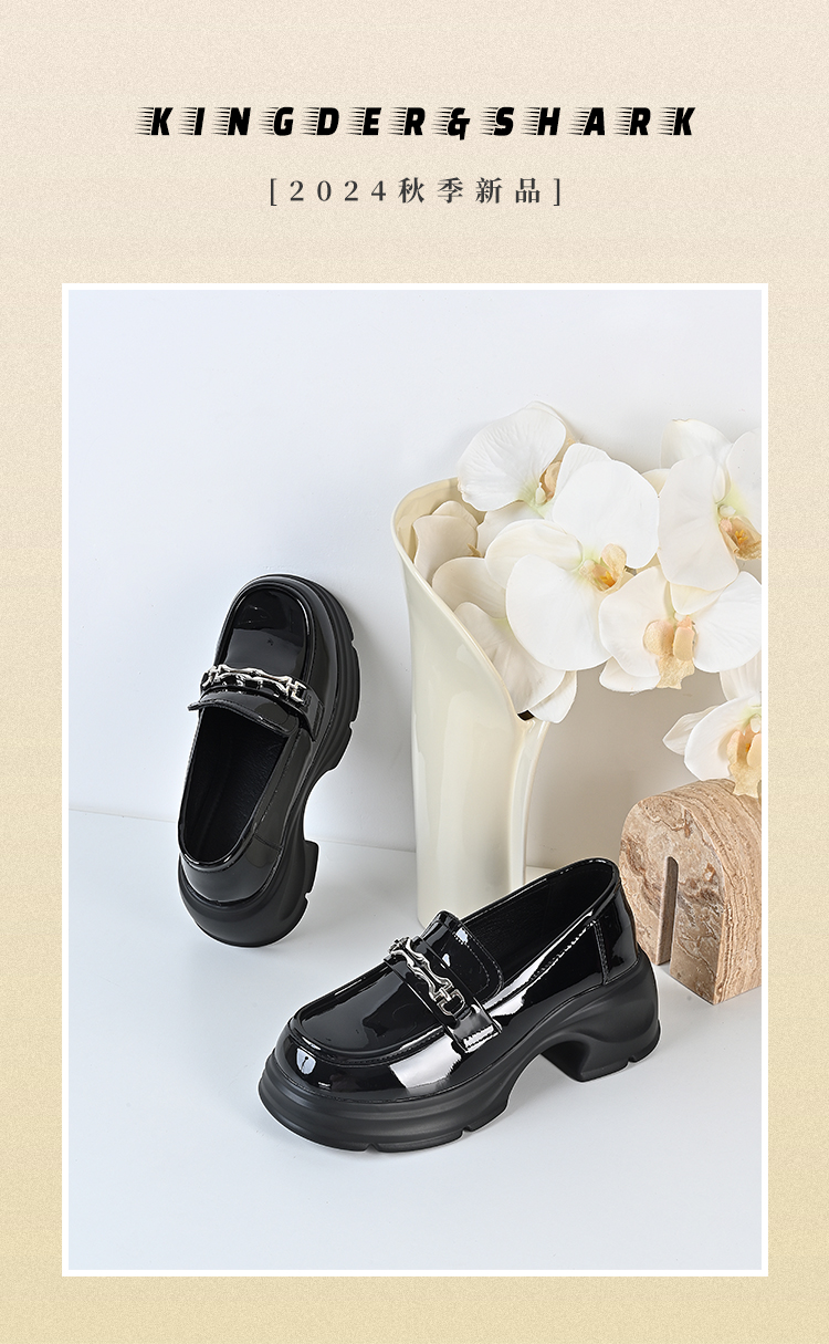 经典鲨2024年秋新款百搭圆头中粗跟一脚蹬日常通勤乐福鞋女KW212-D37021