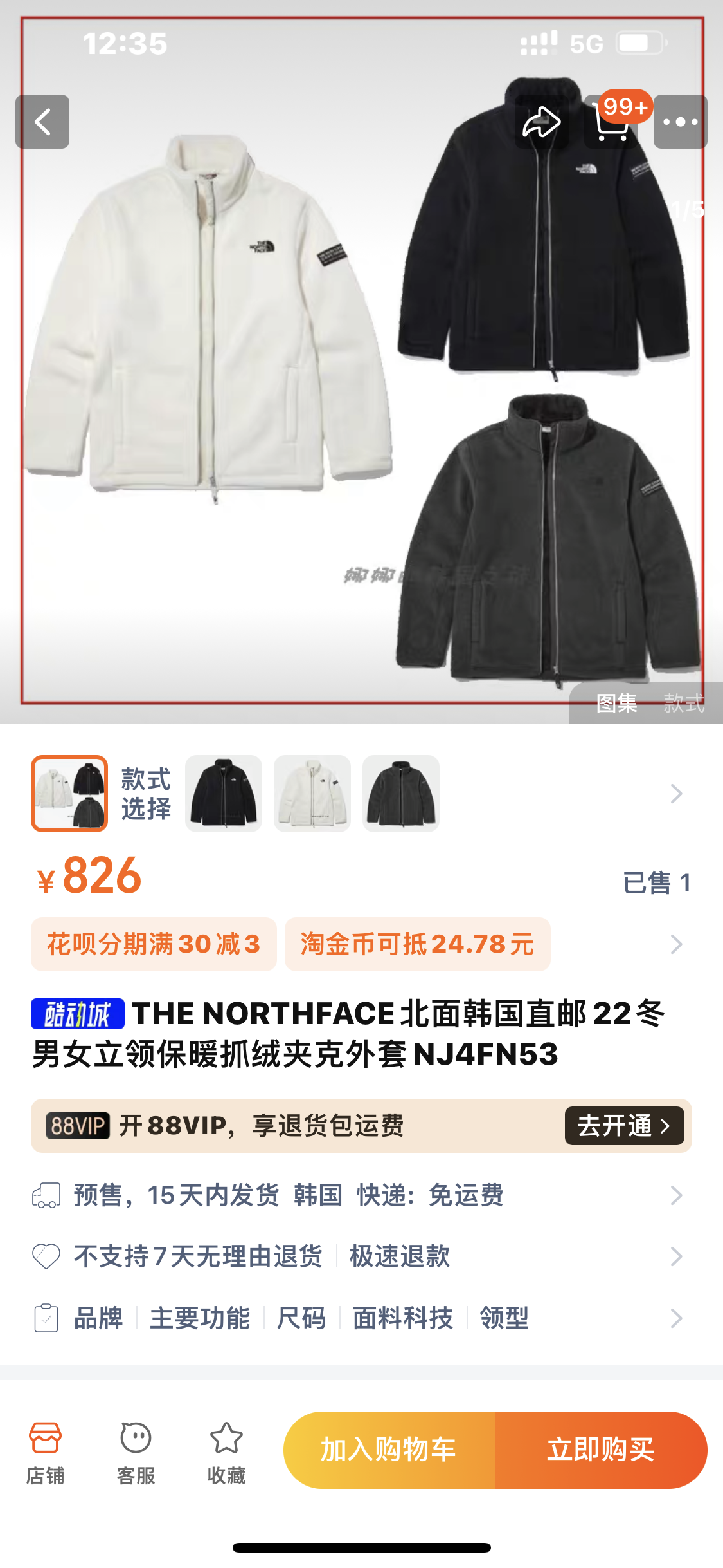 韩国单,����双面绒超保暖!男女同款tnf北面立领摇粒绒外套