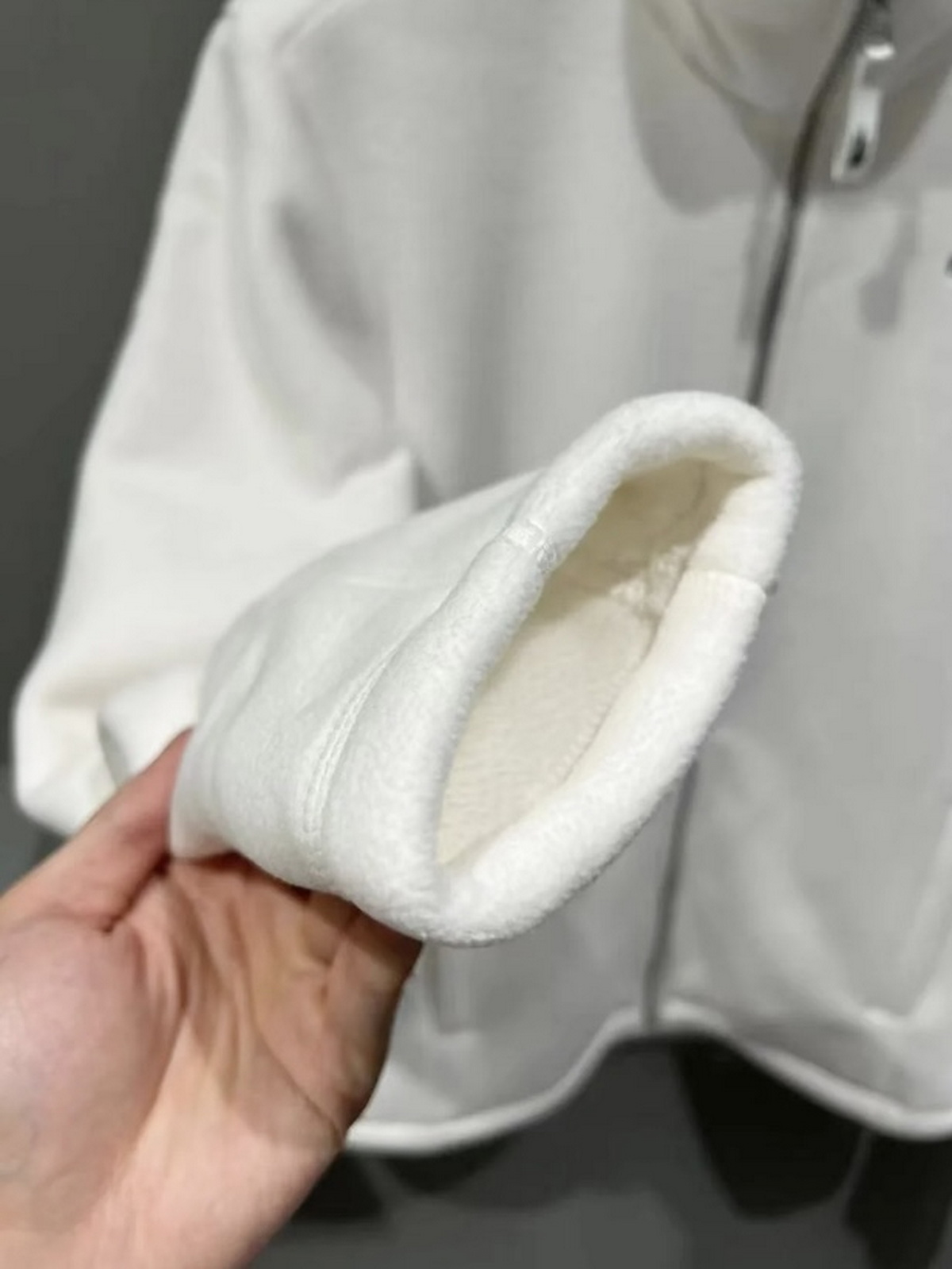 双面绒AB面都是复合绒料,内里复合长绒摇粒绒,亲肤保暖,立领夹克式设计版型精神气十足。只在前后肩部有刺绣的logo,非常精简干练简约的款式。本布的袖口和领口让成衣;还可以搭配三合一冲锋衣!