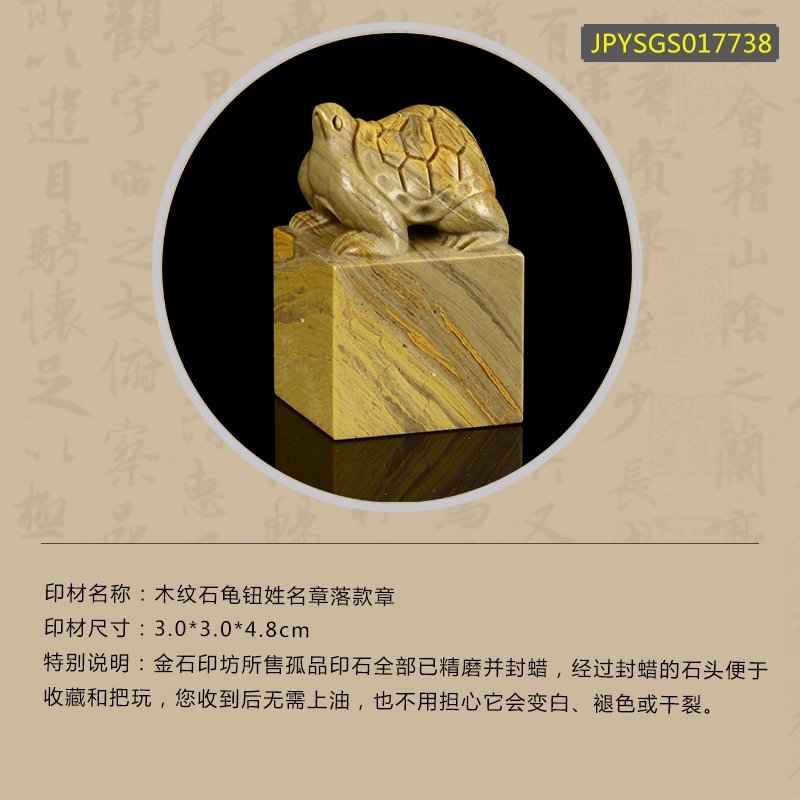 孤品17738木纹石龟钮姓名章落款章-3.0*3.0*4.8cm