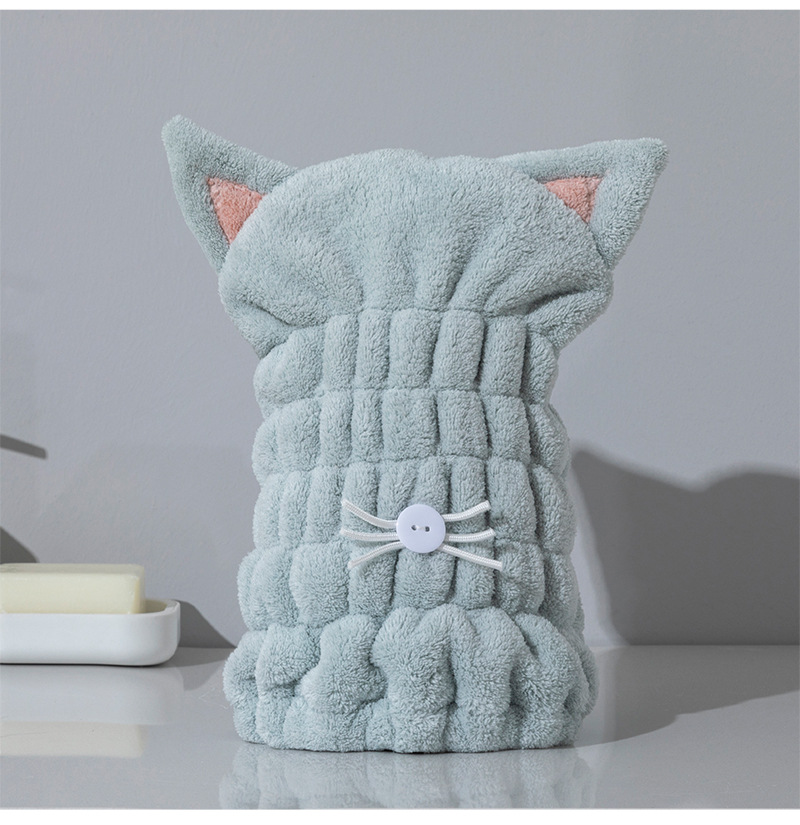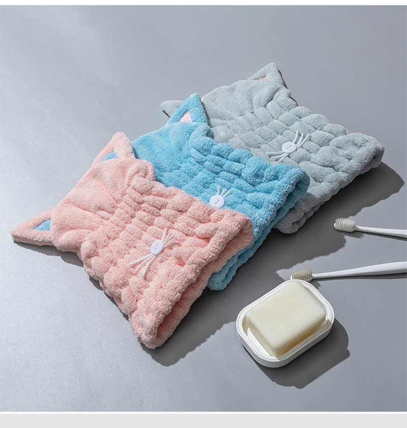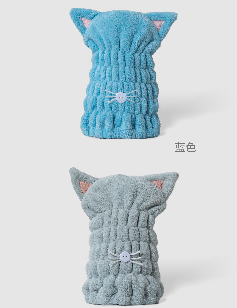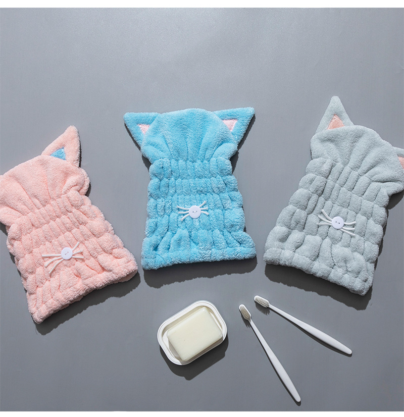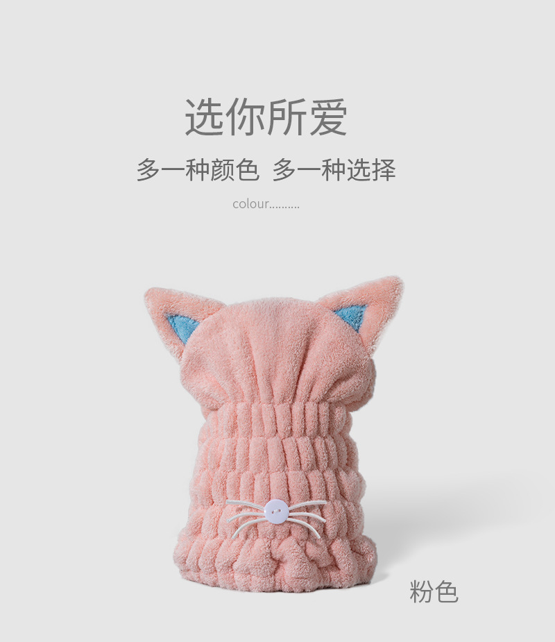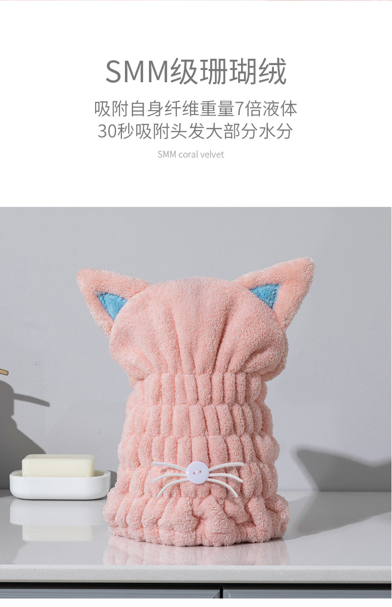 【母婴】韩版卡通可爱猫耳朵珊瑚绒儿童干发帽