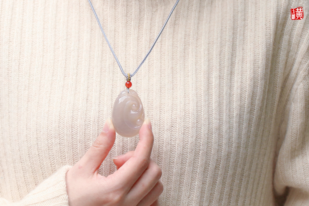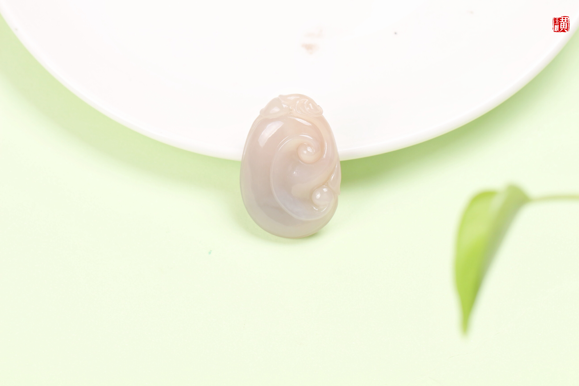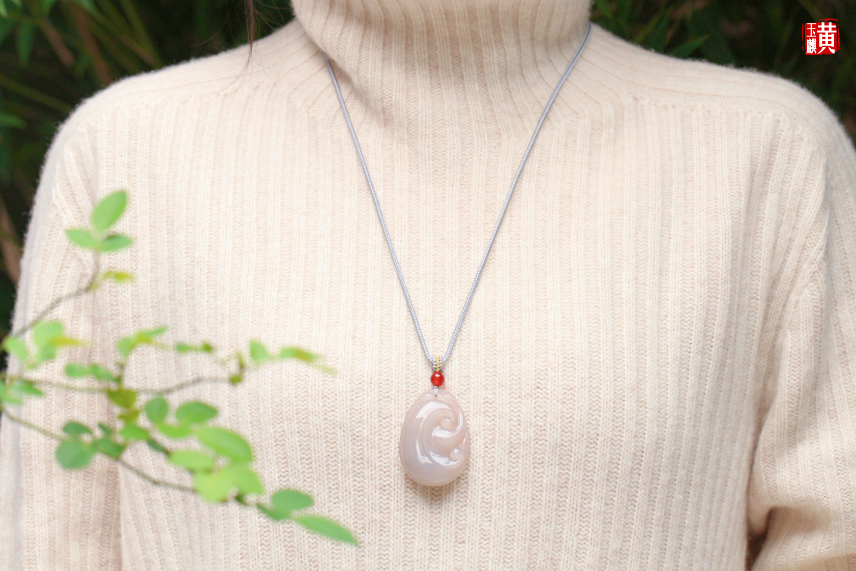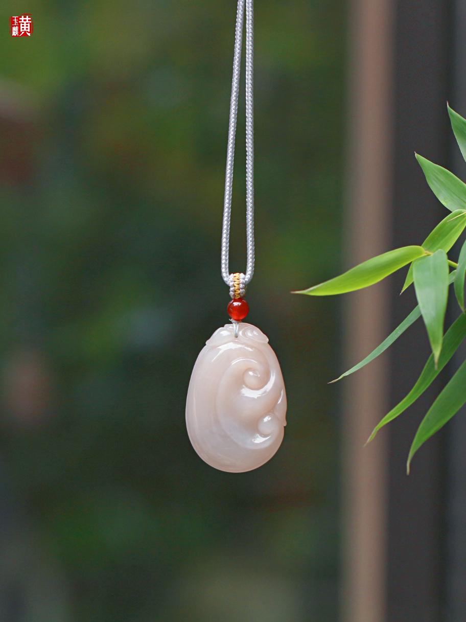 和田玉藕粉【如意】吊坠 配精美挂绳