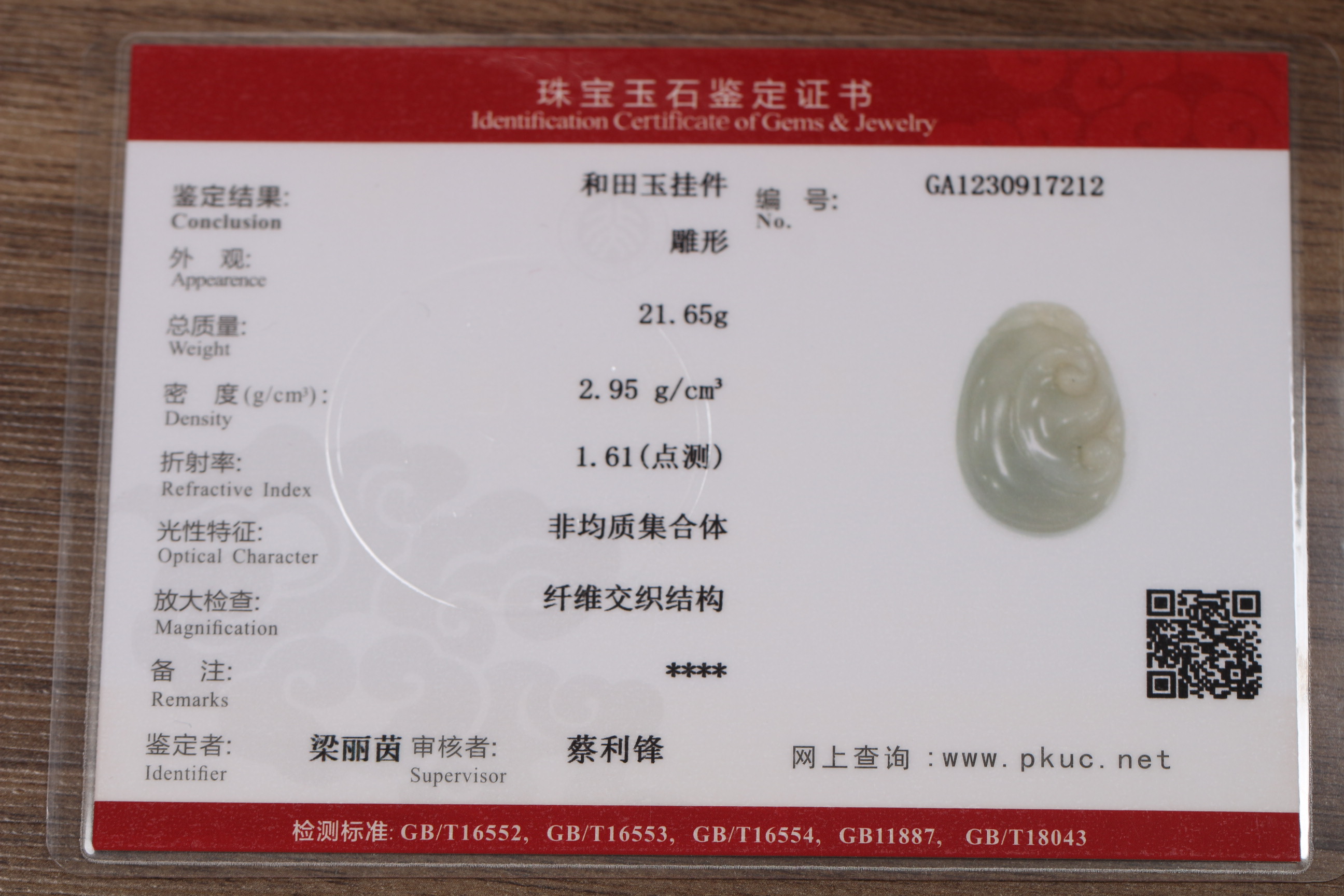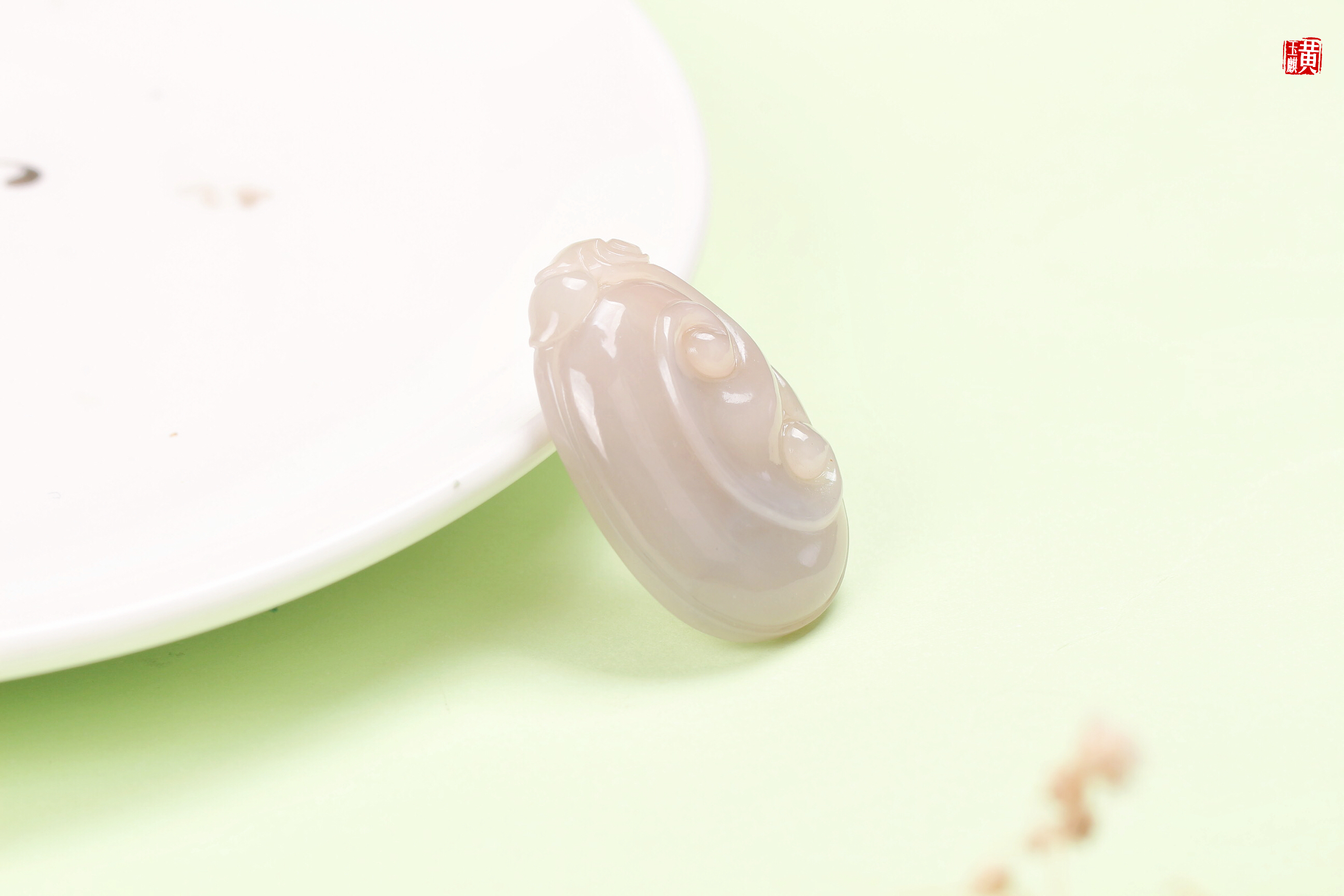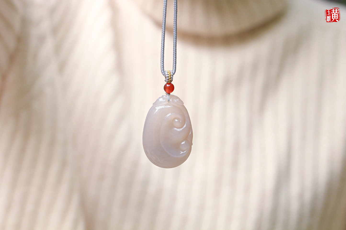 和田玉藕粉【如意】吊坠 配精美挂绳