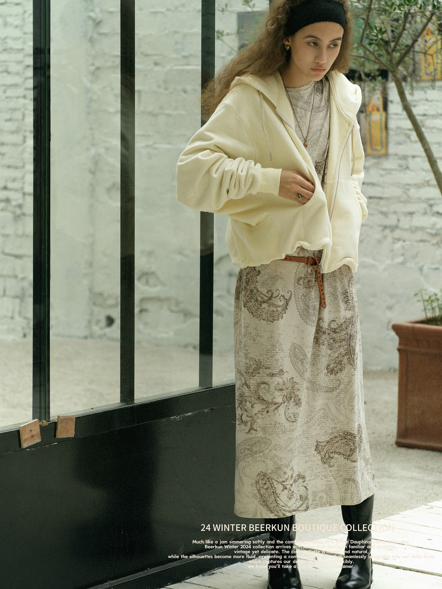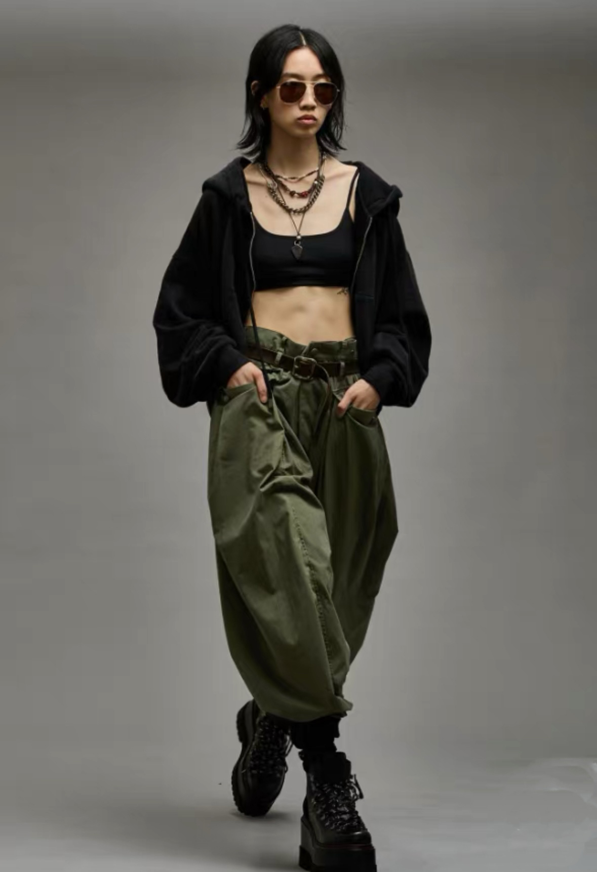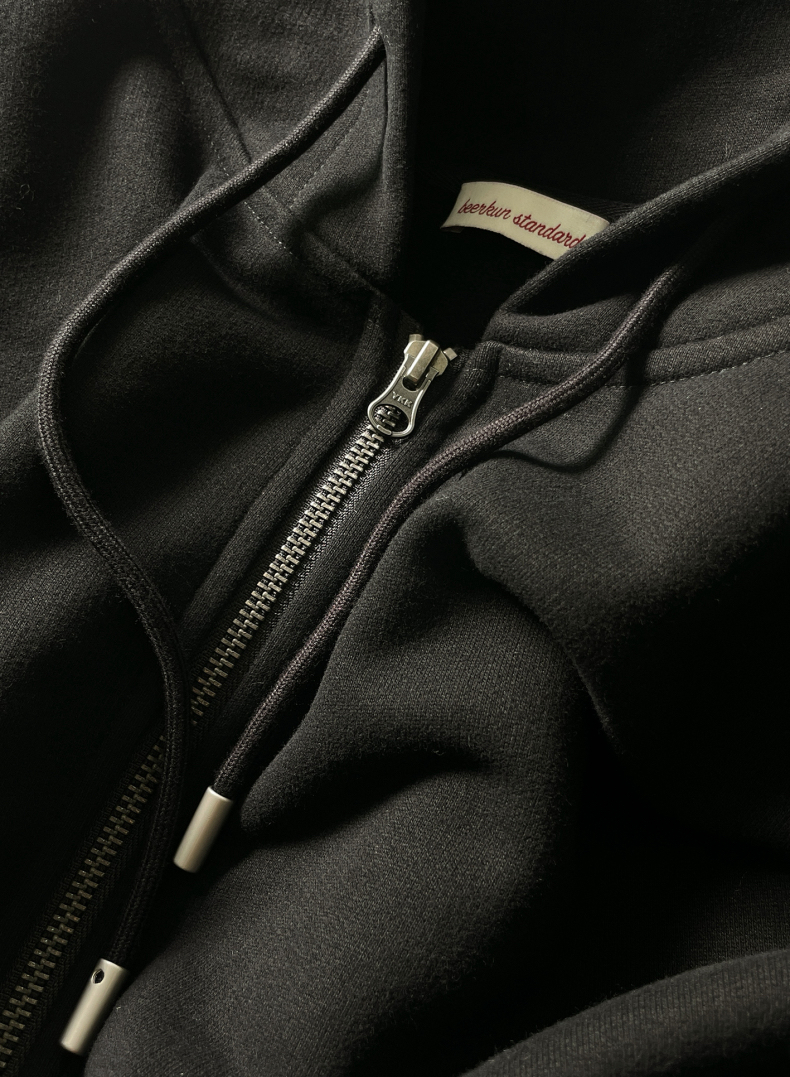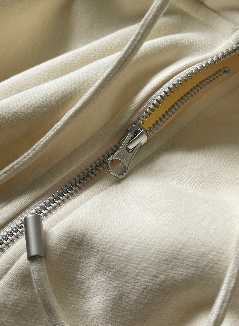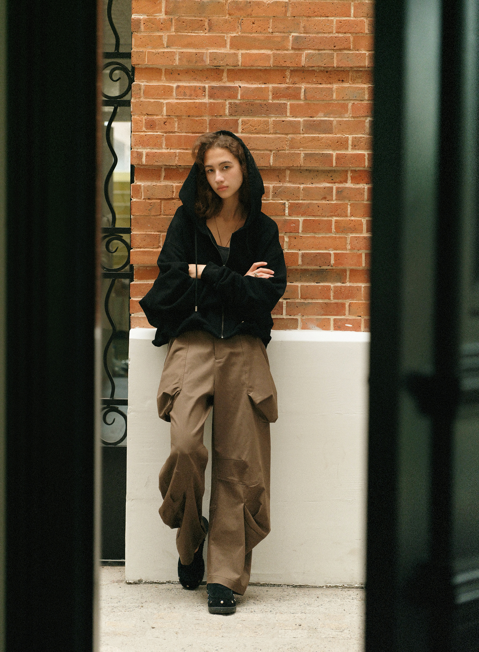 [特价]磨毛水洗轻加绒 重工捏褶戴帽卫衣 100%棉 黑色/奶油色