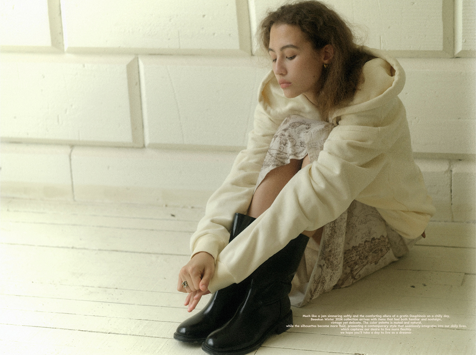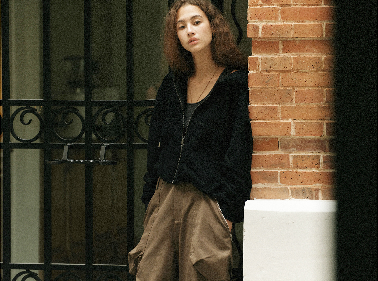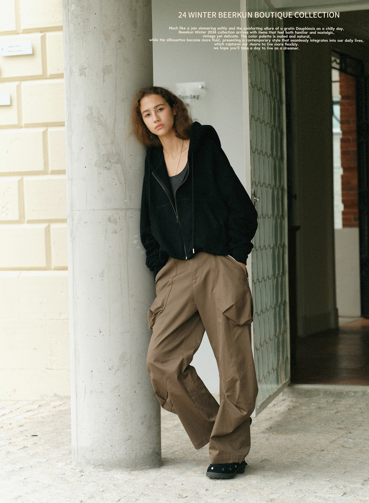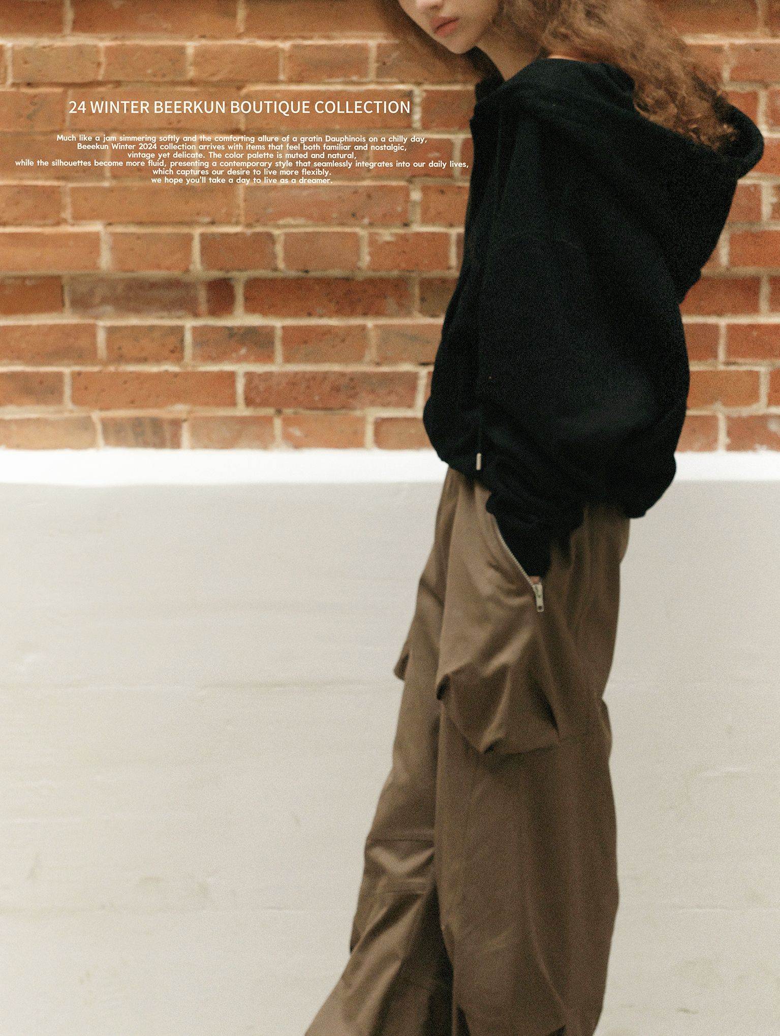 [特价]磨毛水洗轻加绒 重工捏褶戴帽卫衣 100%棉 黑色/奶油色