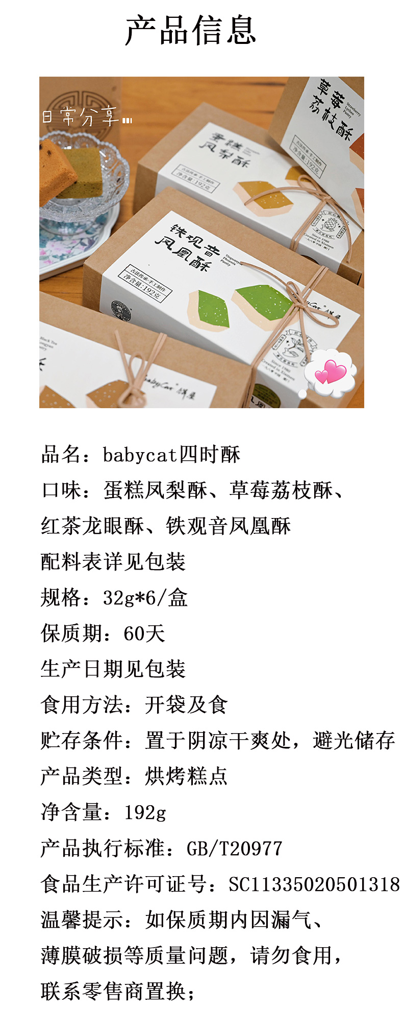 口味:蛋糕凤梨酥、草莓荔枝酥、红茶龙眼酥、铁观音凤凰酥