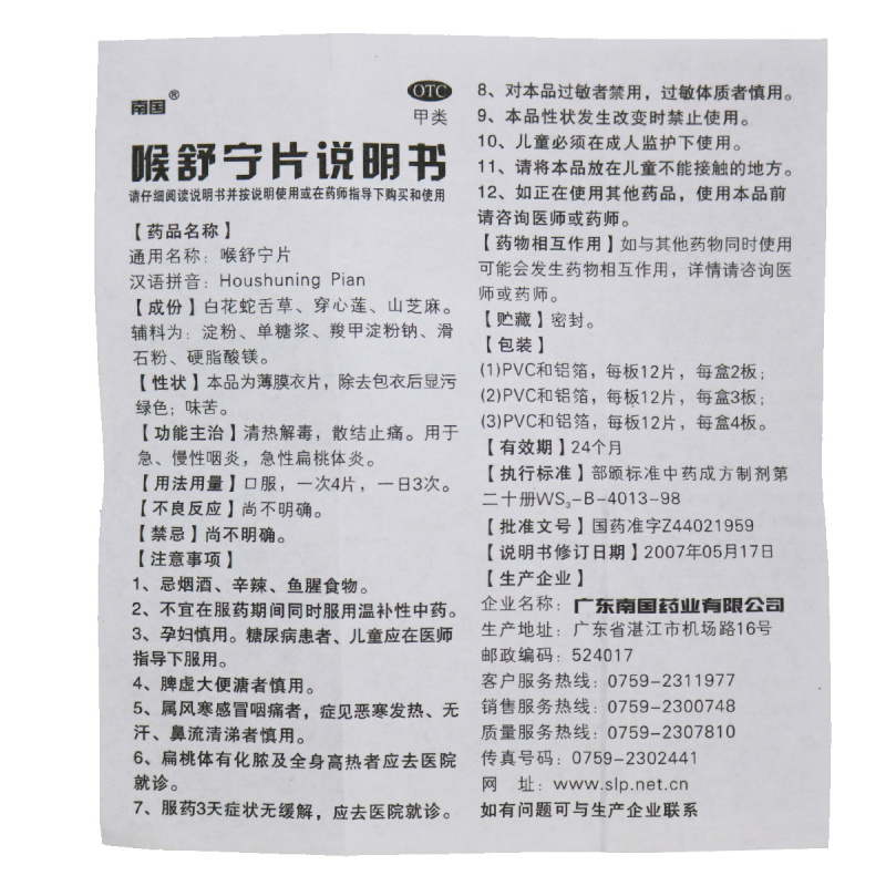 南国 喉舒宁片24片清热解毒散结止痛用于急慢性咽炎急性扁桃体炎