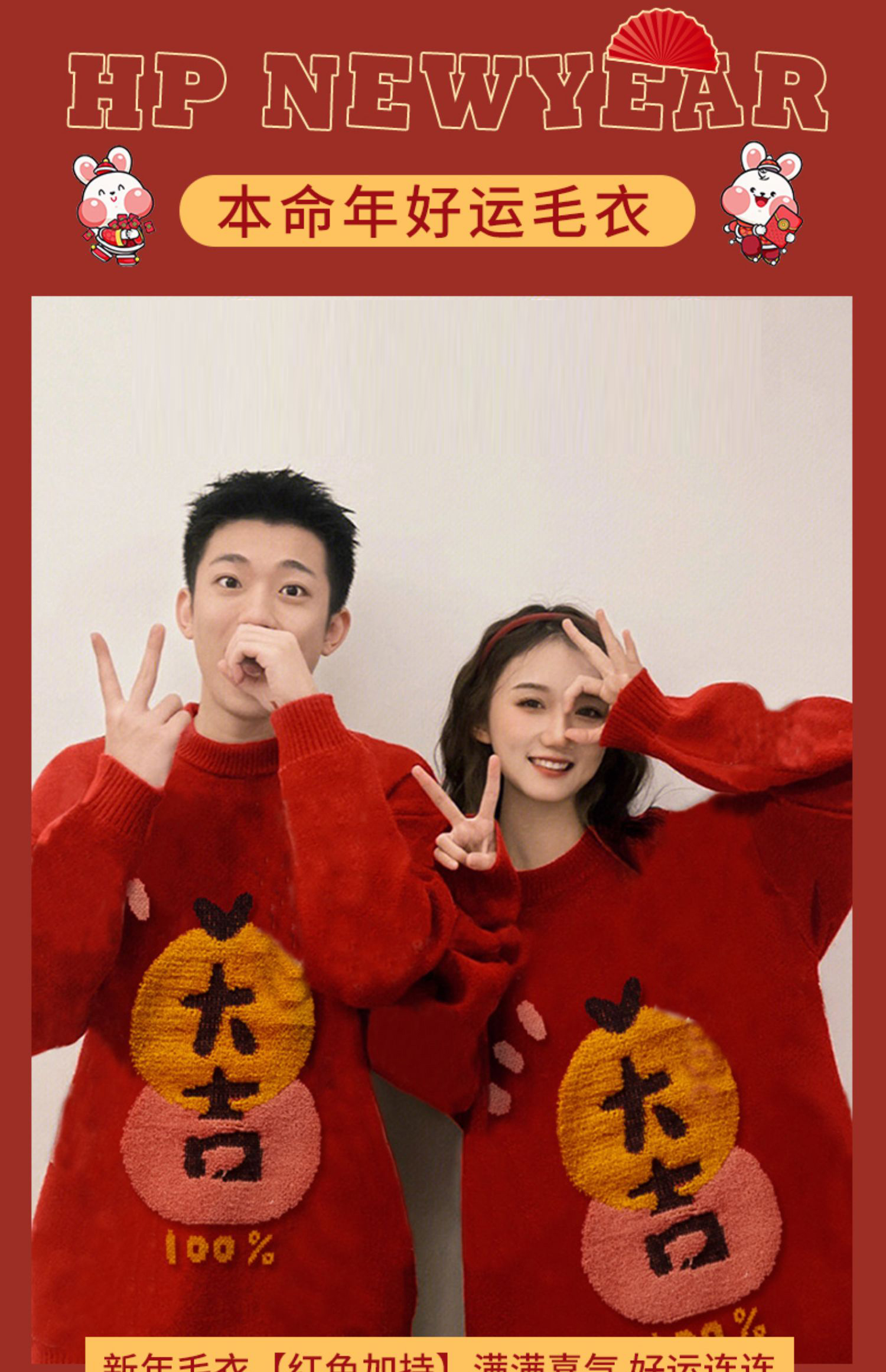 新年开运LOOK | 情侣款大吉大利100%毛衣 舒适百搭 新春穿新衣 事事顺利 大吉大利!