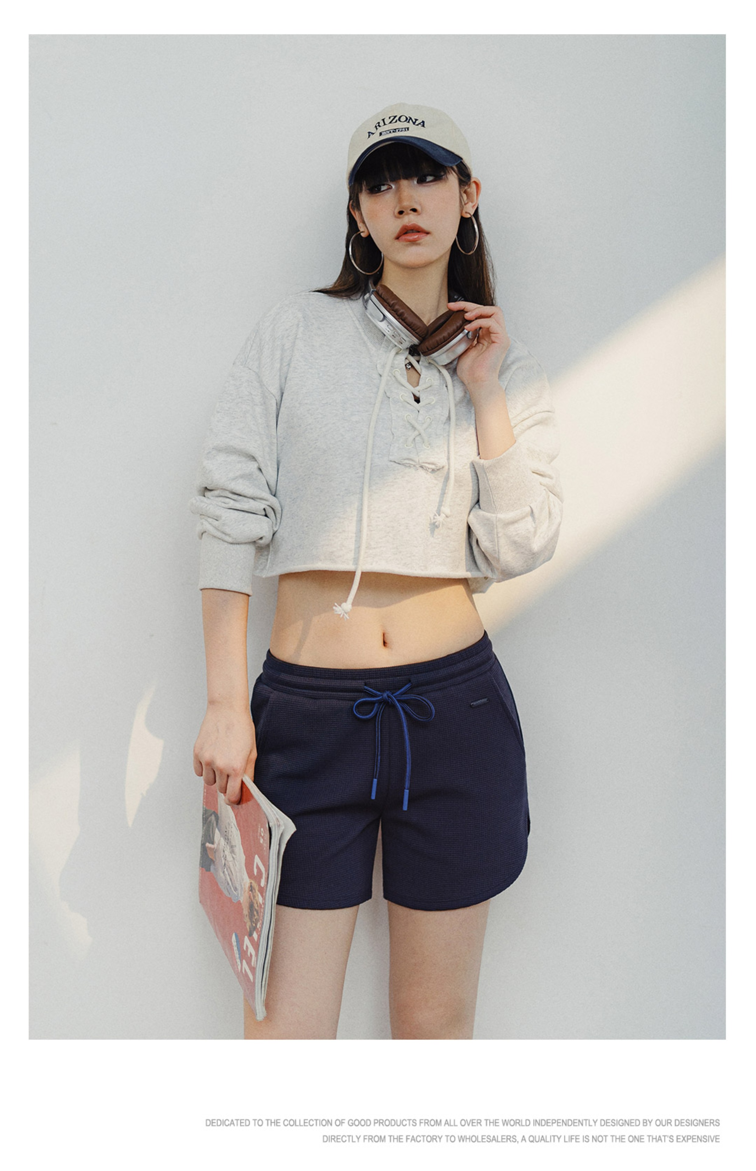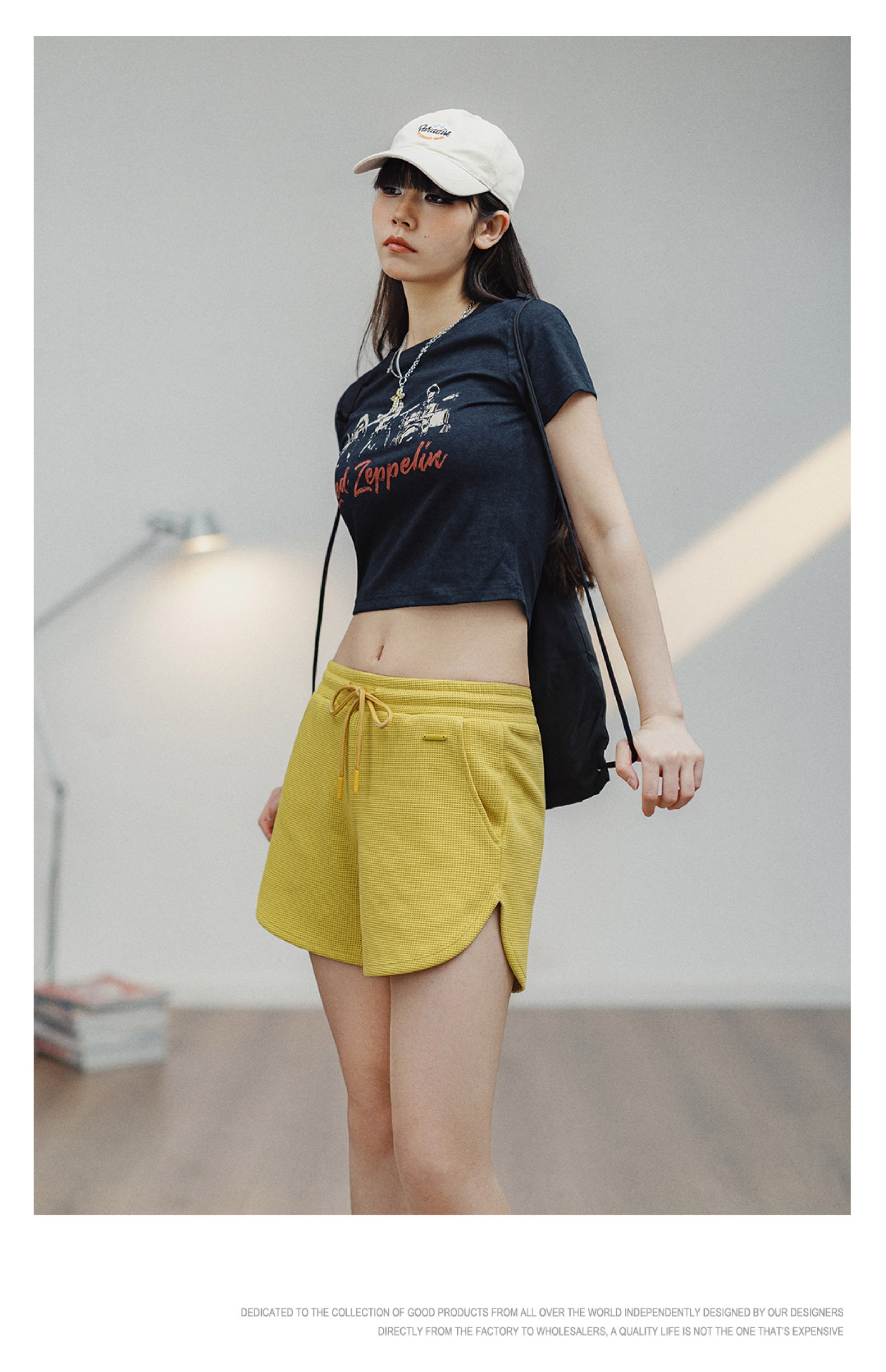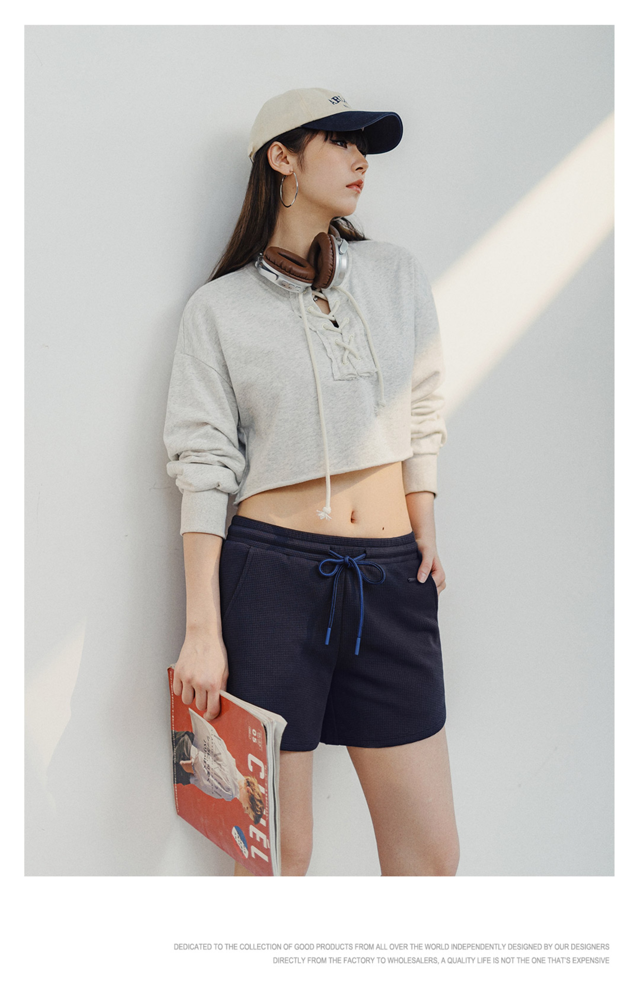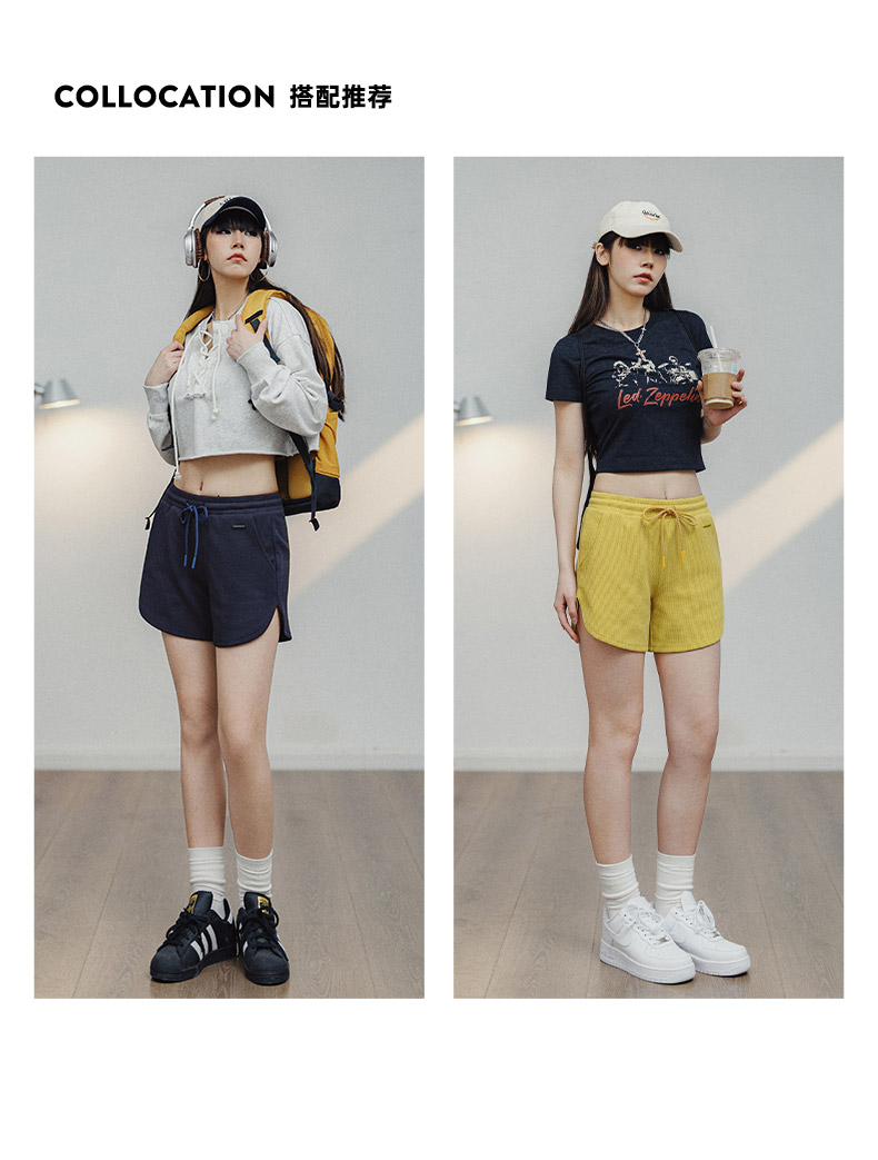 马登华夫格短裤跑步健身休闲裤显瘦阔腿裤宽松抽绳热裤运动裤夏女