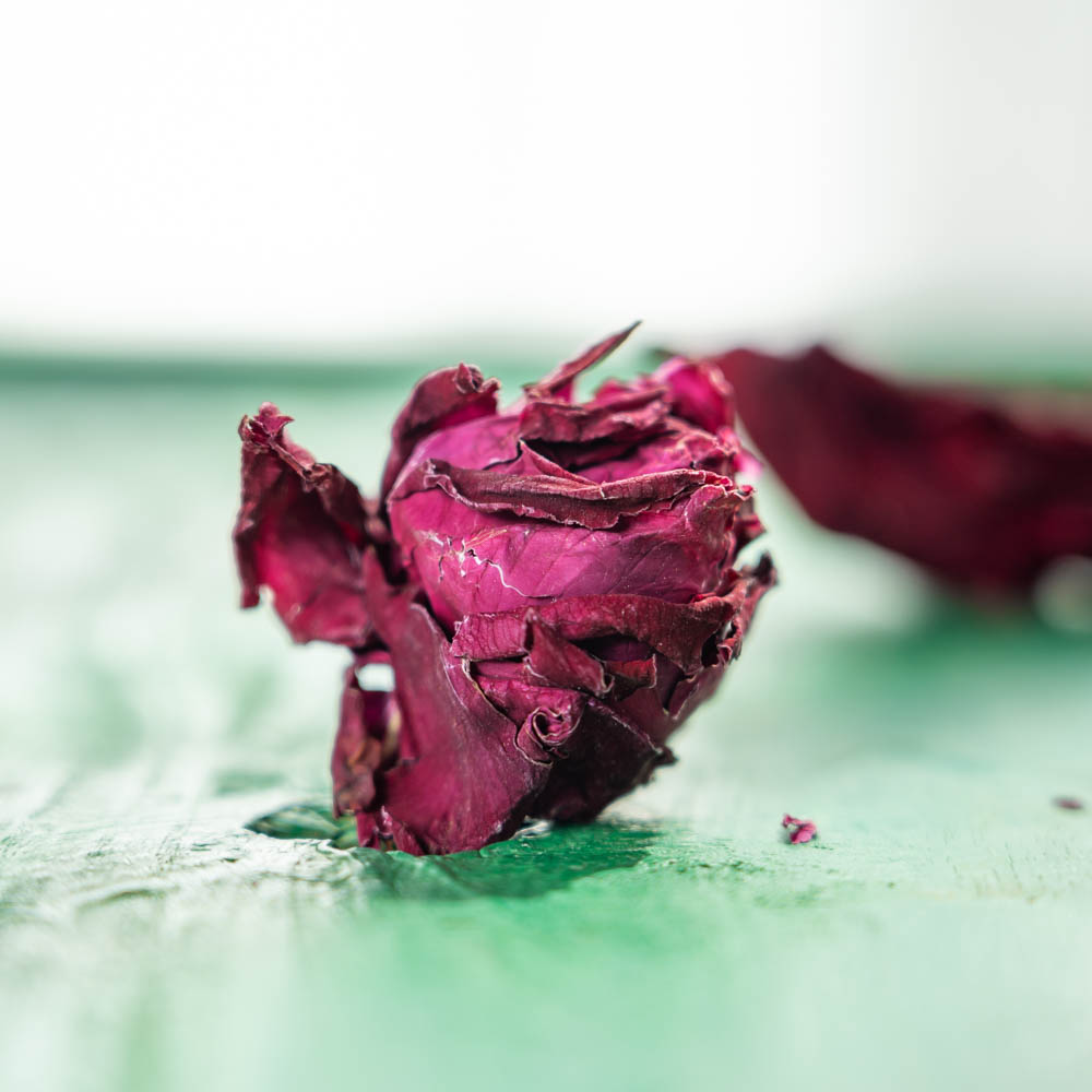 墨红玫瑰都在清晨太阳升起之前采摘,由于此时的花朵带着露水,冻干后花瓣偶尔会有水斑点,不影响花朵品质。