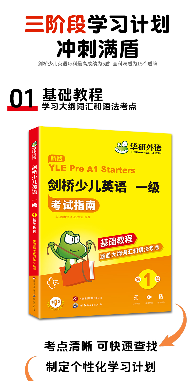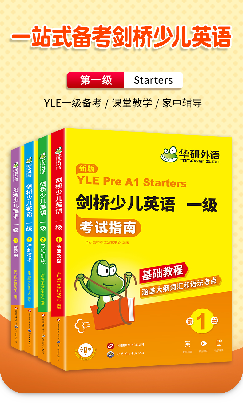华研外语 剑桥少儿英语一级考试指南 剑桥少儿英语教材全真模拟试卷试题大纲词汇单词语法听力读写口语专项训练习册基础教程YLE教材