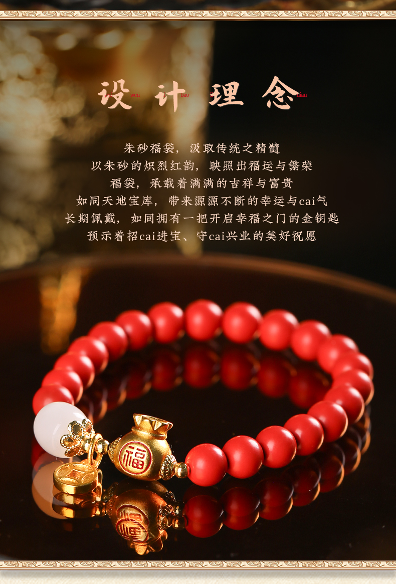 【袋袋有钱】朱砂钱袋手链 金元币福袋手串