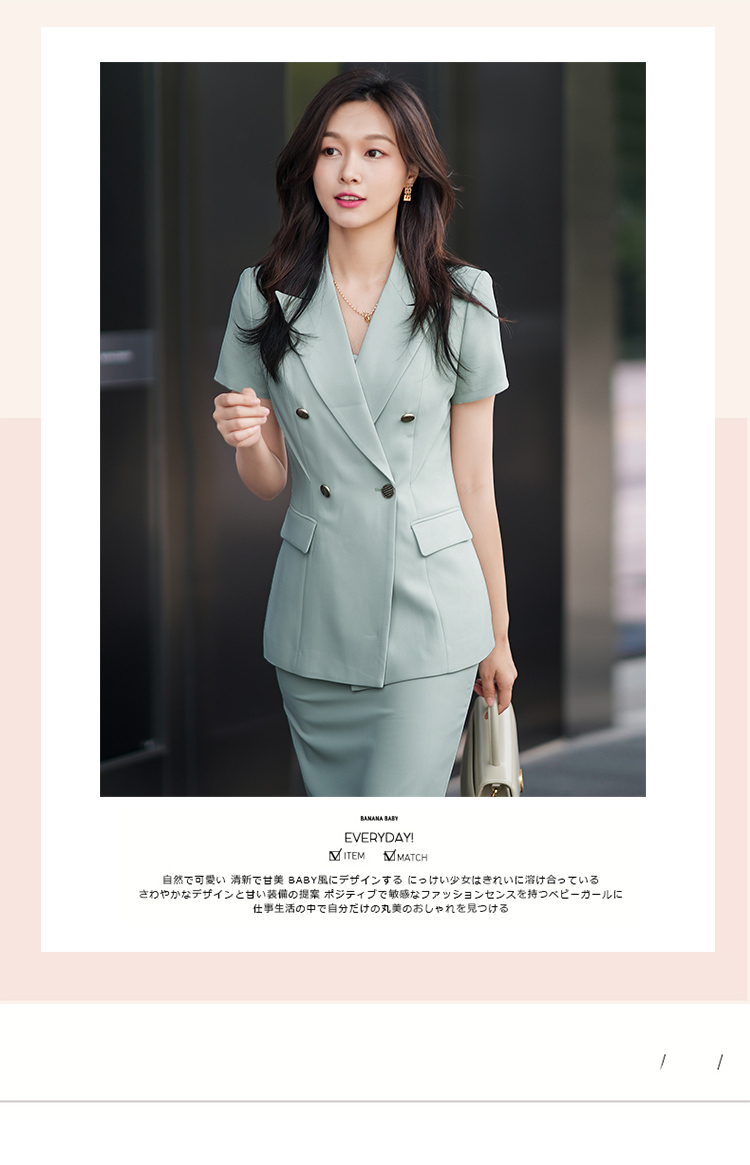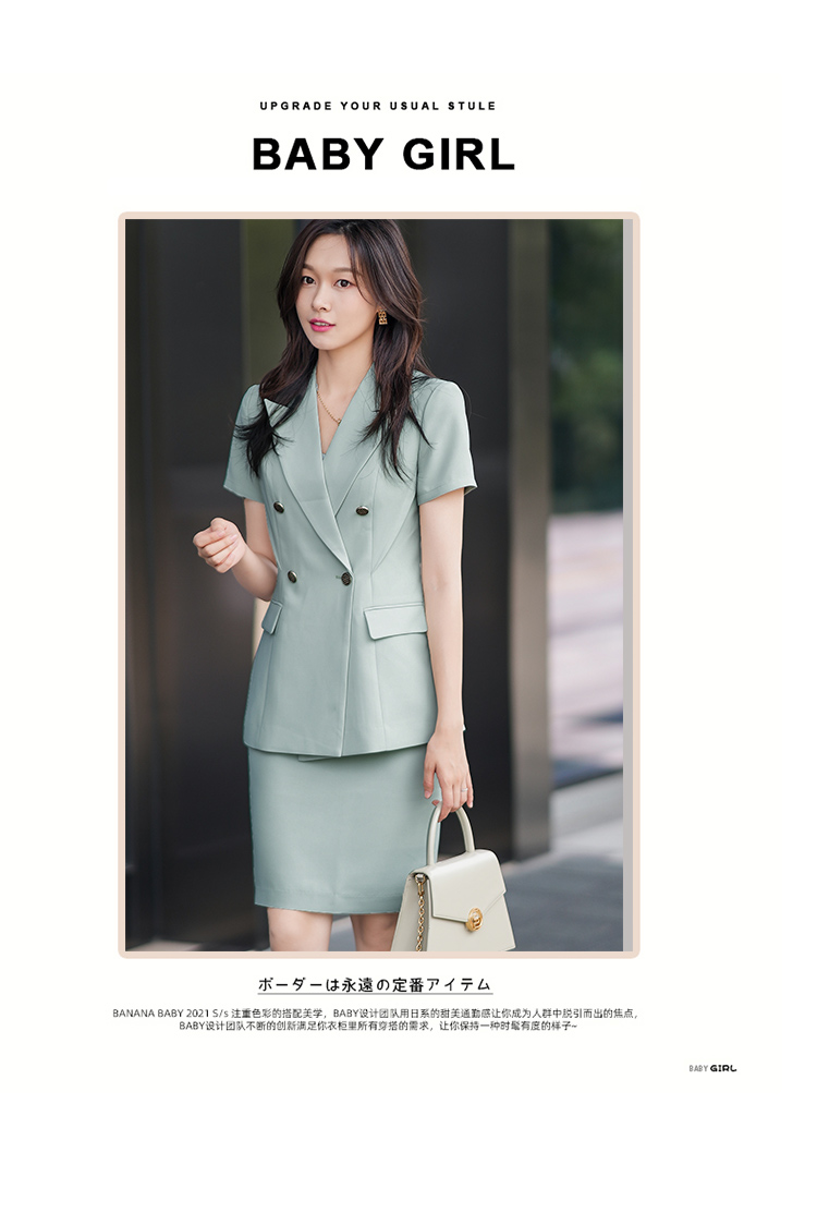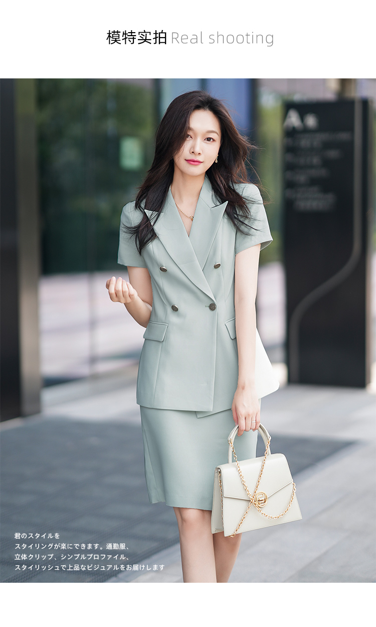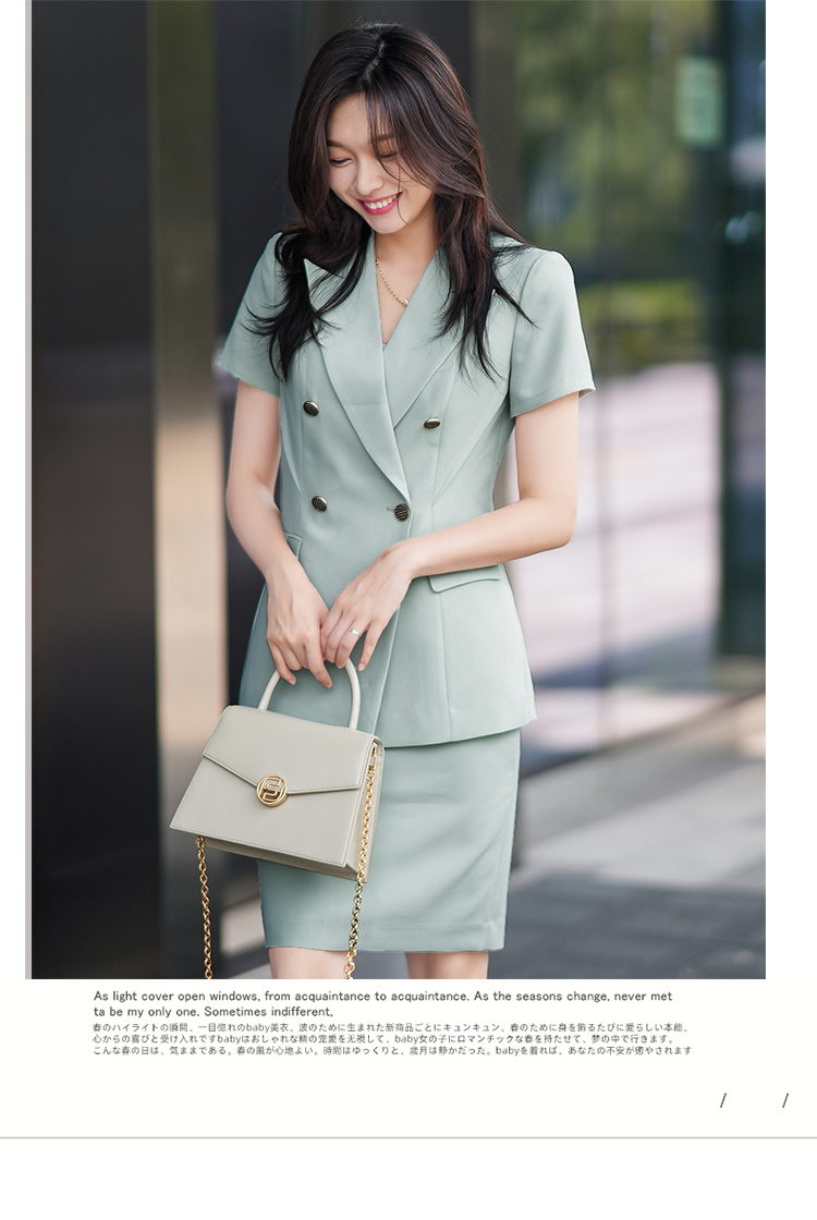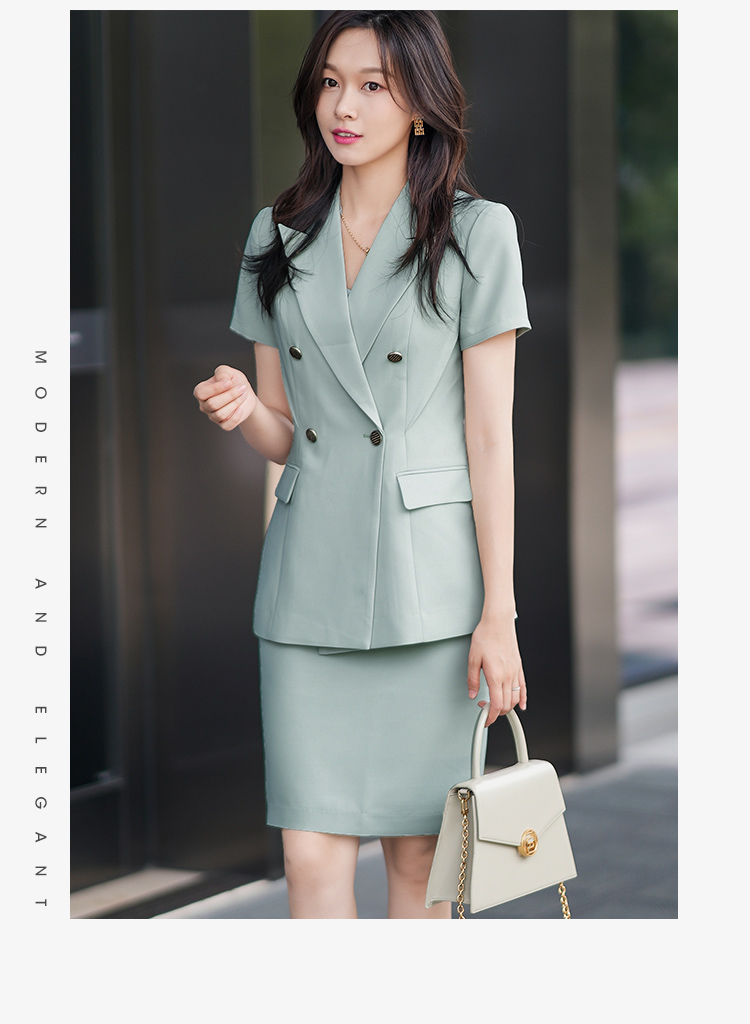 绿色短袖西装套装女夏季新款通勤工作服女时尚气质职业套裙