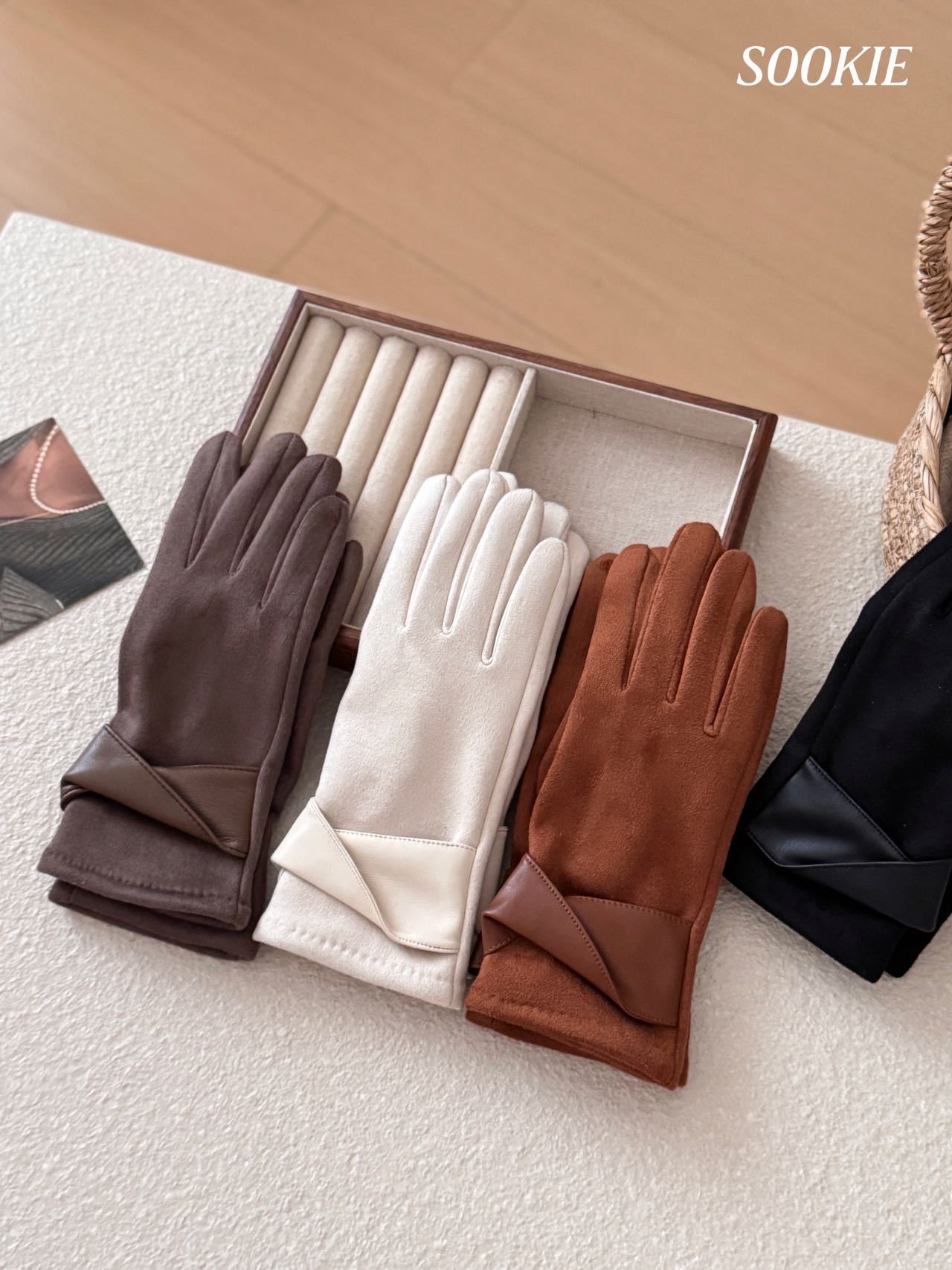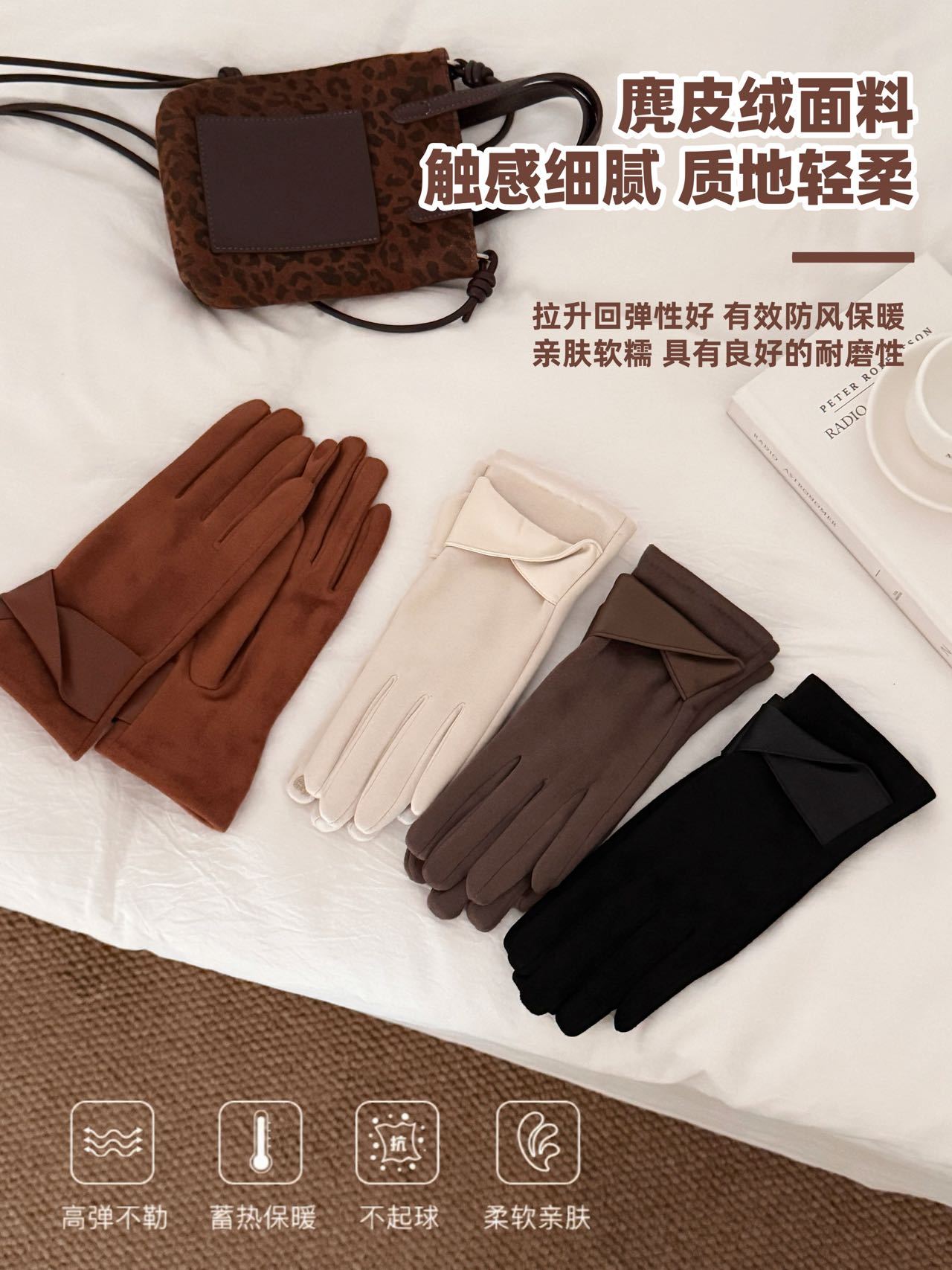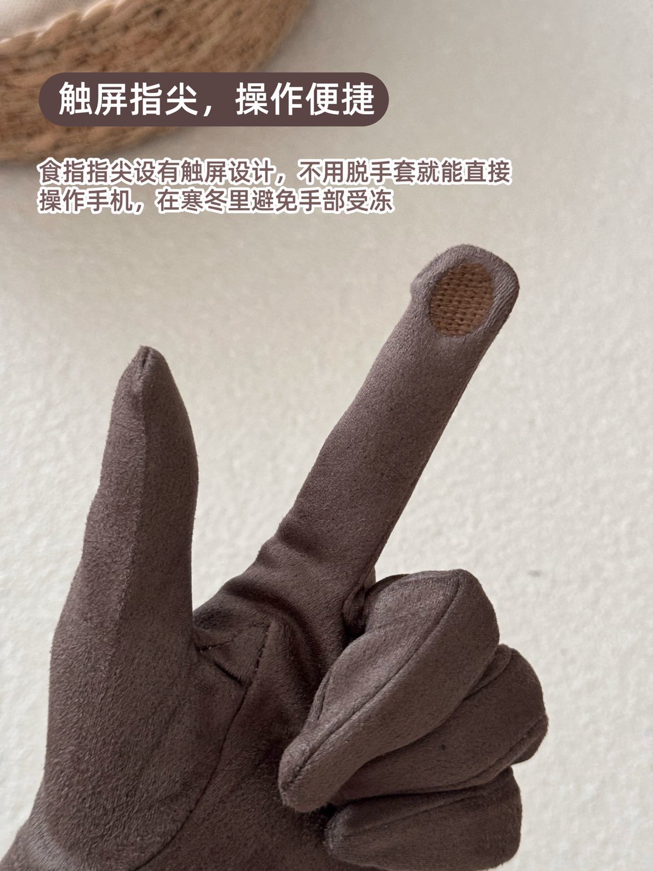【品名】SOOKIE 麂皮绒保暖手套 亲肤柔软 防风保暖 食指触屏设计 4色可选 【规格】黑色、米白色、焦糖色、咖色 【产地】国内 【发货包装】独立包装 【发货地】浙江 【发货快递】韵达、中通随机发 【不发货区域】新疆、西藏、港澳台 【发货时效】48-72小时,周末节假日顺延 |