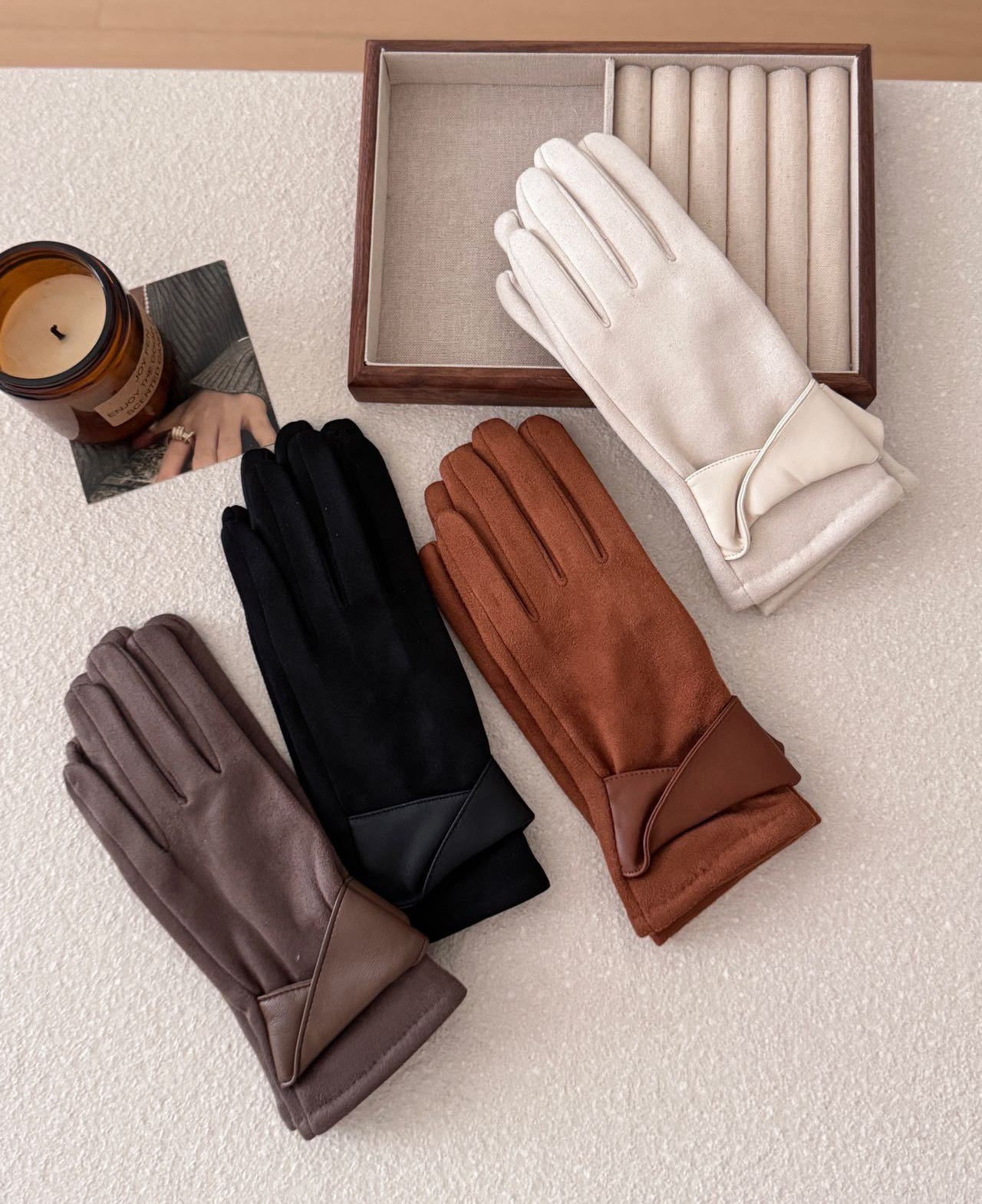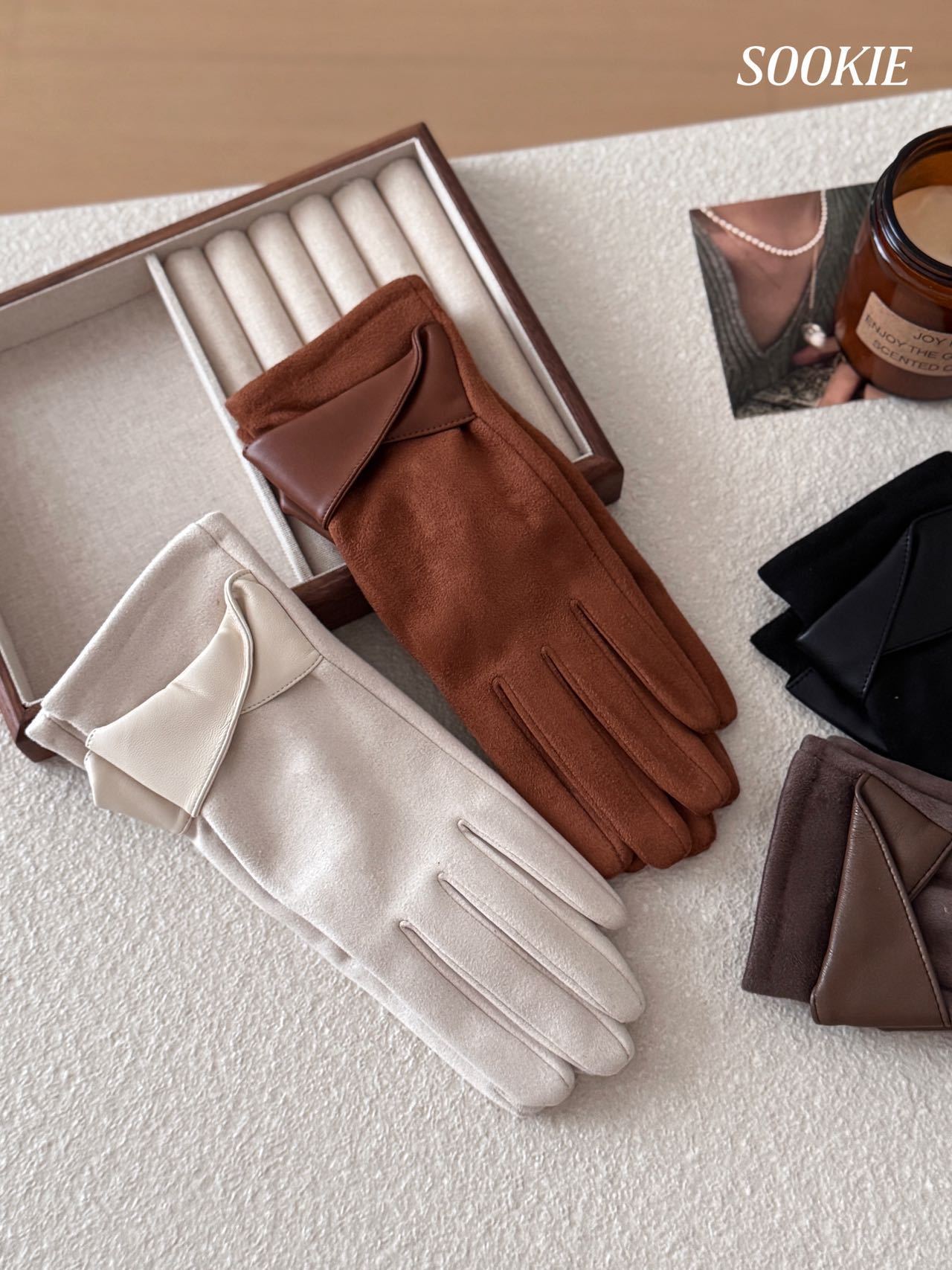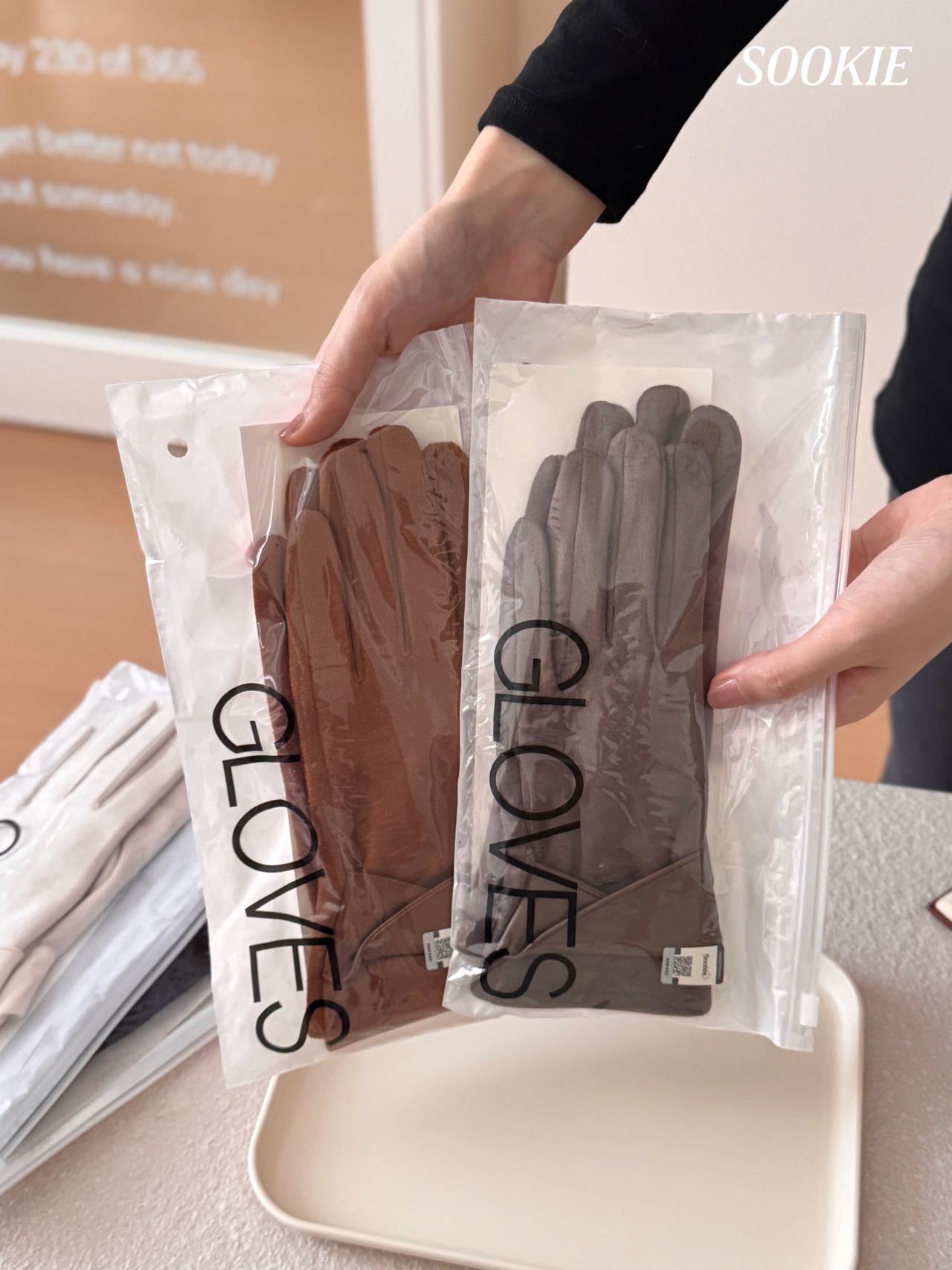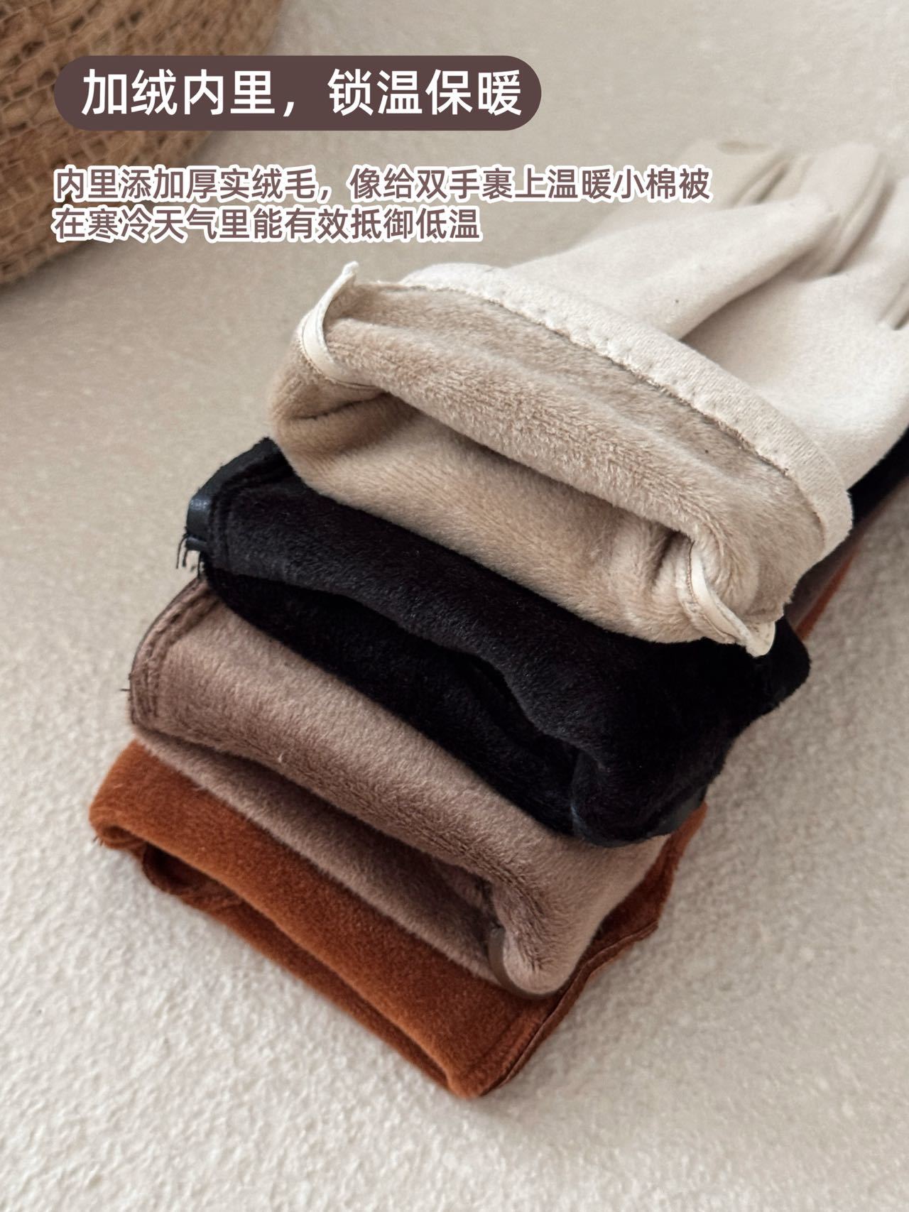 【品名】SOOKIE 麂皮绒保暖手套 亲肤柔软 防风保暖 食指触屏设计 4色可选 【规格】黑色、米白色、焦糖色、咖色 【产地】国内 【发货包装】独立包装 【发货地】浙江 【发货快递】韵达、中通随机发 【不发货区域】新疆、西藏、港澳台 【发货时效】48-72小时,周末节假日顺延 |
