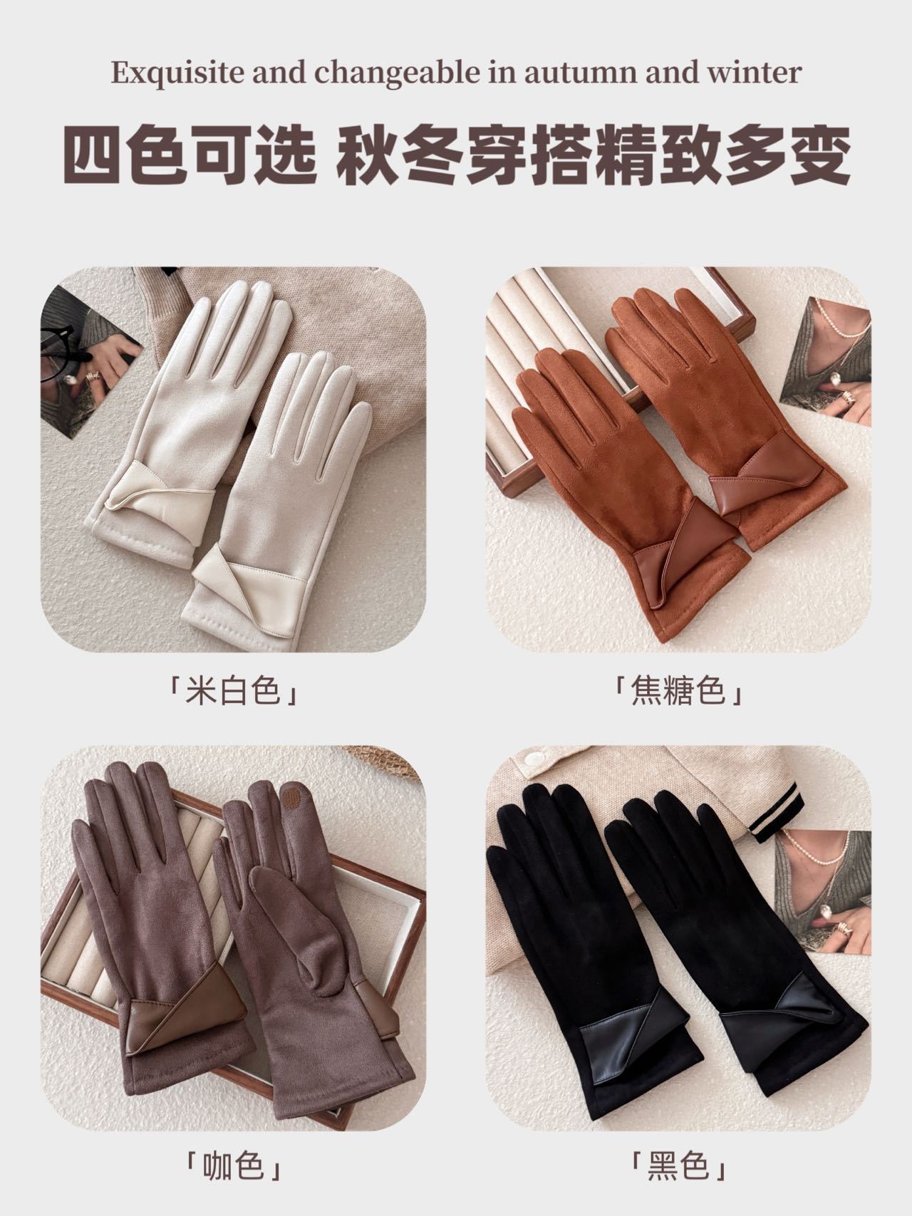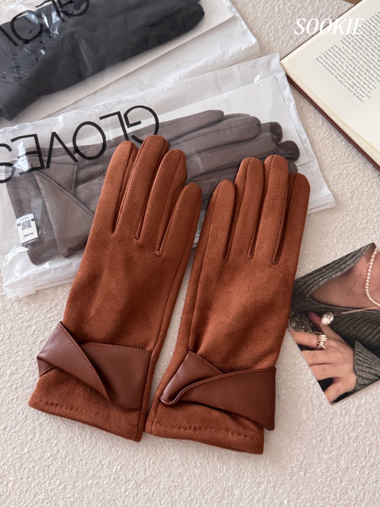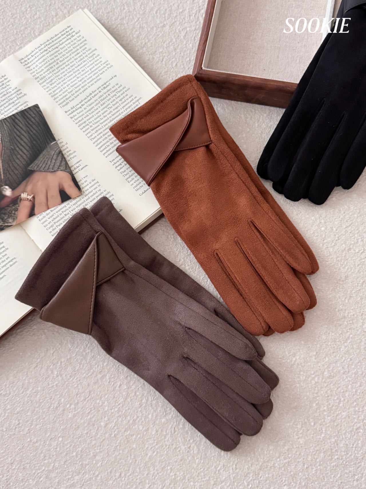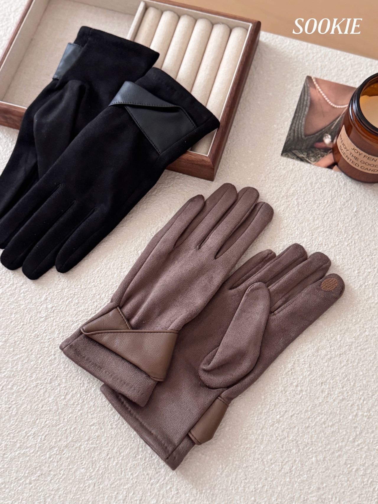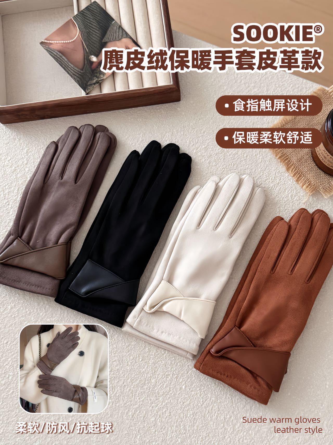 【超值2双装】SOOKIE 麂皮绒保暖手套 亲肤柔软 防风保暖 食指触屏设计 4色可选