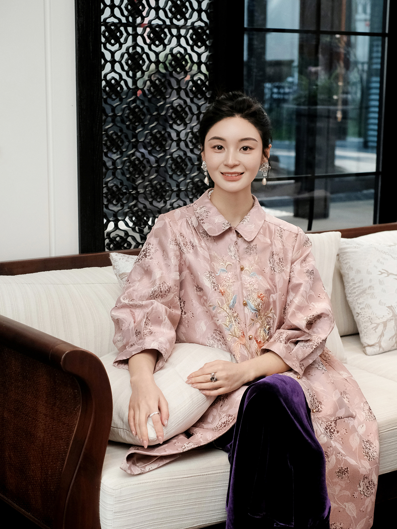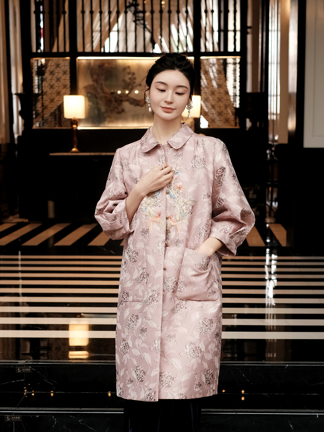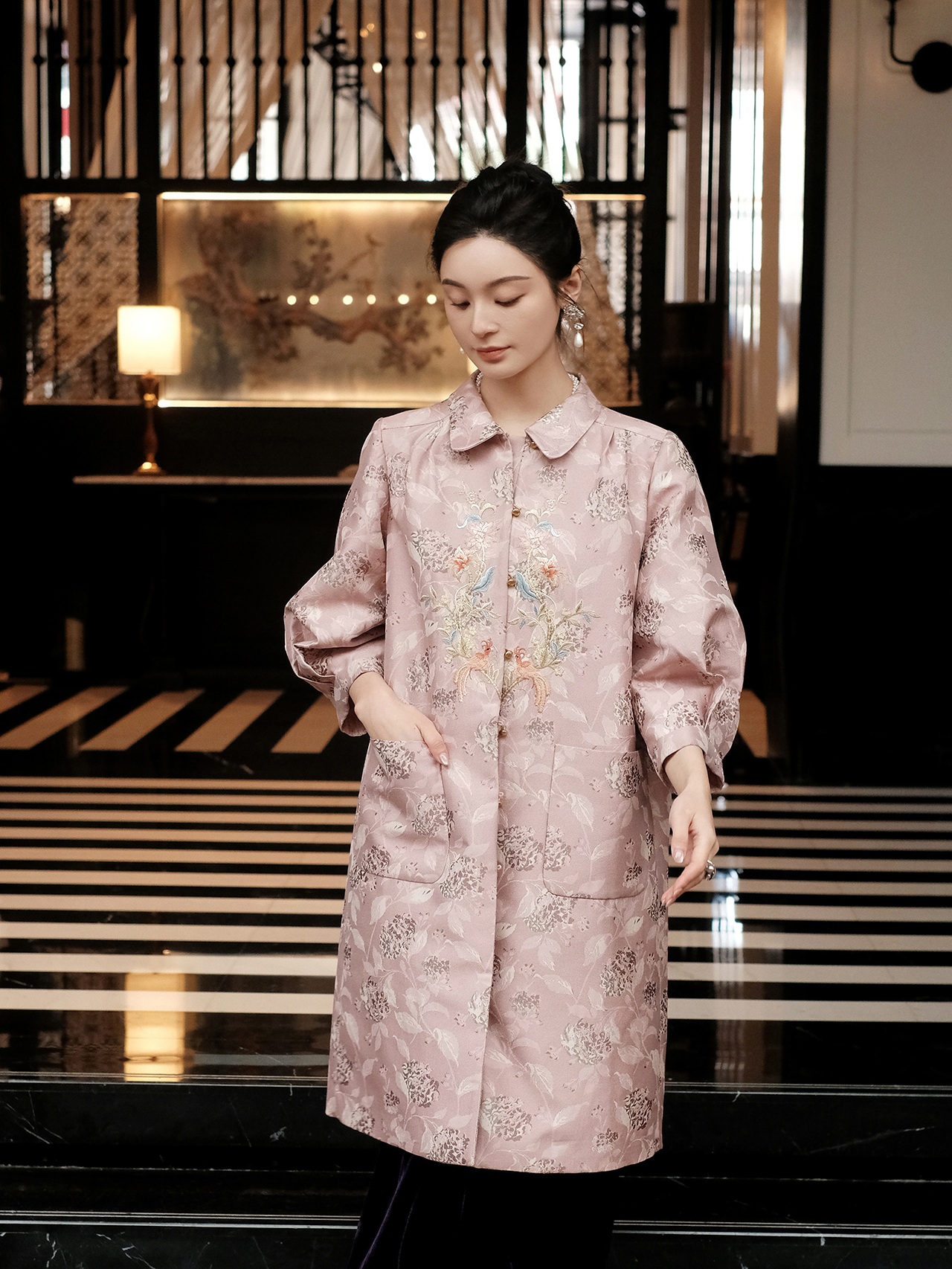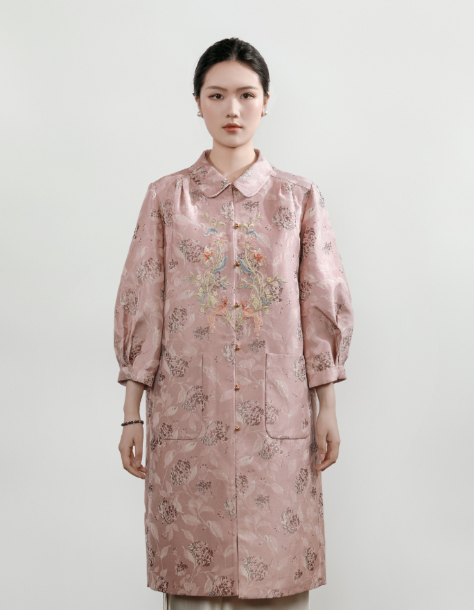 东方境X郭培| 凤栖梧提花刺绣风衣-红梅粉