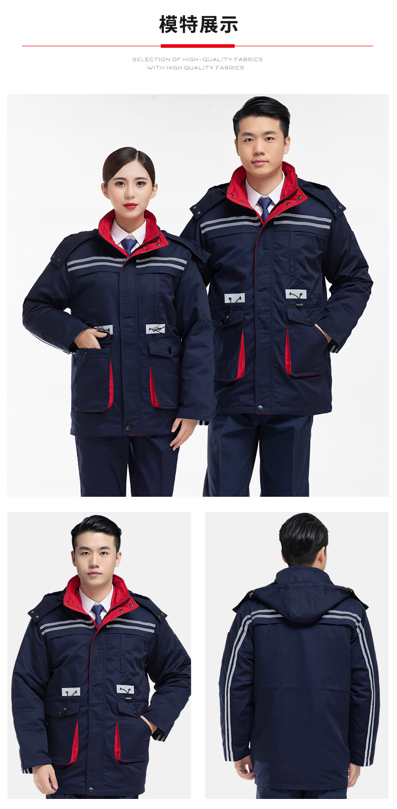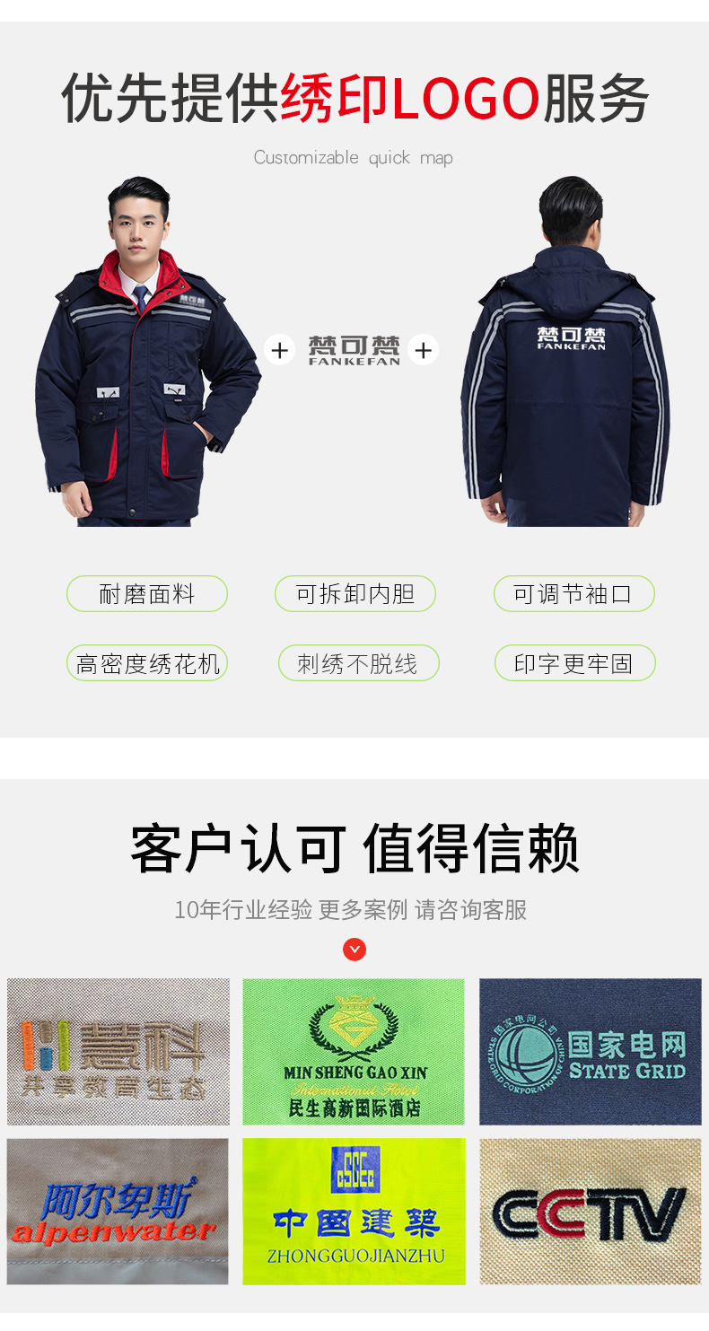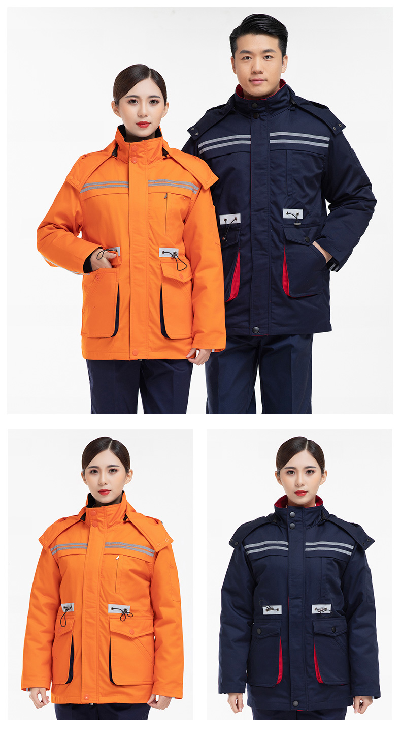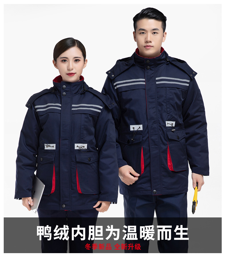 冬季工作服棉衣羽绒加厚劳保棉服可拆卸中长款冷库防寒反光条棉袄