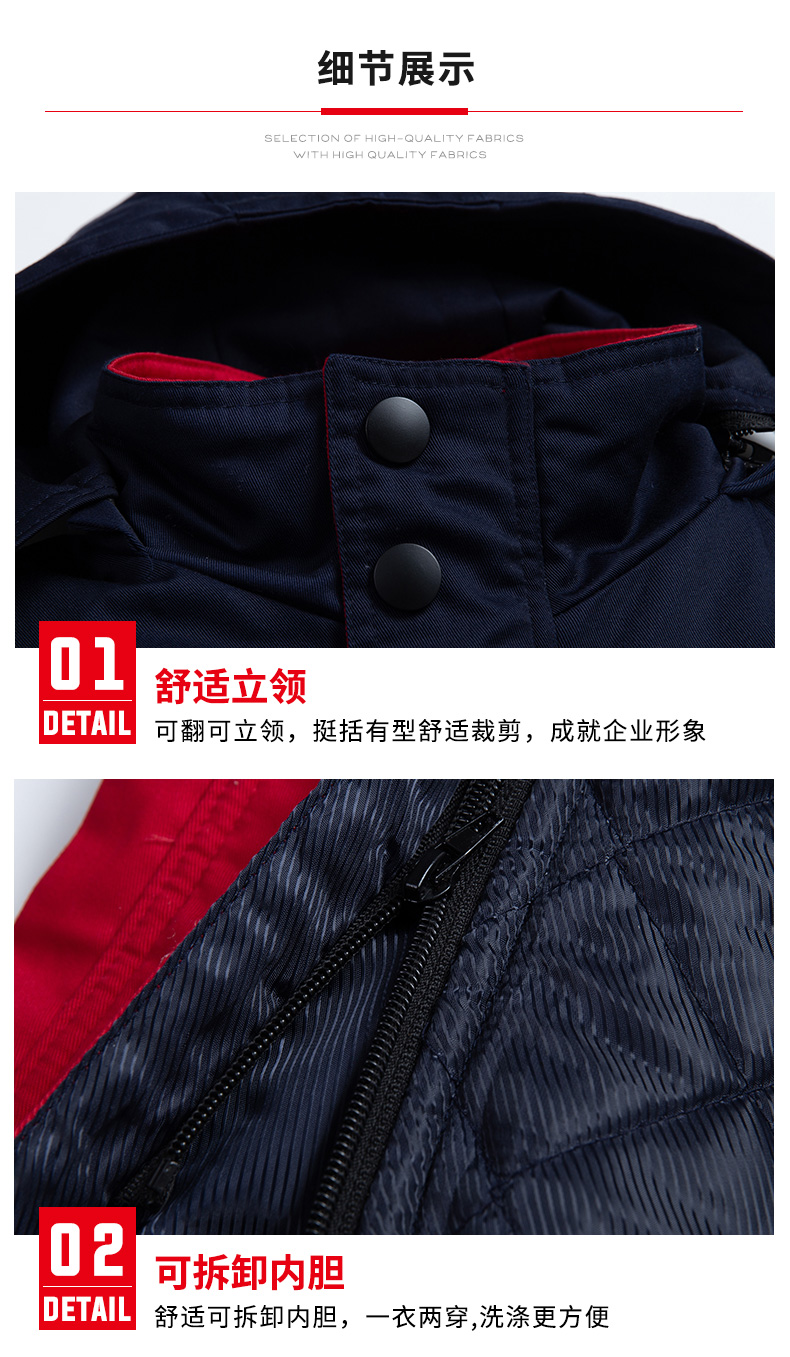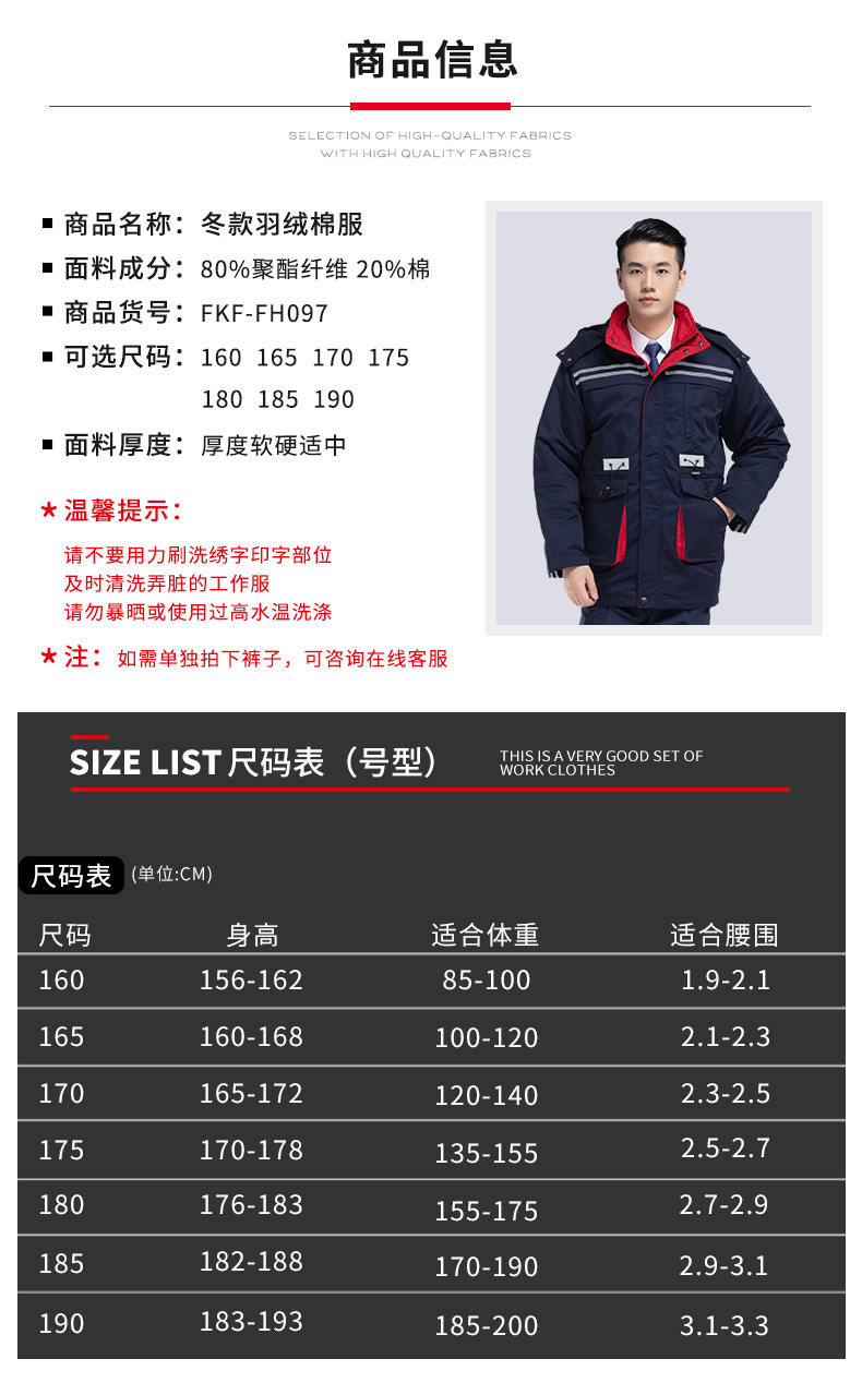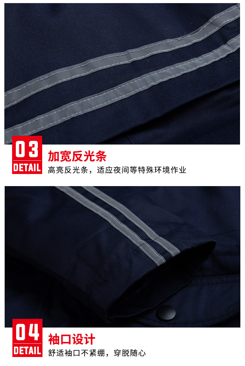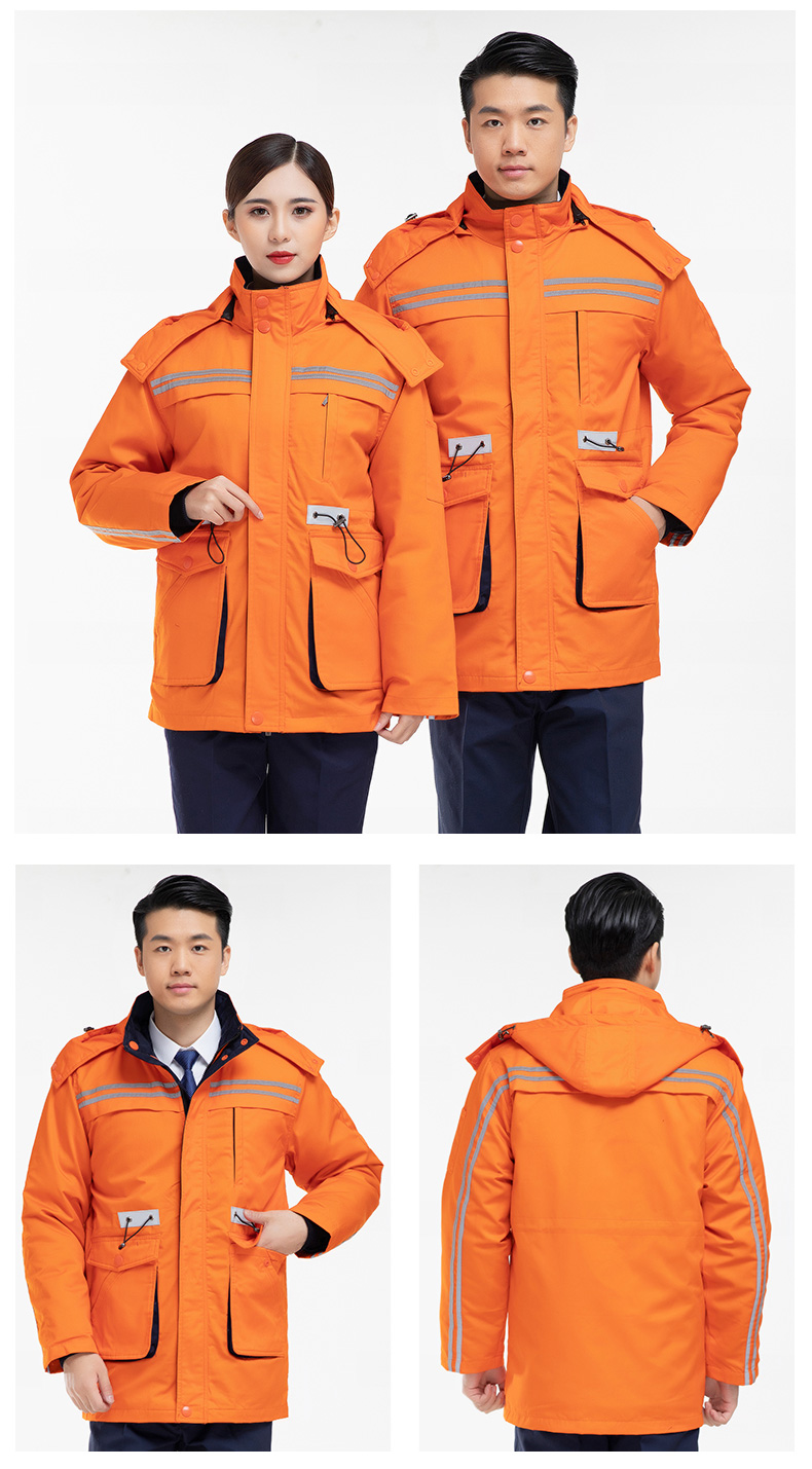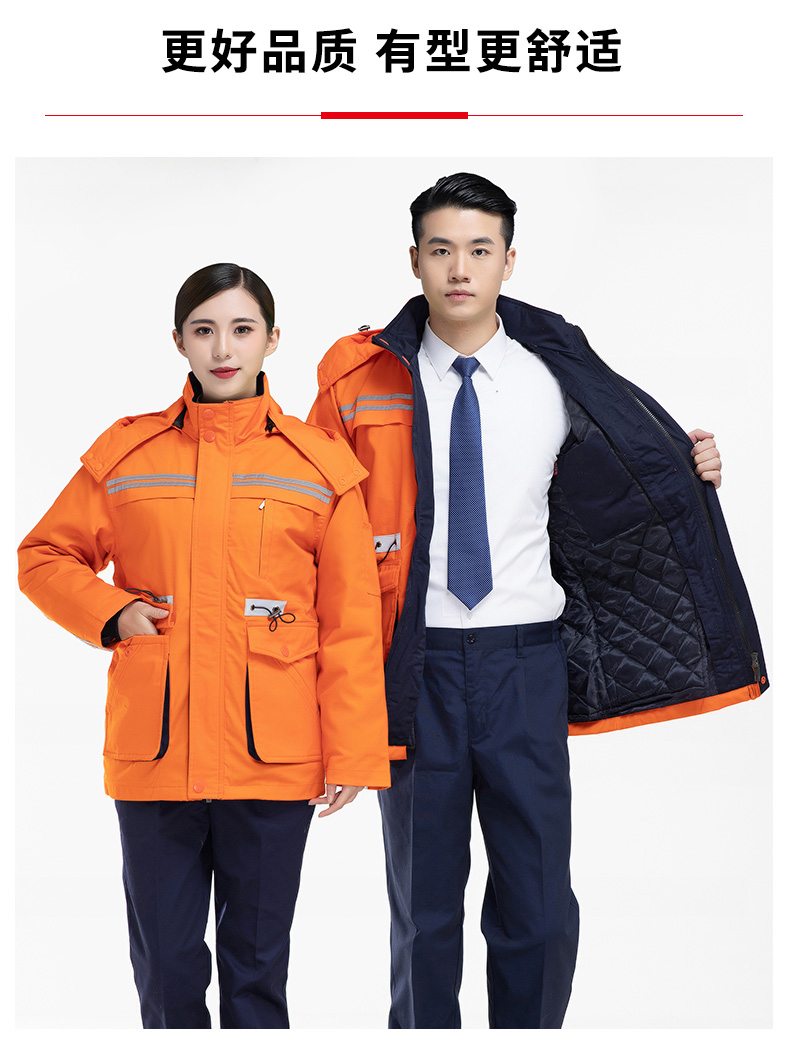 冬季工作服棉衣羽绒加厚劳保棉服可拆卸中长款冷库防寒反光条棉袄
