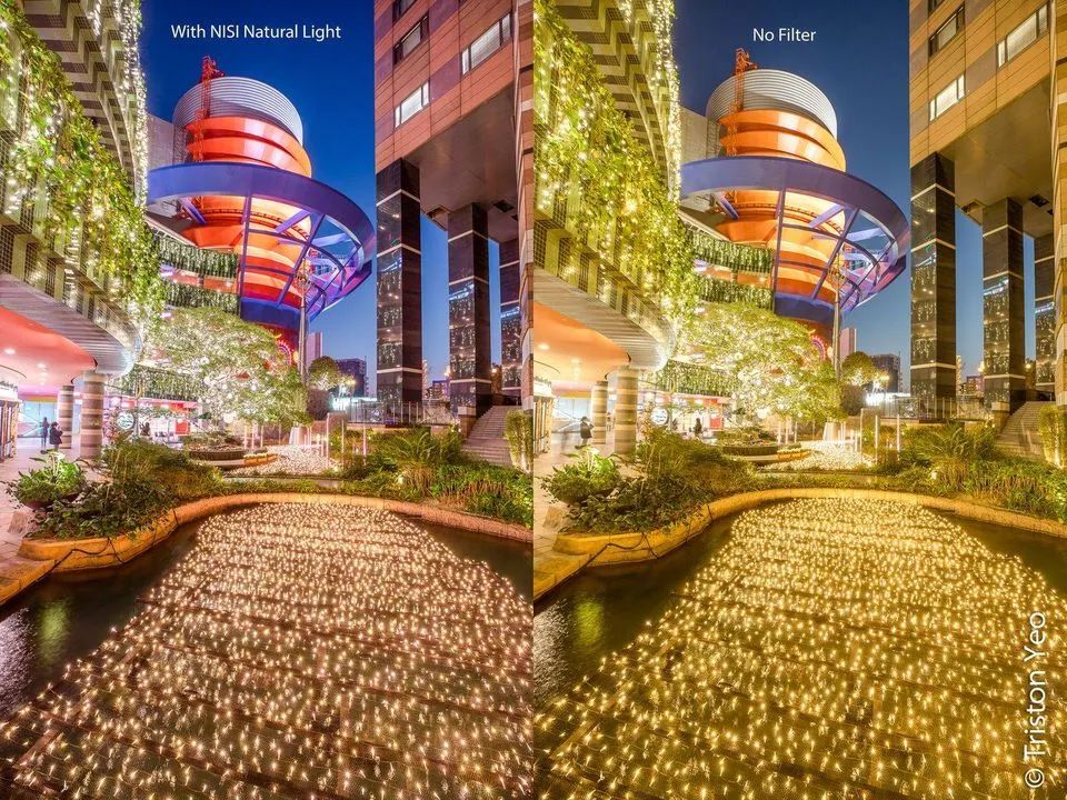 ▲左:NiSi抗光害滤镜 右:无滤镜