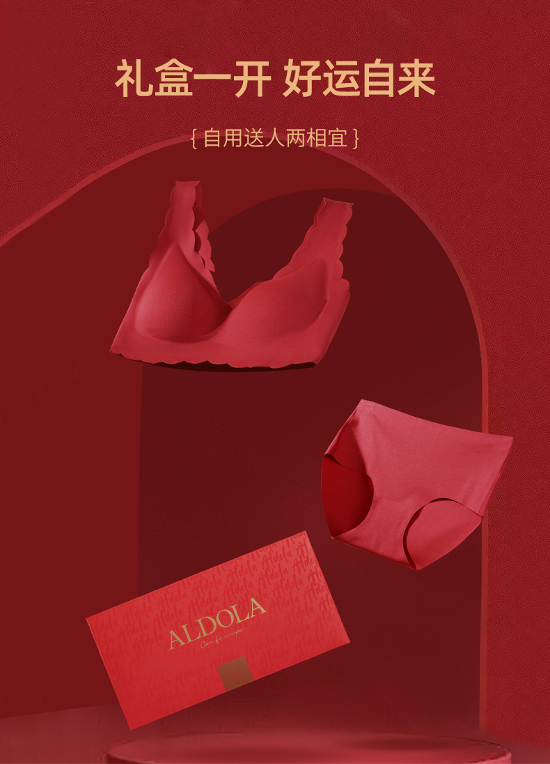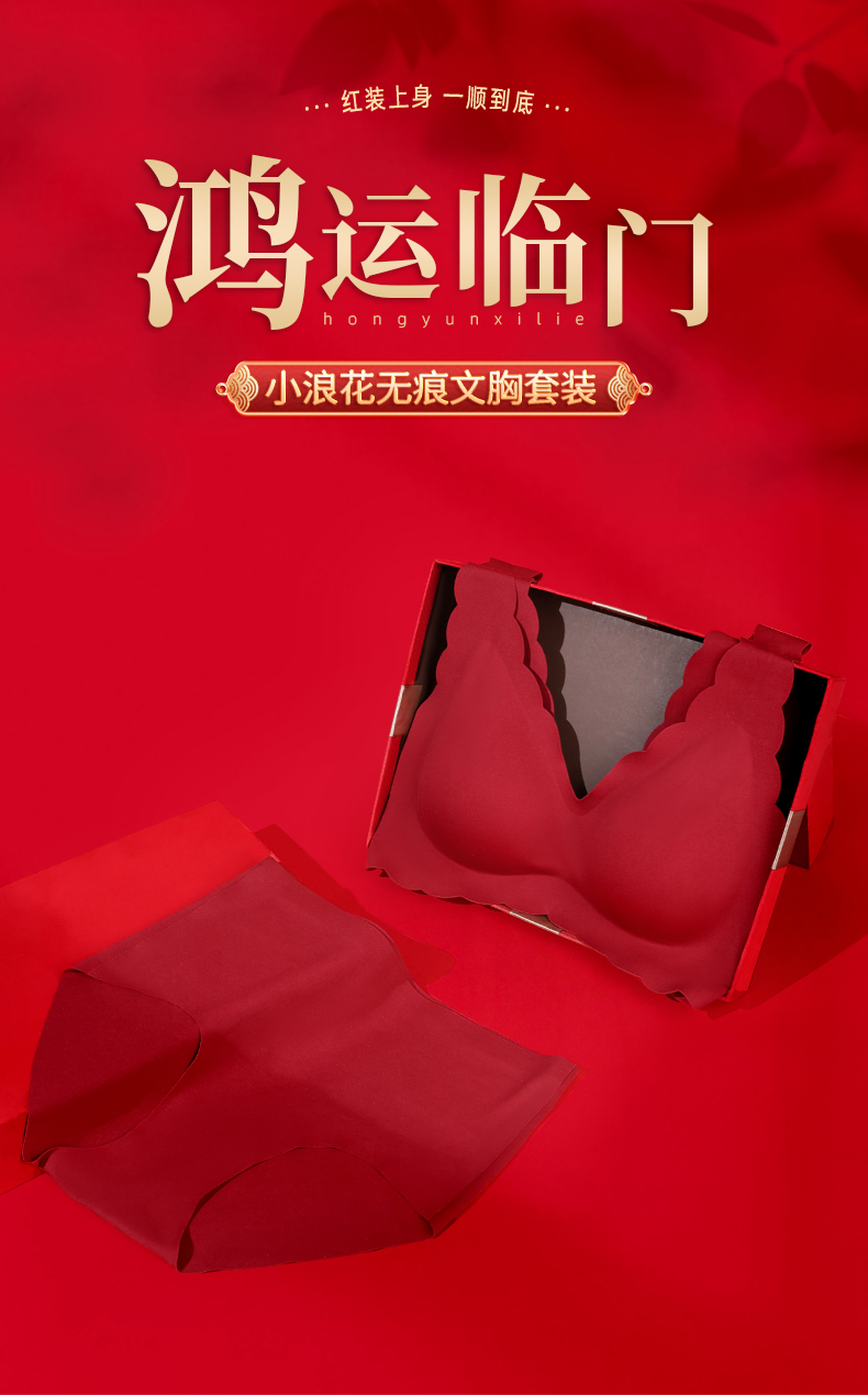 雅黛丽兔年本命年红色内衣套装女结婚新娘无痕文胸女士纯棉档内裤