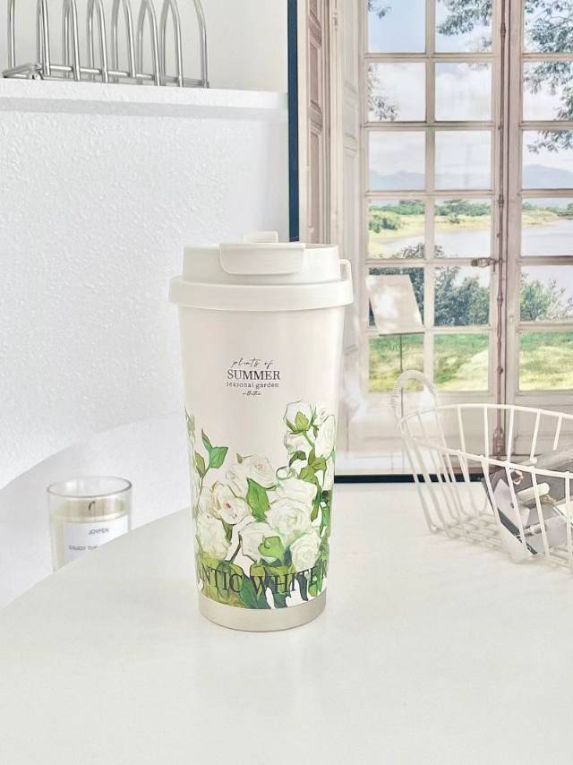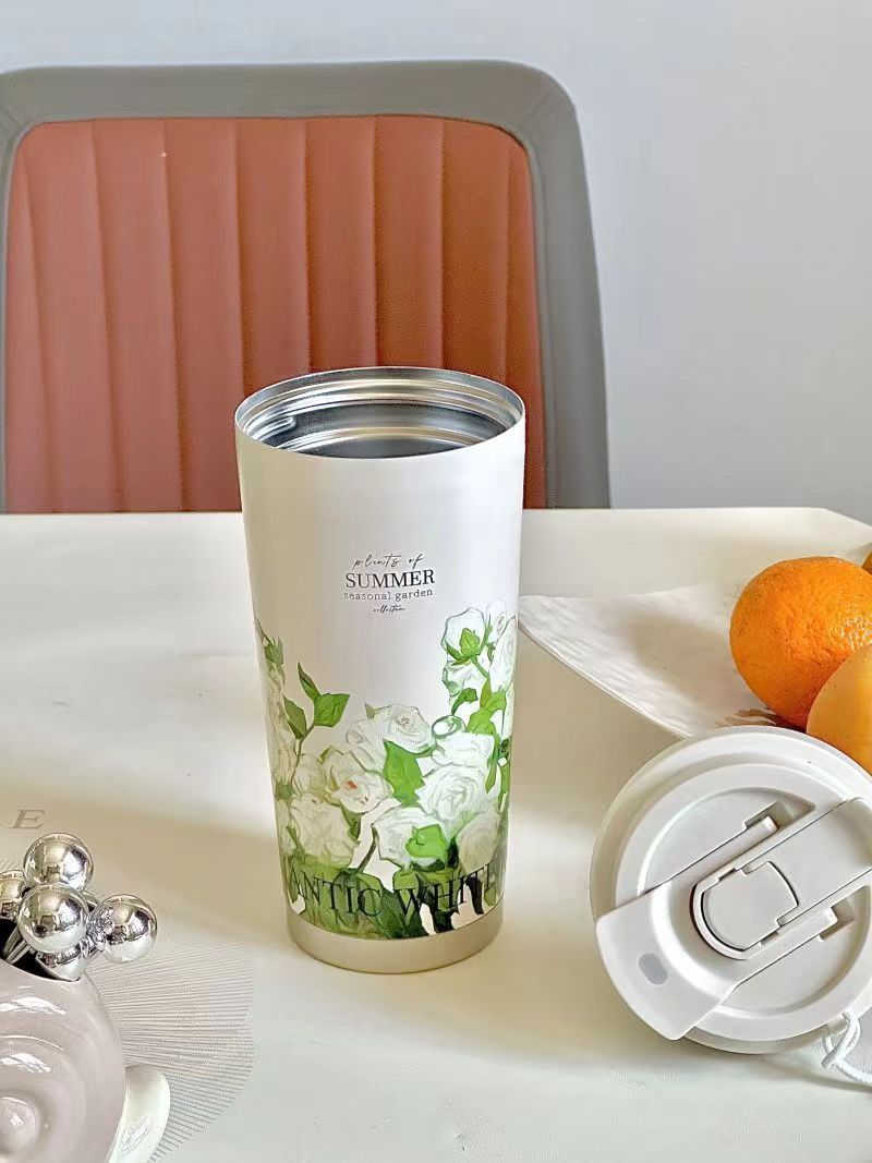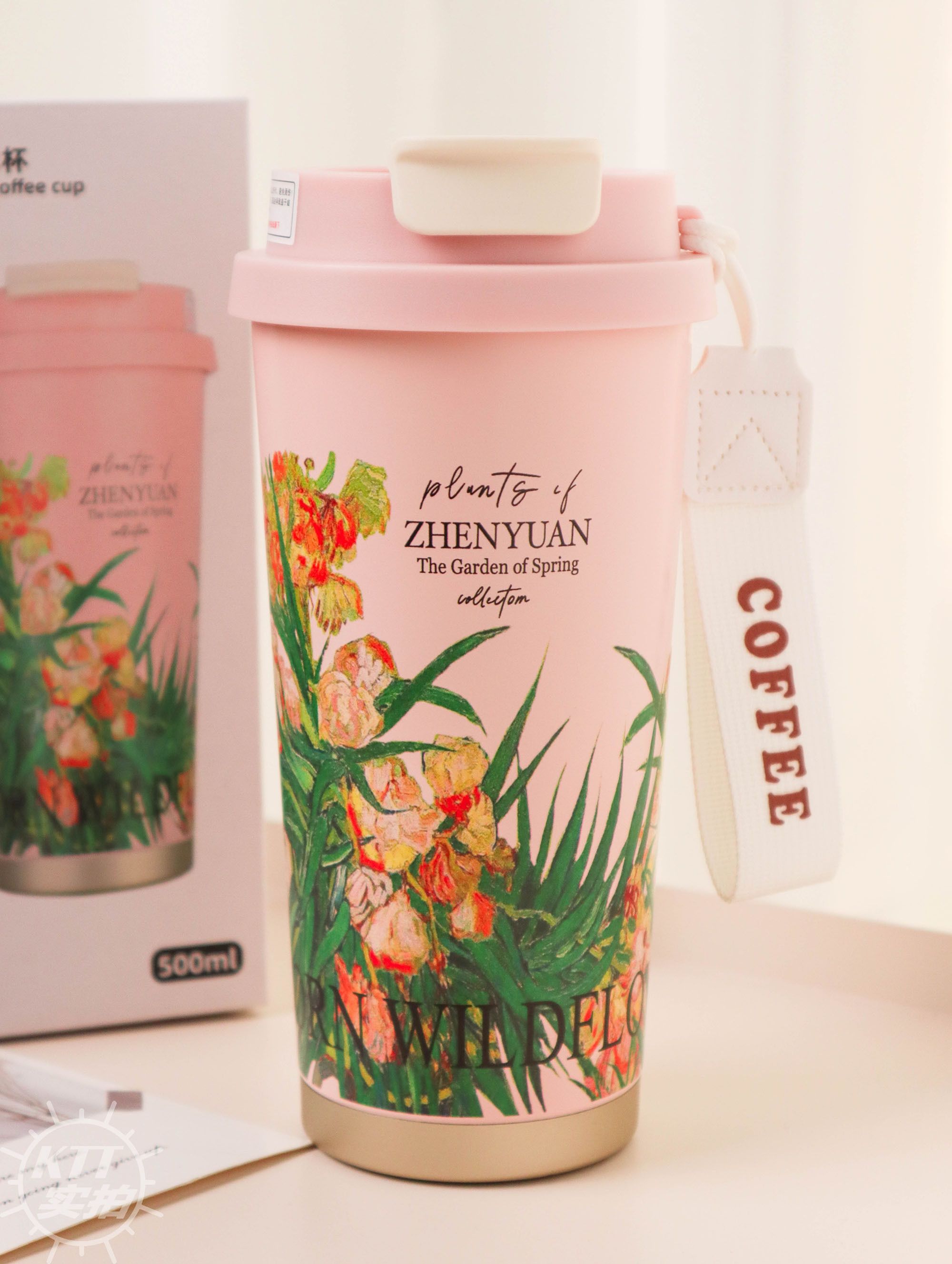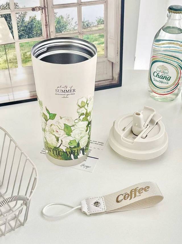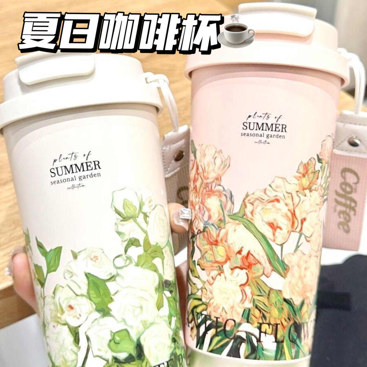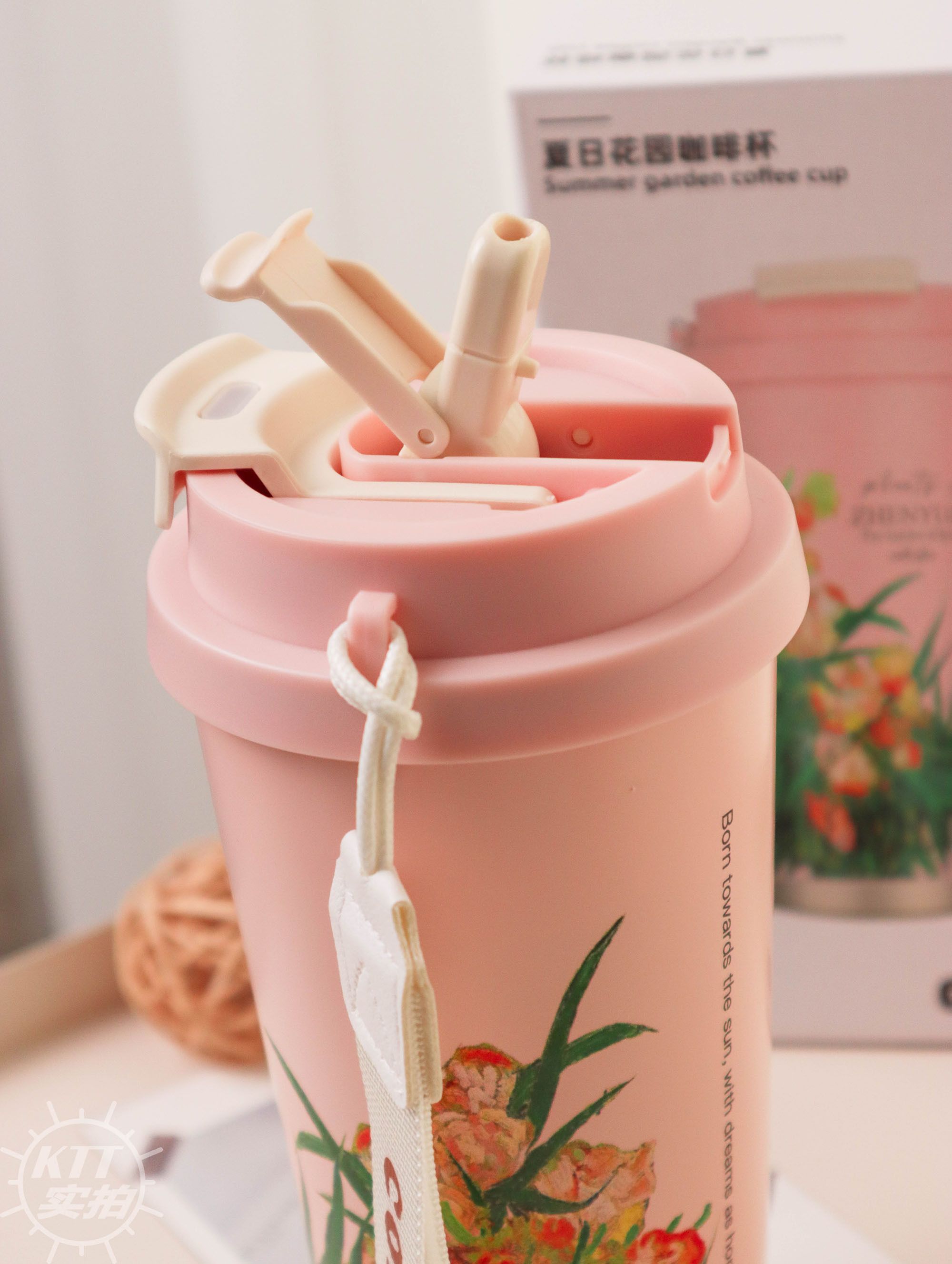 【夏日花园保温咖啡杯】喝的每一口水都安心,强烈摇晃也不漏,500ml容量尽情畅饮,满足饮水需求吸管口+直饮口设计,喝起来太方便了304不锈钢+316内胆底片,保冷又保热