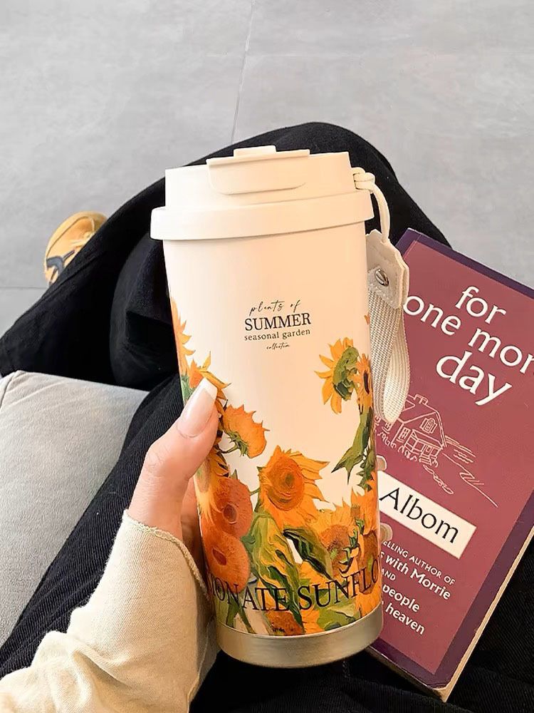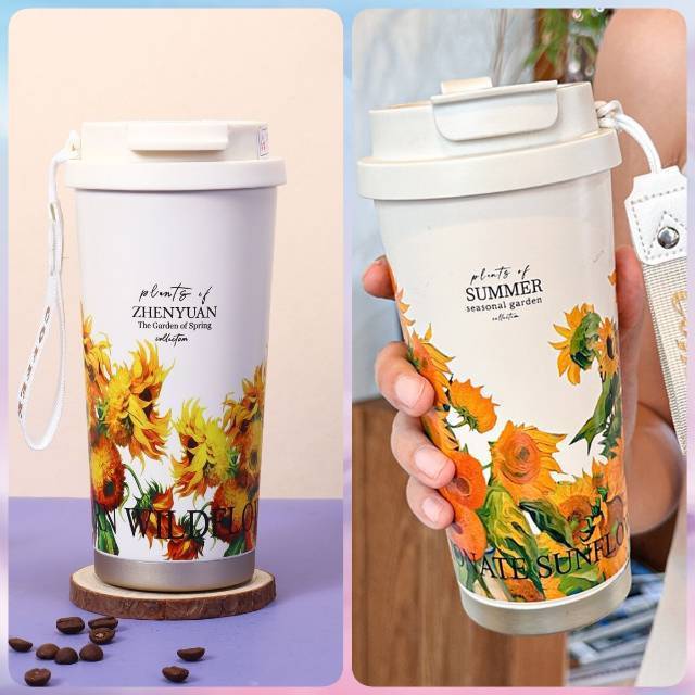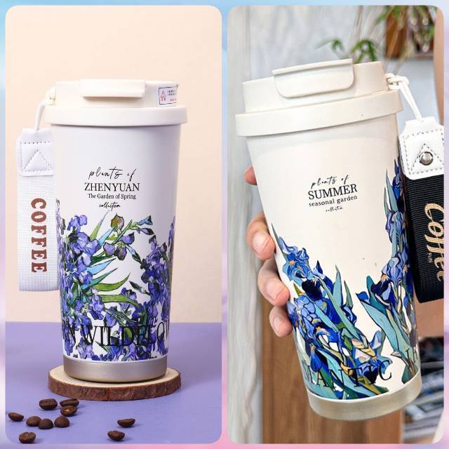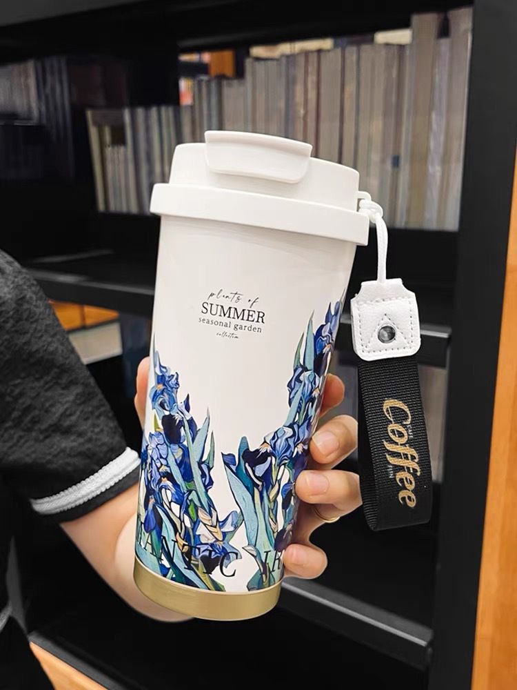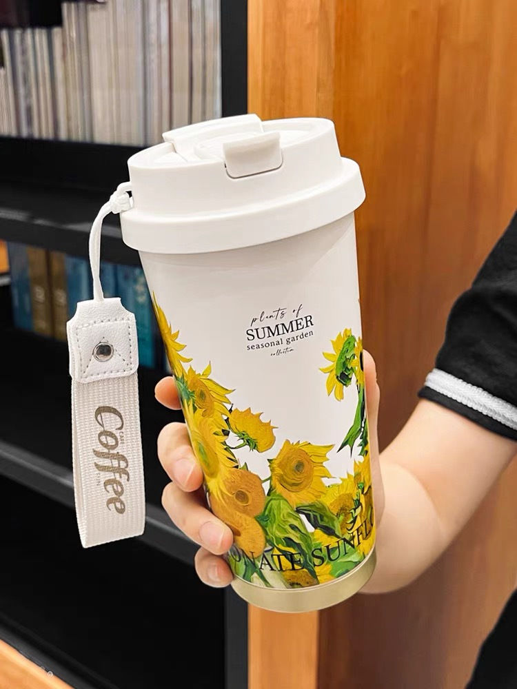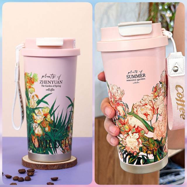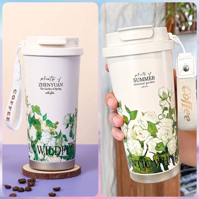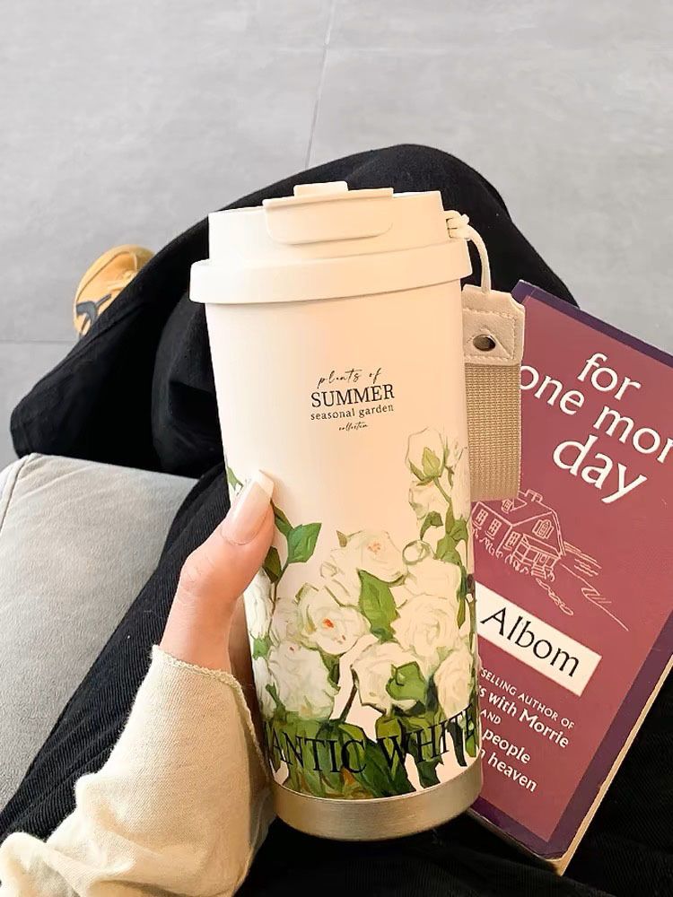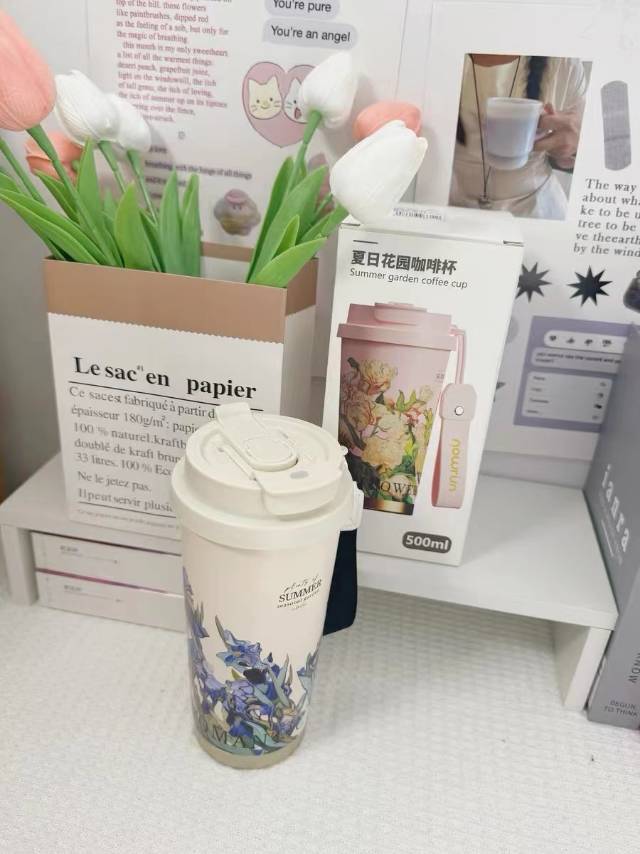 【夏日花园保温咖啡杯】喝的每一口水都安心,强烈摇晃也不漏,500ml容量尽情畅饮,满足饮水需求吸管口+直饮口设计,喝起来太方便了304不锈钢+316内胆底片,保冷又保热