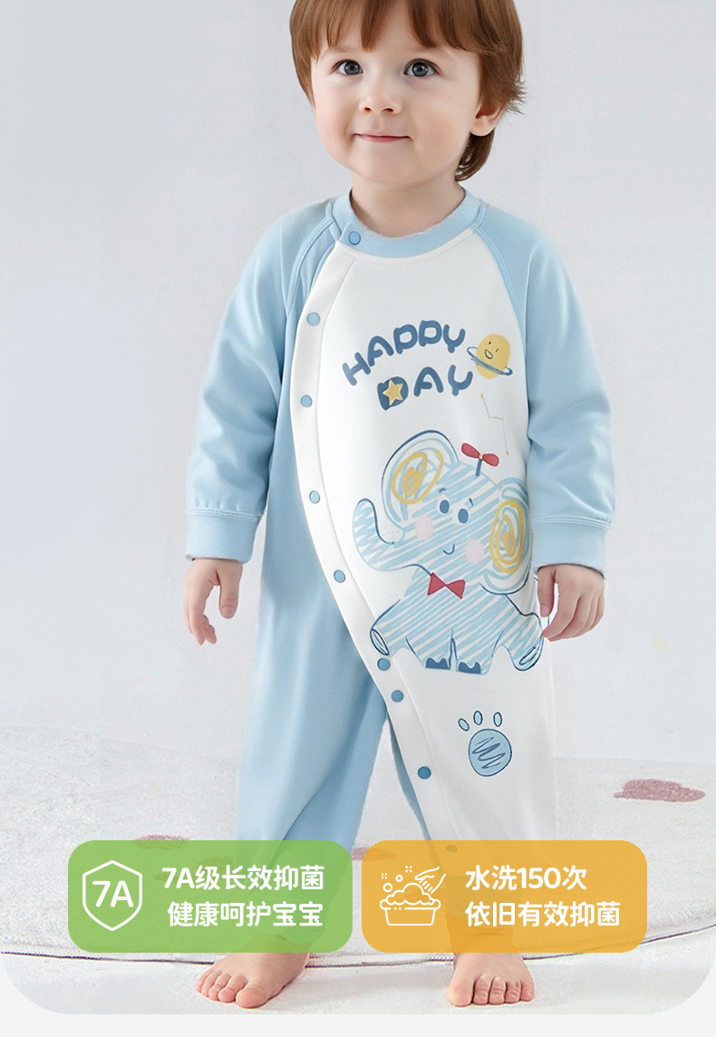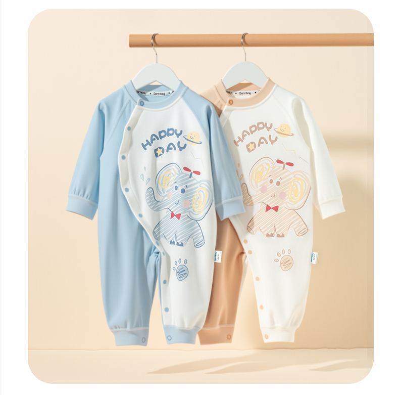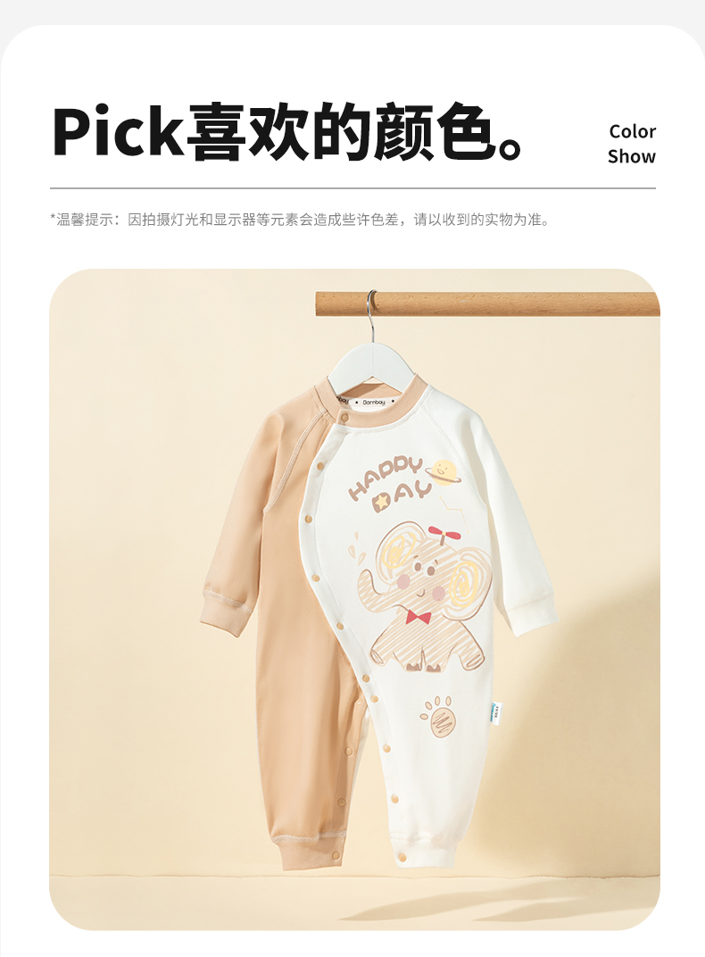 ZB3EL007贝贝怡童装新生儿婴儿衣服侧开连体衣长袖婴幼儿纯棉透气哈衣宝宝爬服