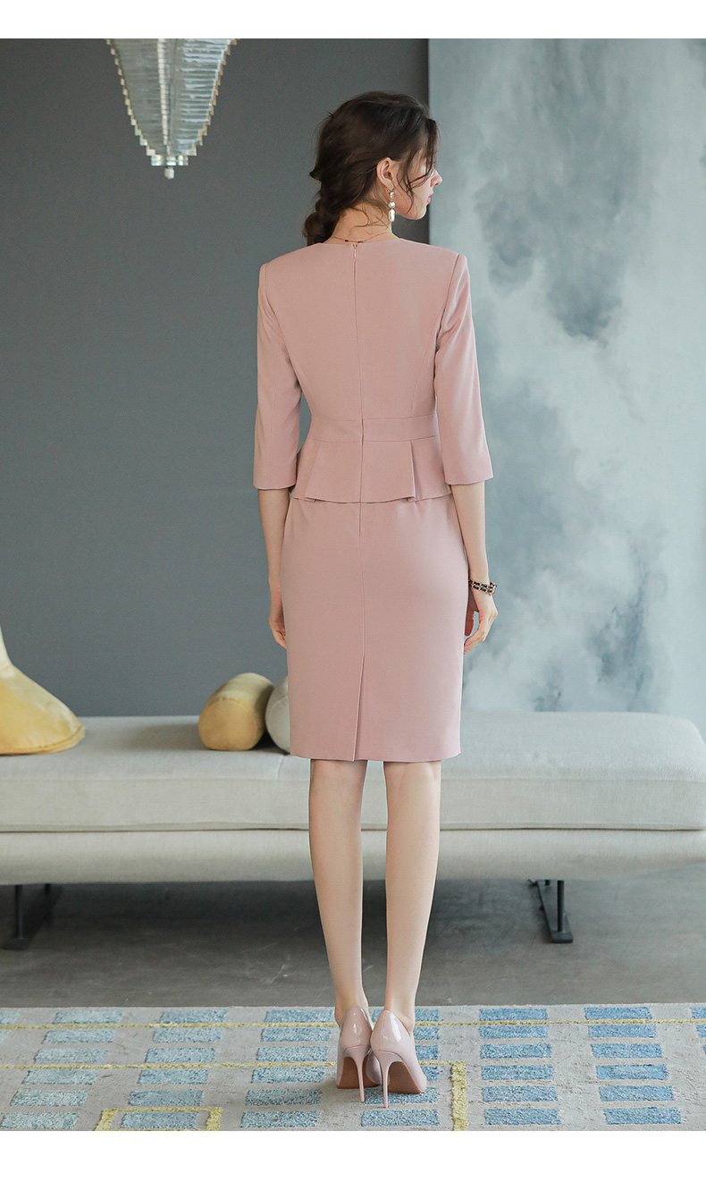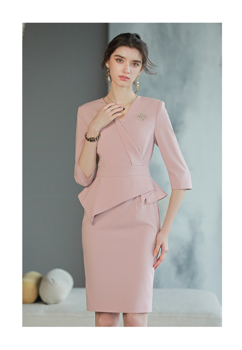 AD高级感粉色职业连衣裙女假两件工作服职业装高端前台接待工装裙