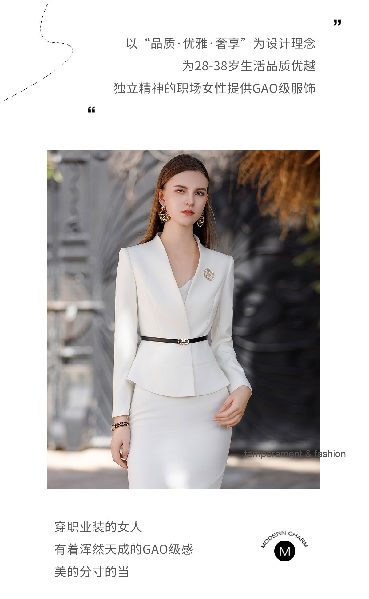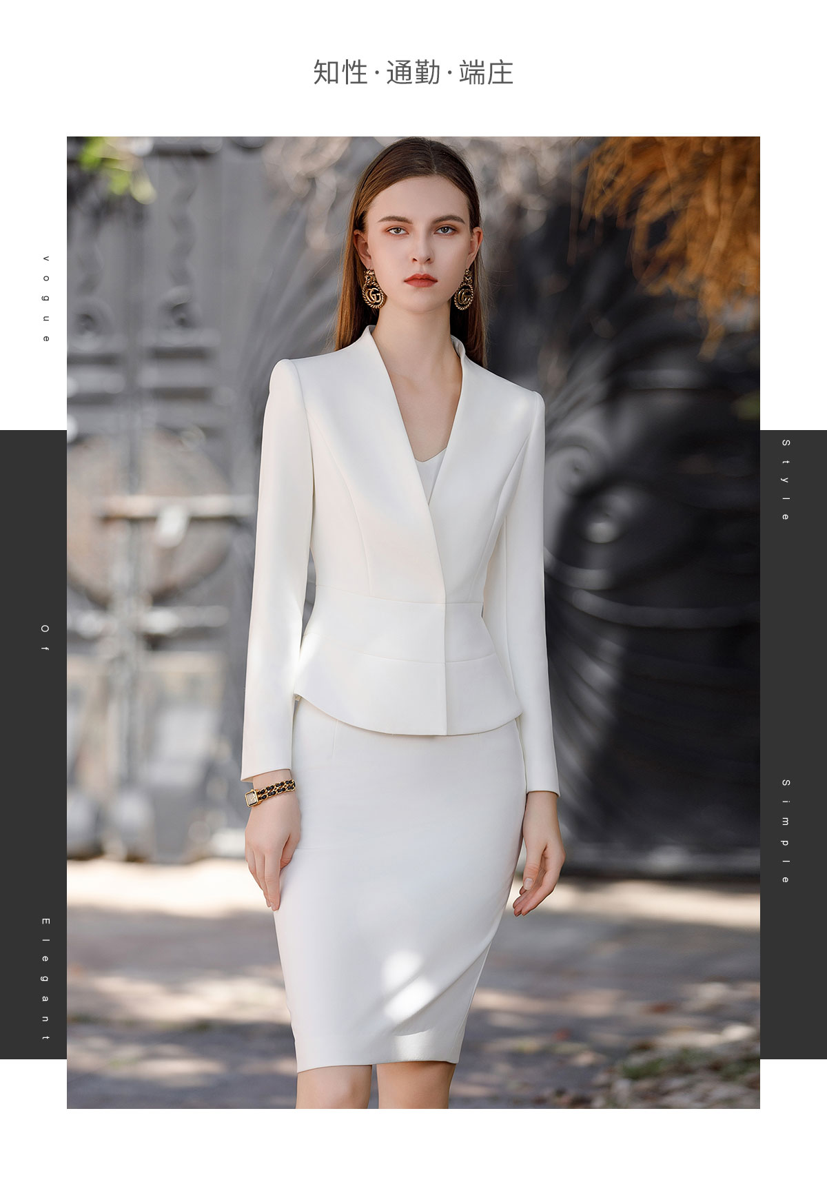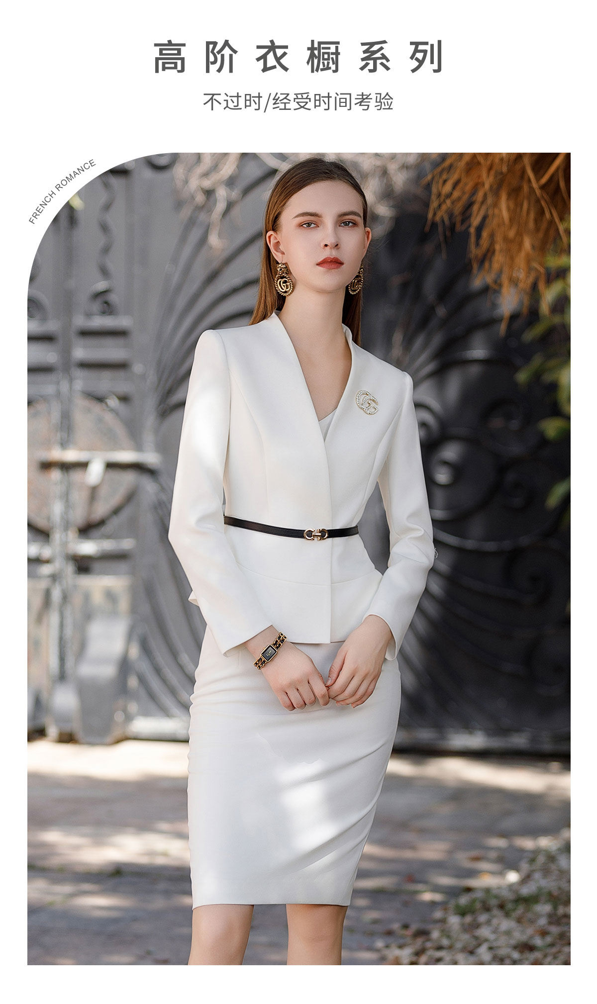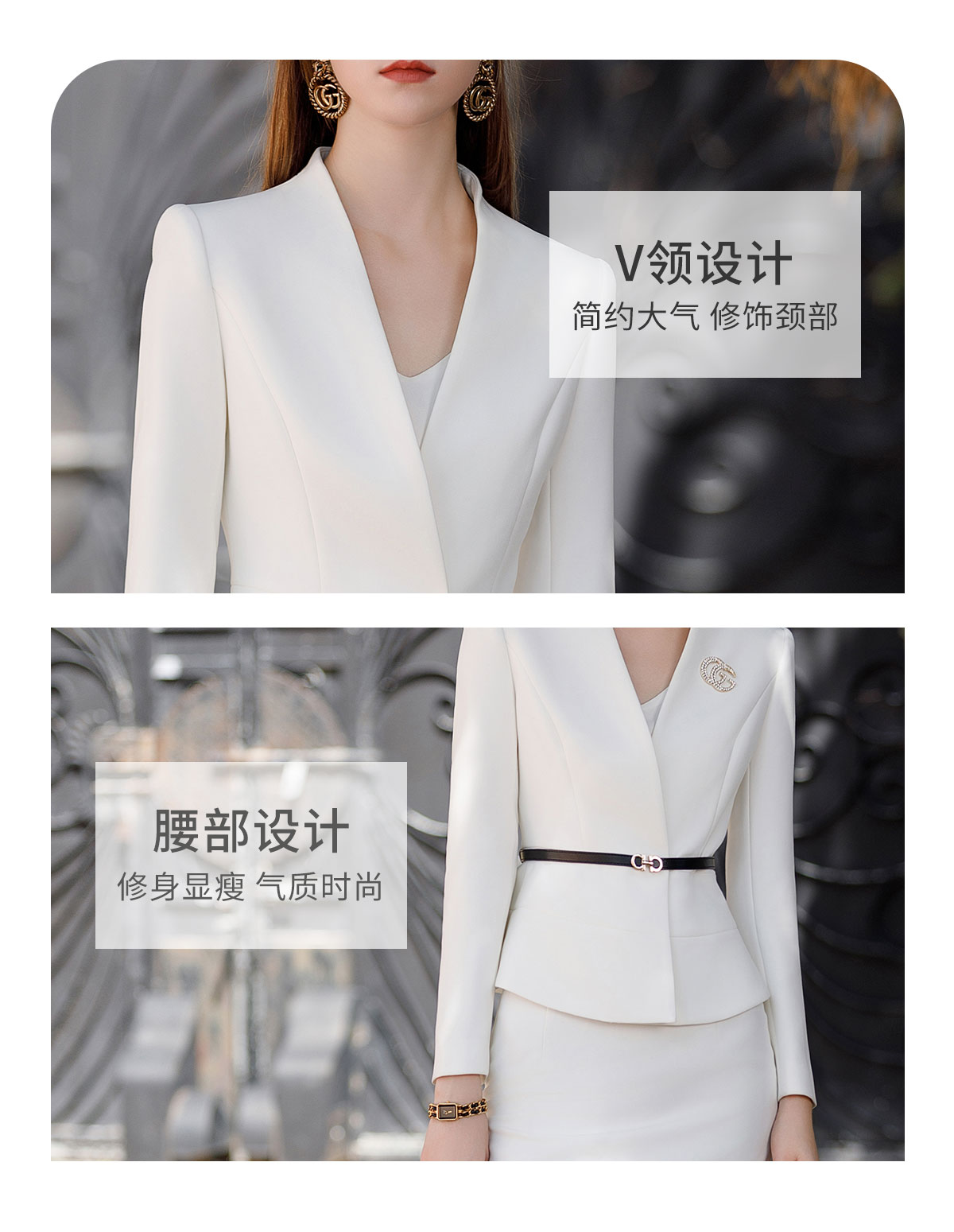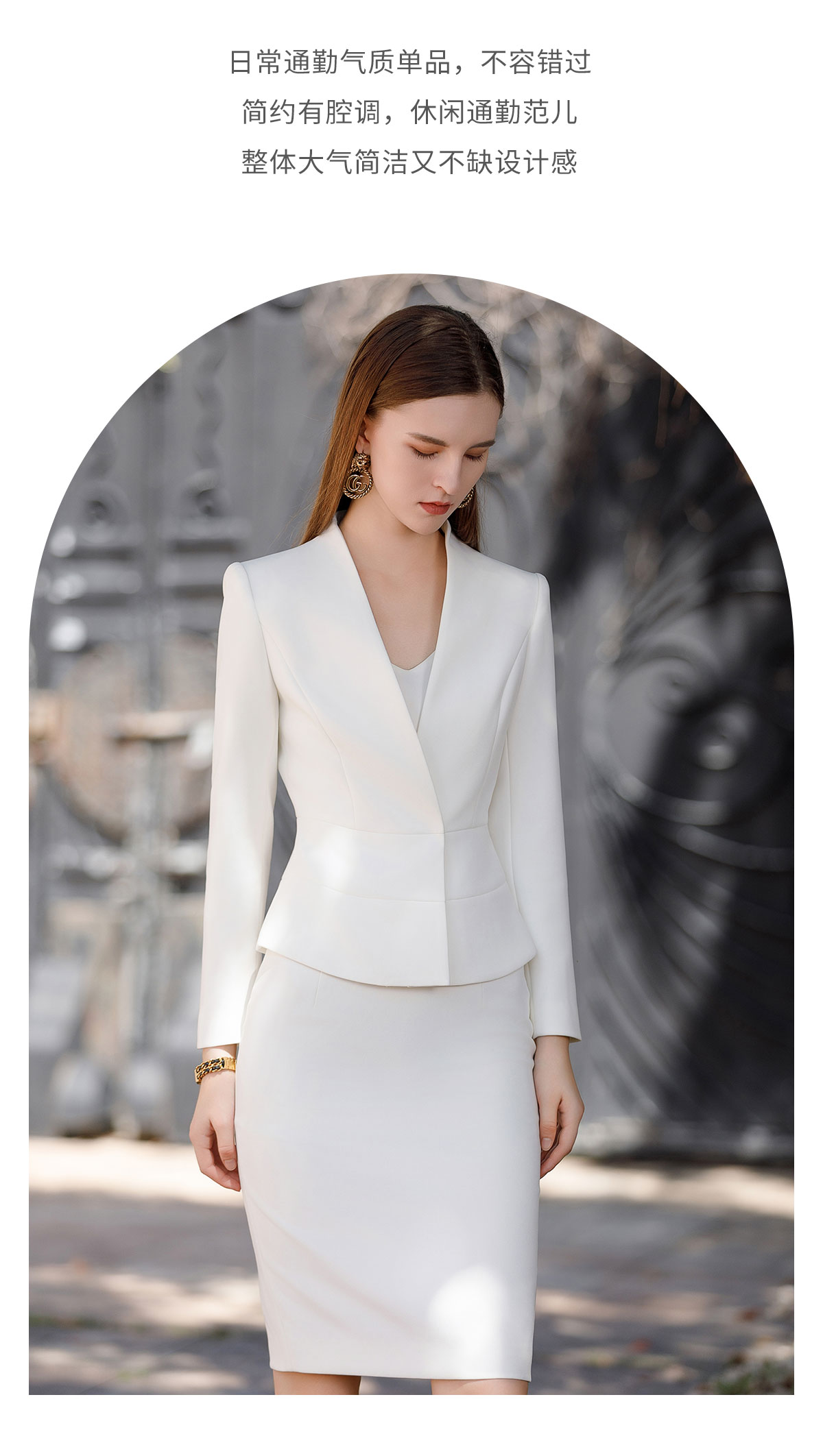 AD高端行政工作服女秘书职业装2023新款白色西装套装裙无领正装秋