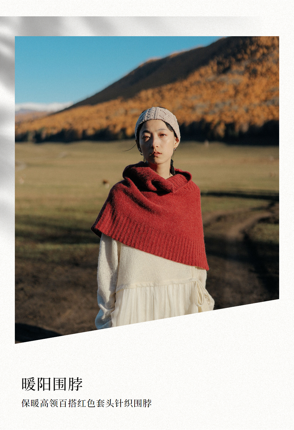 绽放898朵/红色螺纹花边保暖高领百搭套头针织围脖围巾