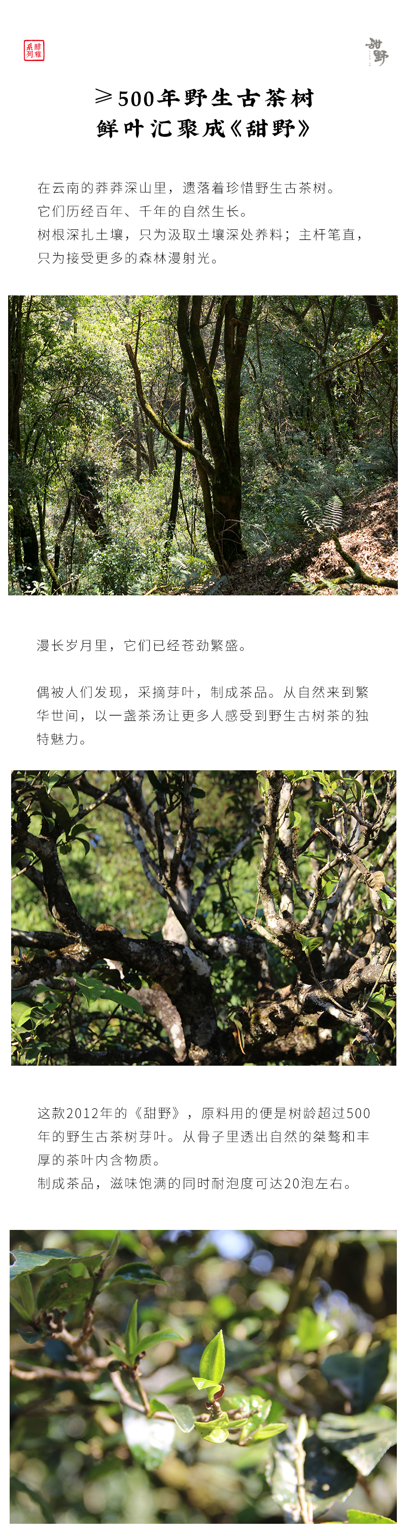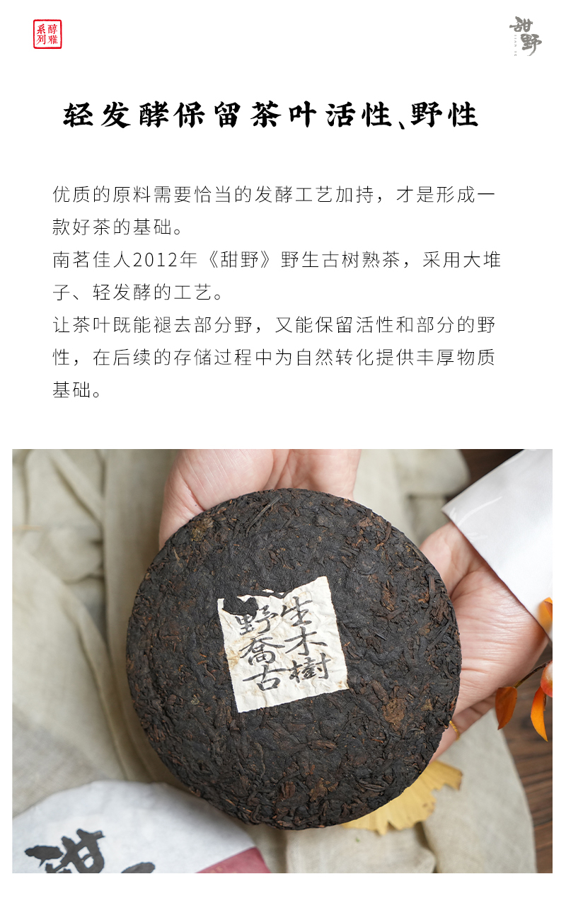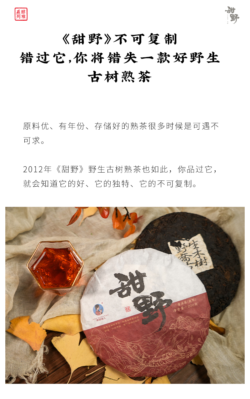 【买5送1】2012《甜野》野生古树熟茶 200克/饼