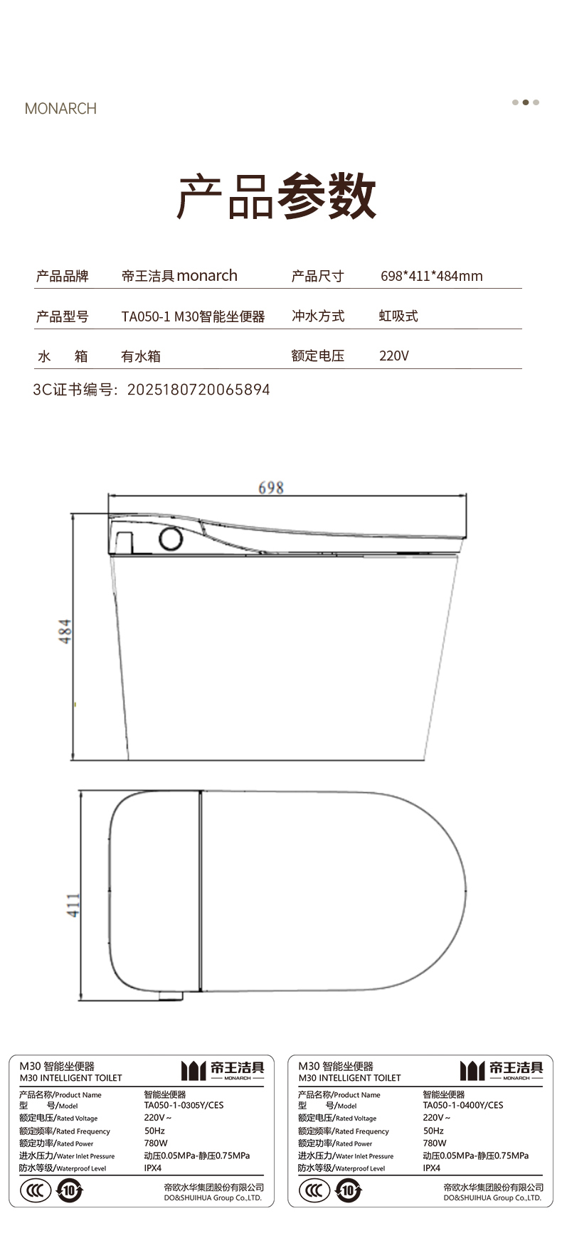 帝王全智能马桶TA050