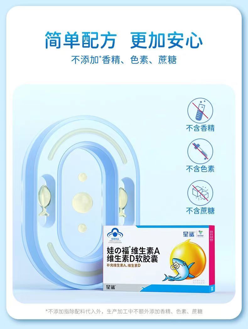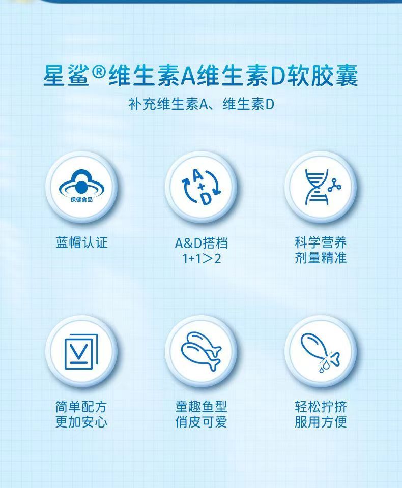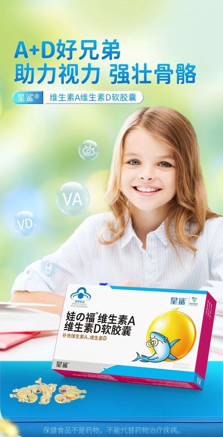 星鲨维生素A维生素D软胶囊助力视力强壮骨骼促进钙吸收保护眼睛36粒/盒