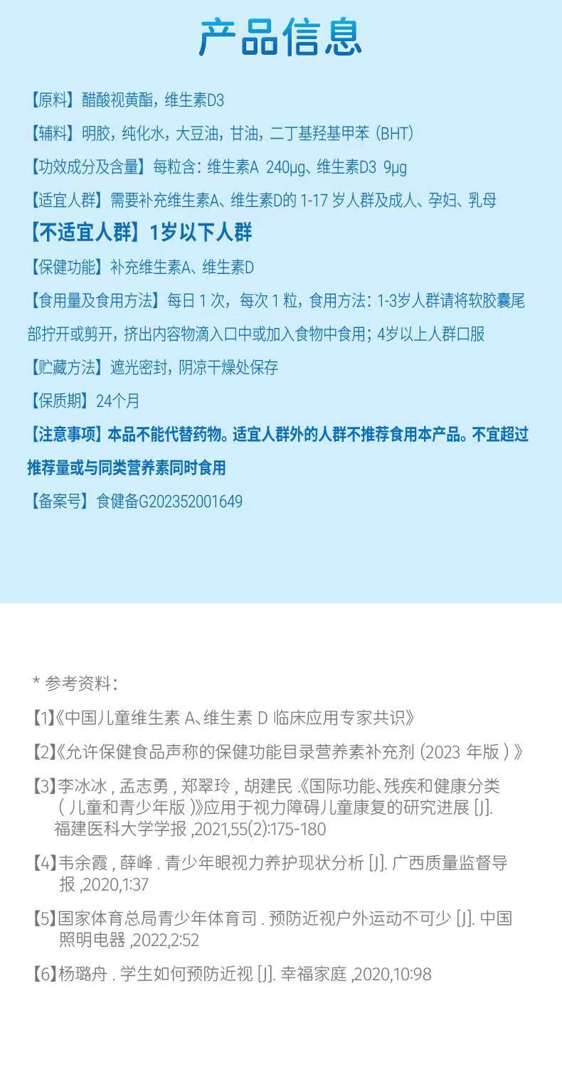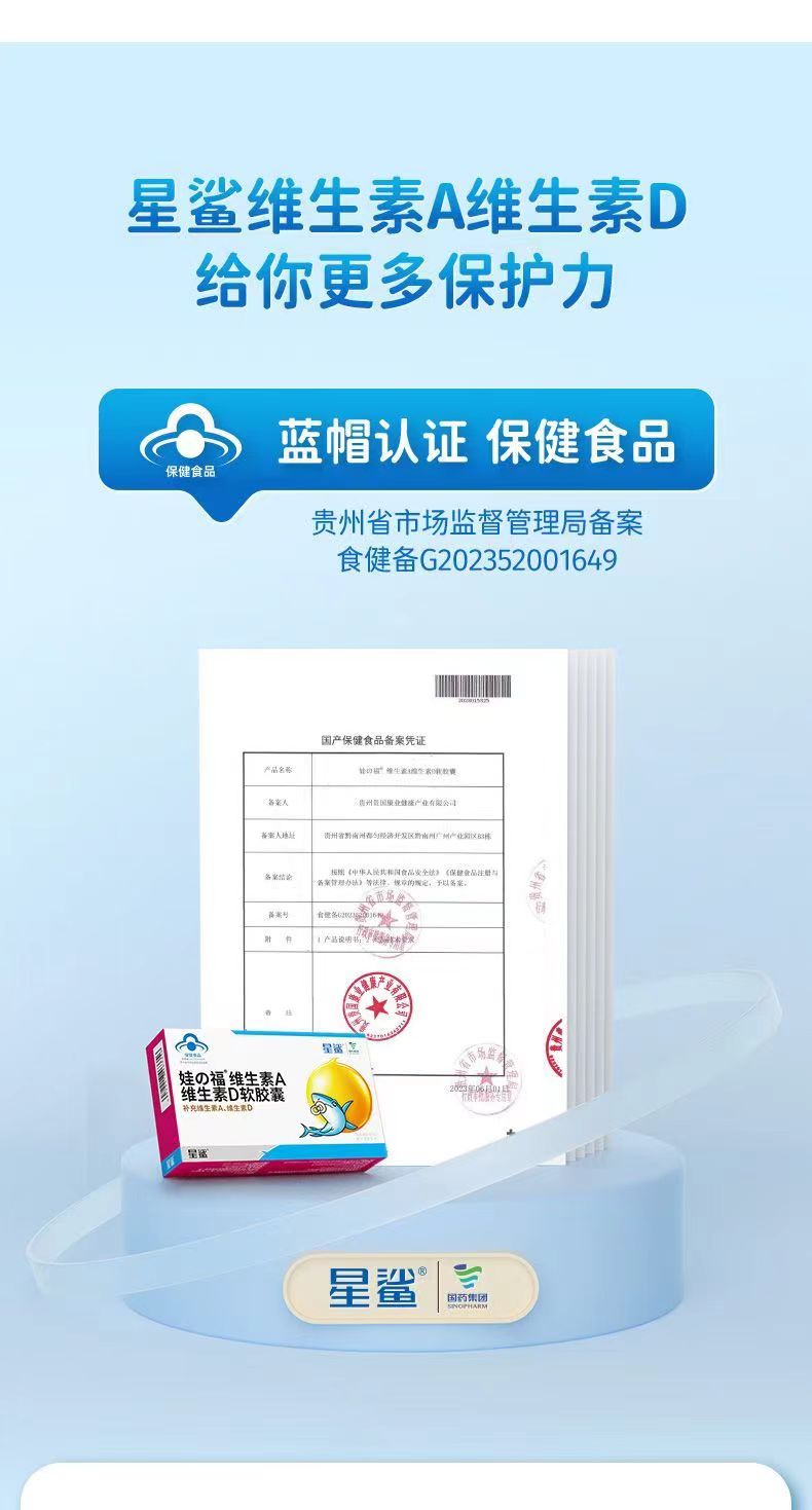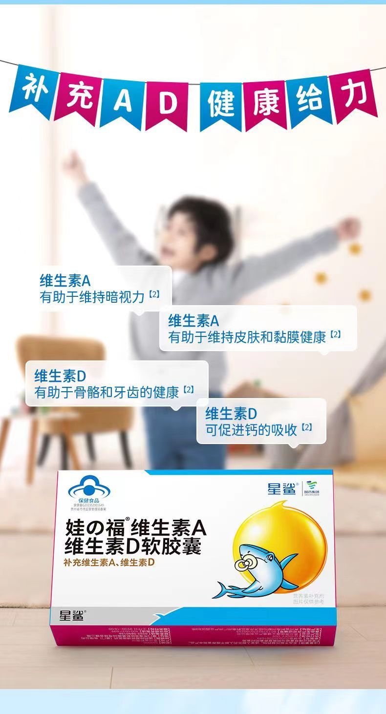 星鲨维生素A维生素D软胶囊助力视力强壮骨骼促进钙吸收保护眼睛36粒/盒